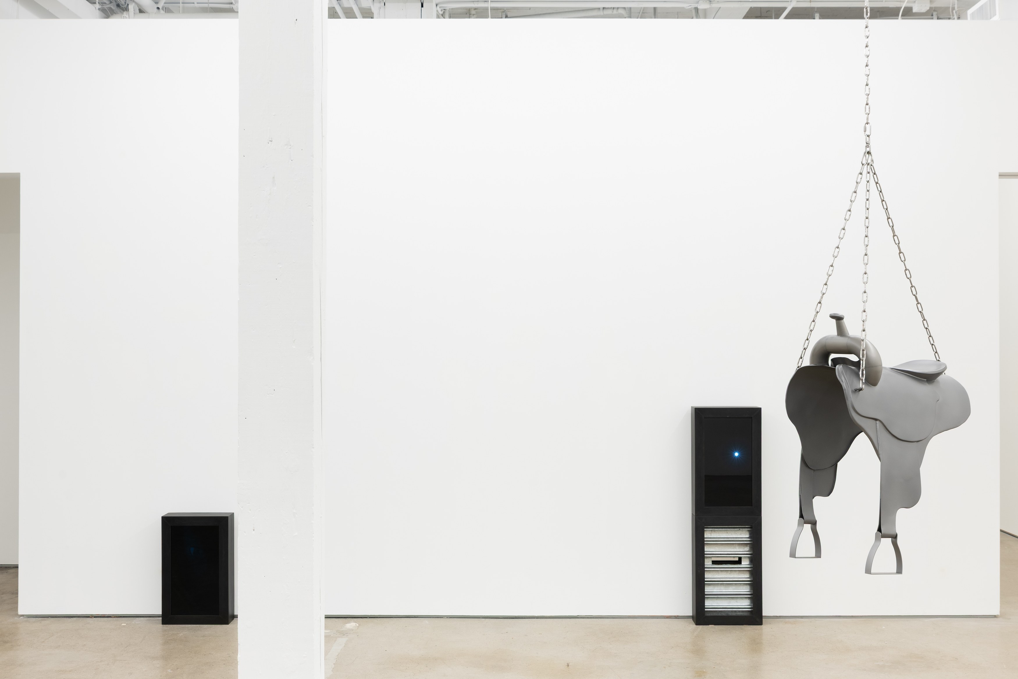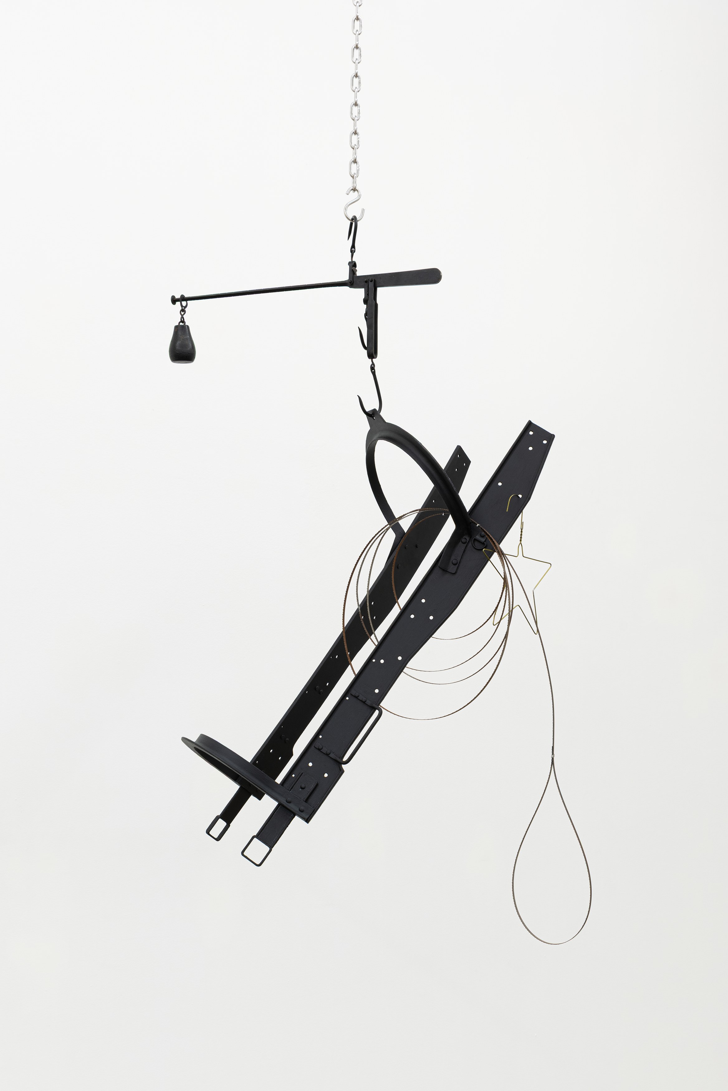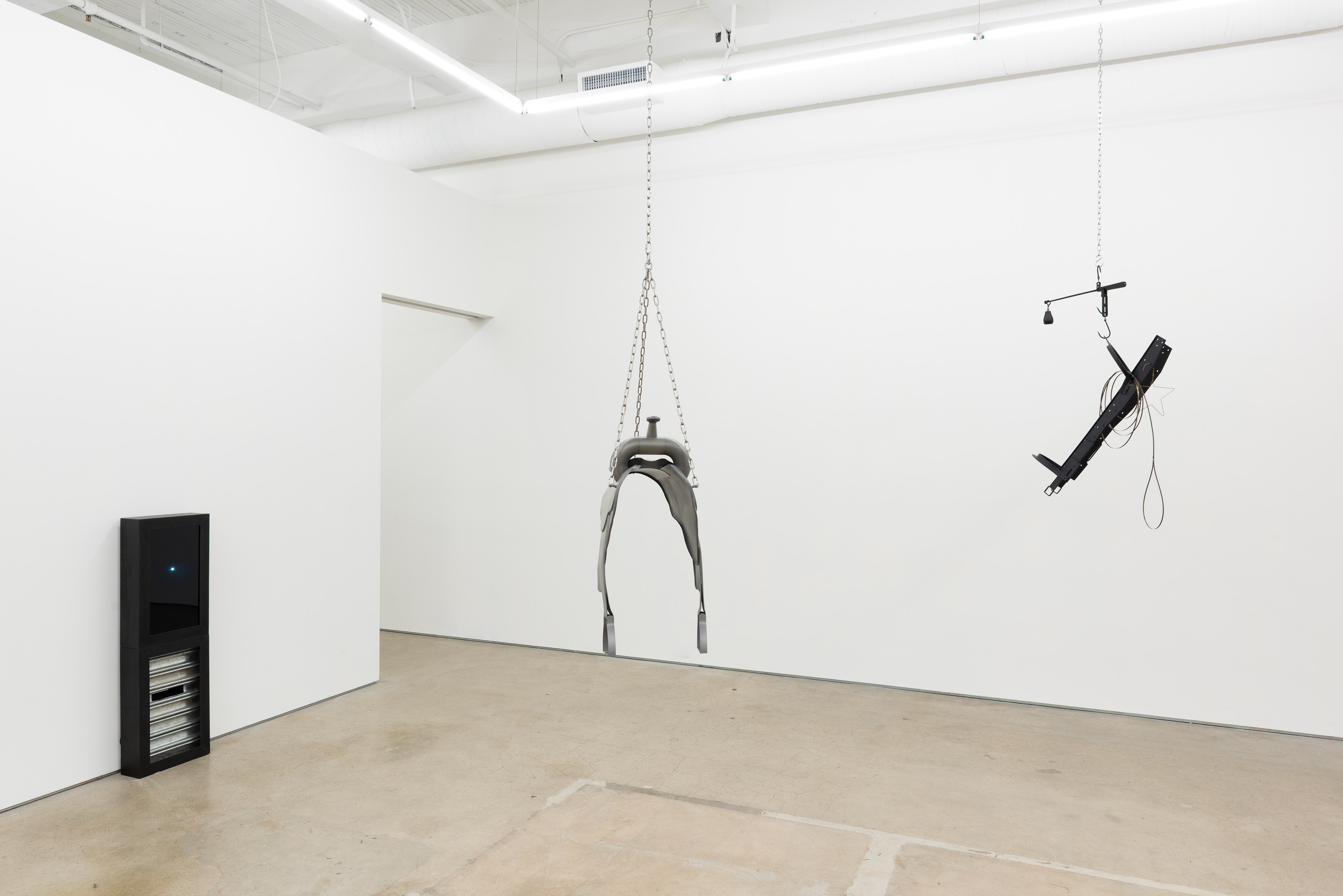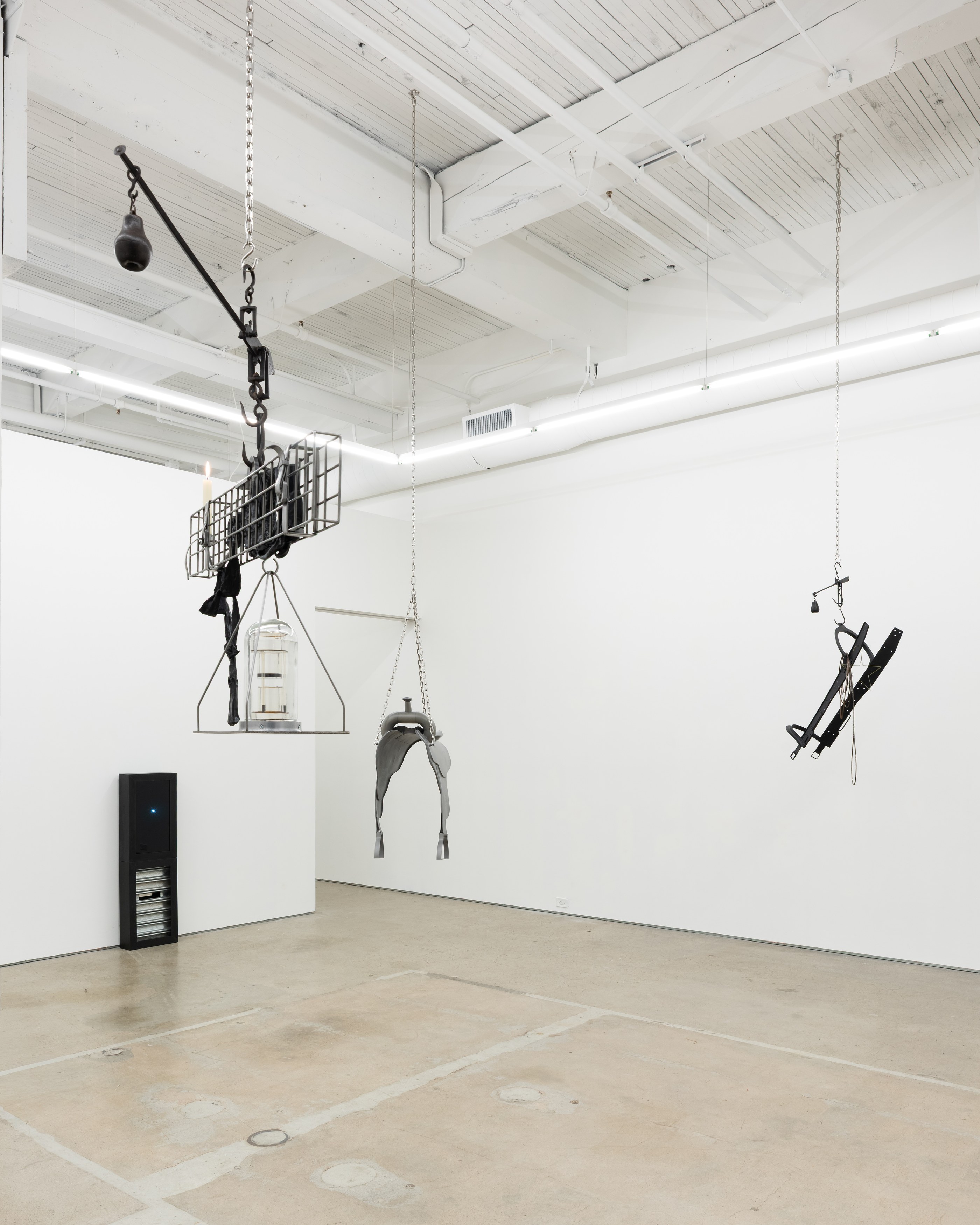 Adams and Ollman is pleased to announce barn burner, Brooklyn-based artist Peggy Chiang's first solo show on the West Coast of the United States. The exhibition is comprised of discrete objects that explore a distinctly American narrative. Using oil, wire hangers, bandsaw blades, shirt collars, roll-up gates and bone, the artist suggests a violence that is omnipresent in American identity and engenders a resonance that echoes out from the four walls of the gallery into the architecture, structures and systems that make up modern life. The exhibition opens with a reception with the artist on Saturday, September 13 and will be on view through October 25, 2025.