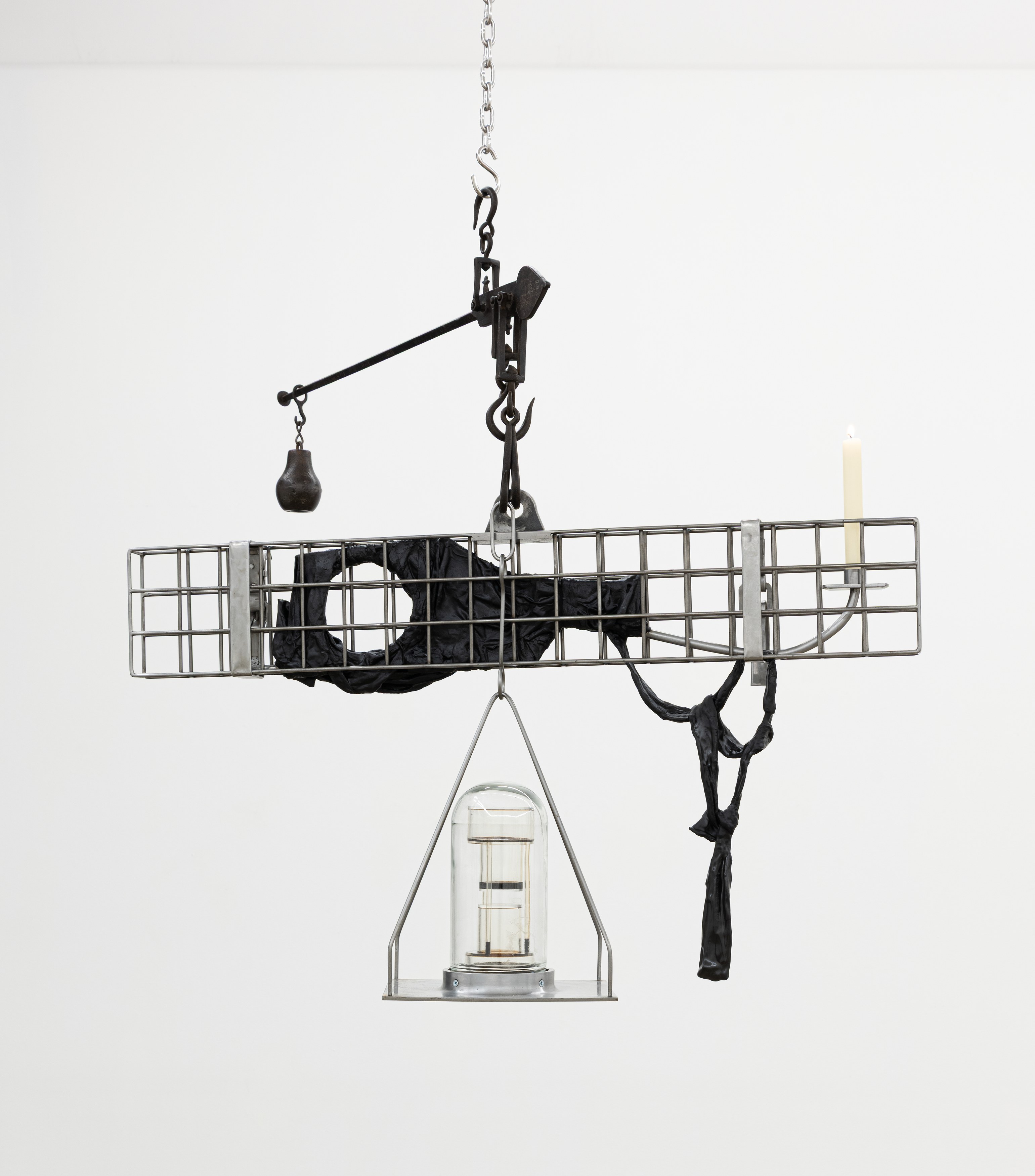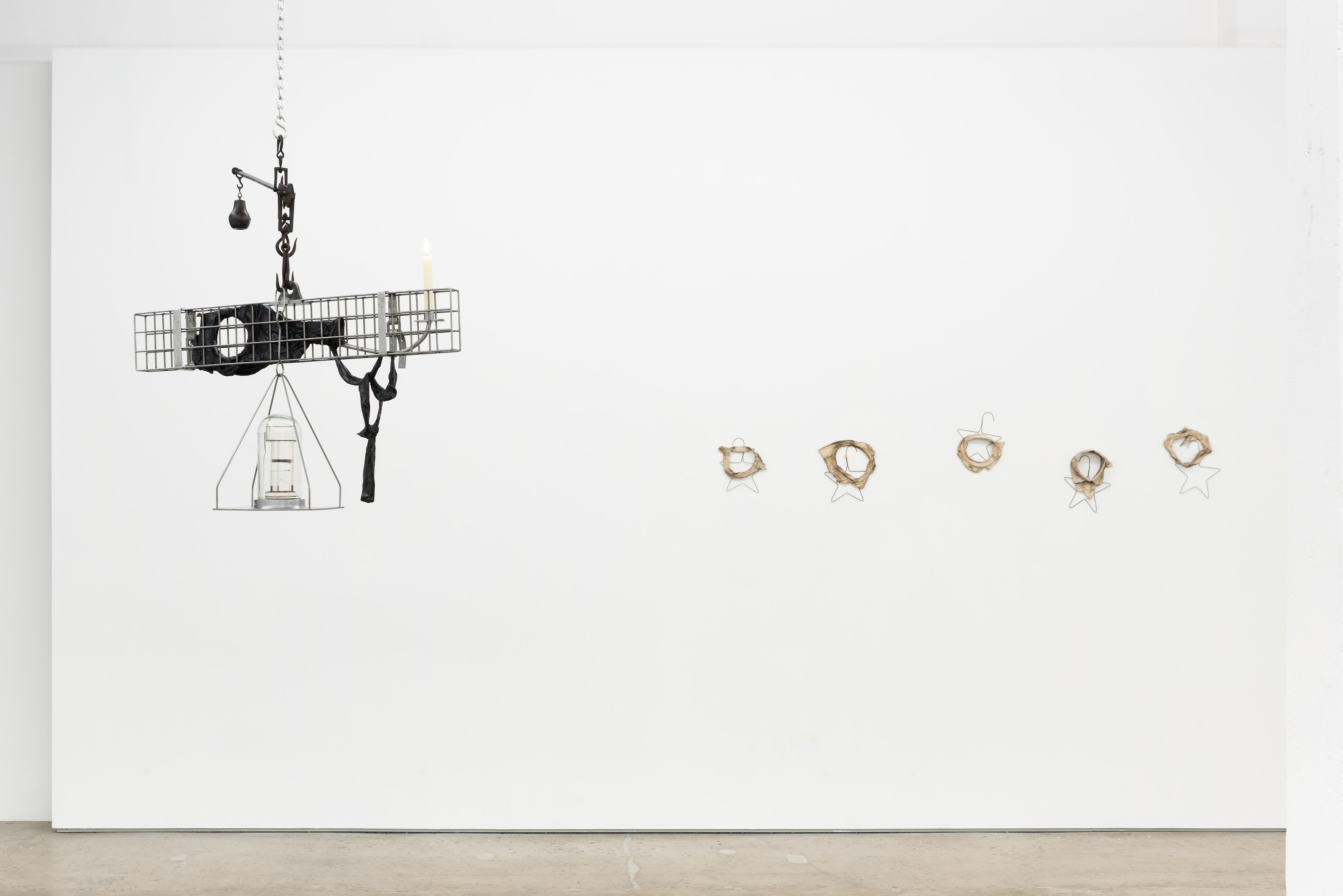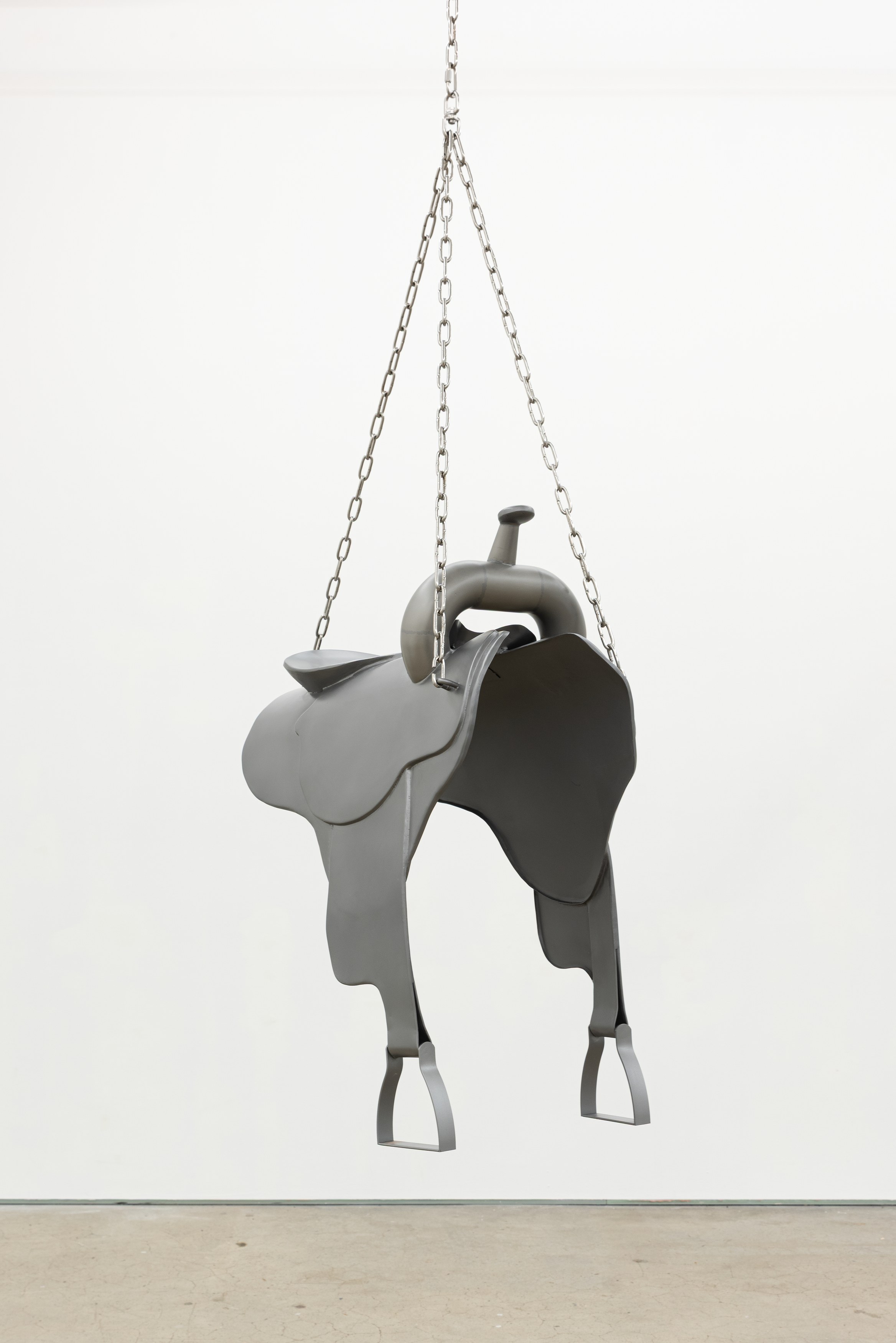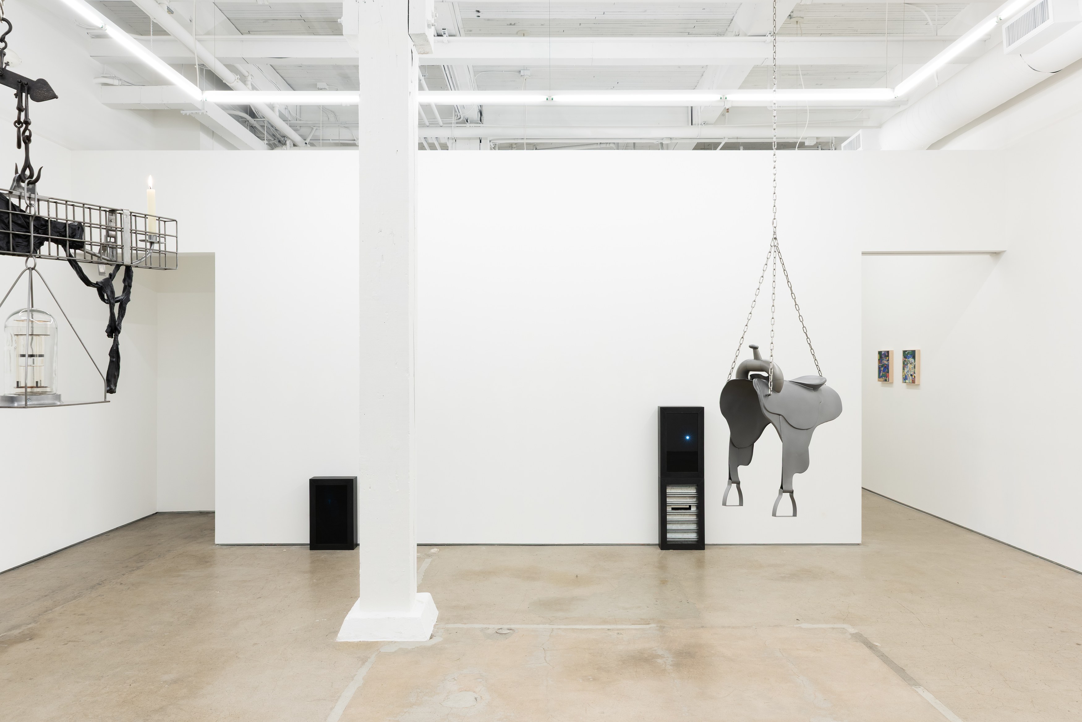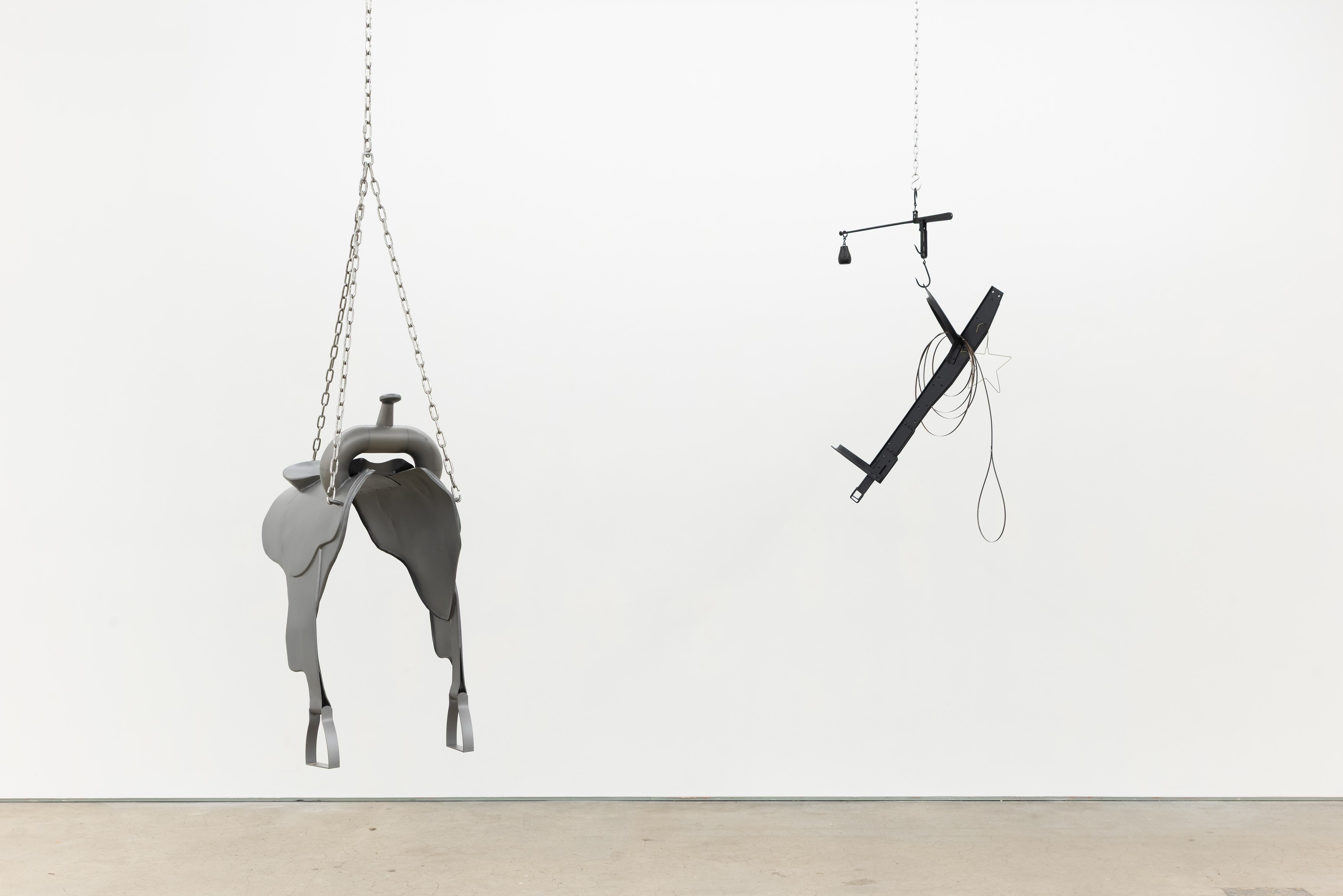 Adams and Ollman is pleased to announce barn burner, Brooklyn-based artist Peggy Chiang's first solo show on the West Coast of the United States. The exhibition is comprised of discrete objects that explore a distinctly American narrative. Using oil, wire hangers, bandsaw blades, shirt collars, roll-up gates and bone, the artist suggests a violence that is omnipresent in American identity and engenders a resonance that echoes out from the four walls of the gallery into the architecture, structures and systems that make up modern life. The exhibition opens with a reception with the artist on Saturday, September 13 and will be on view through October 25, 2025.