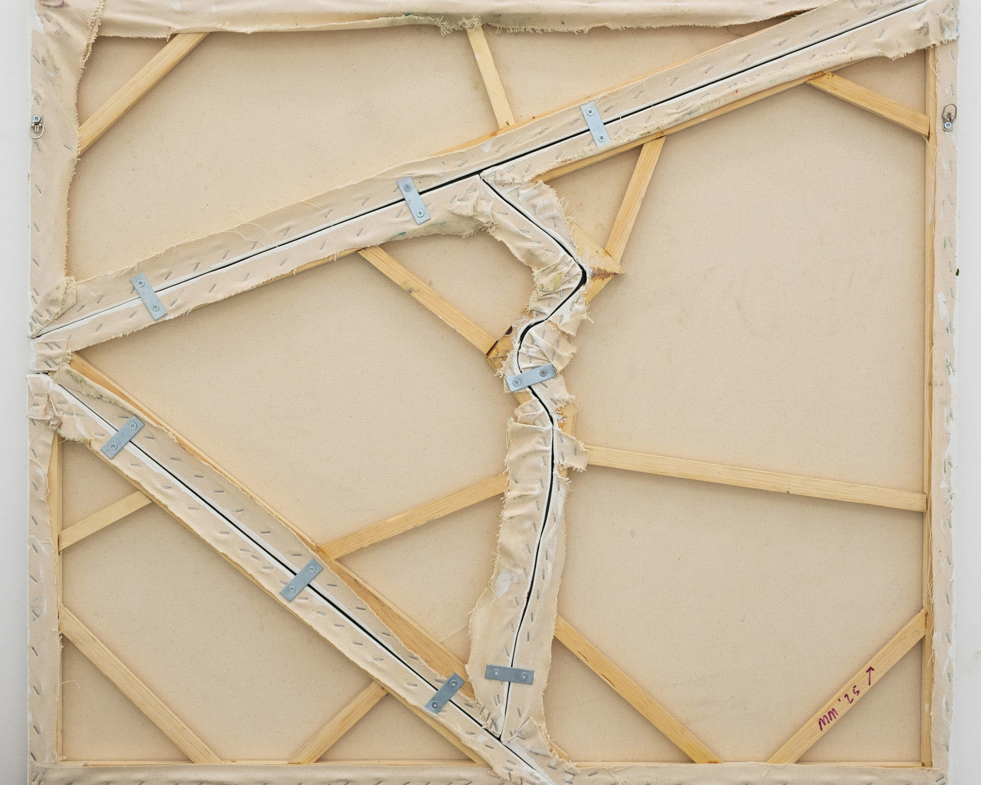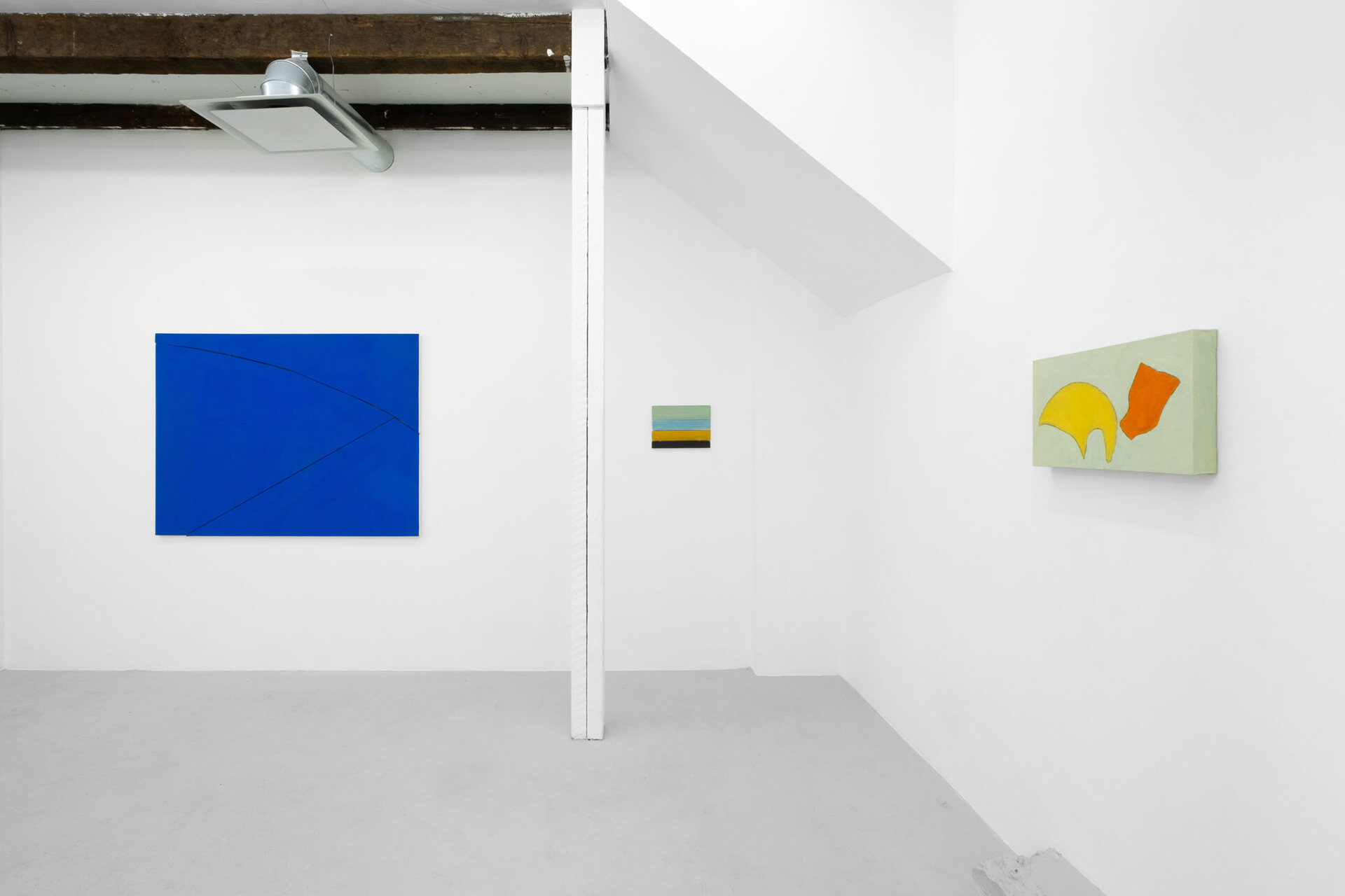 Doubt is a productive force in Montréal-based artist Malcolm McCormick’s practice, moving the process forward rather than halting it. One step forward, two steps forward, in built-up layers of abandoned iterations. The final simplicity of each painting is underlined by a history of marks and colours, sometimes visible through a fog of glazed-on paint, at other times invisibly informing the successive layers. As McCormick often builds his painting stretchers in separate interlocking ‘panels’, the layered surfaces are disrupted by constructed marks like hairlines, scarring and dividing the image plane. Visual space in the works is implied through these diagonals and arching curves, rather than through their painted surfaces; a paradox that further complicates painting’s status as both image and object. The permanent compositional lines serve as a guardrail against the artist’s desire to endlessly rework the surface, a countermeasure for the consuming doubt that drives the work. This…