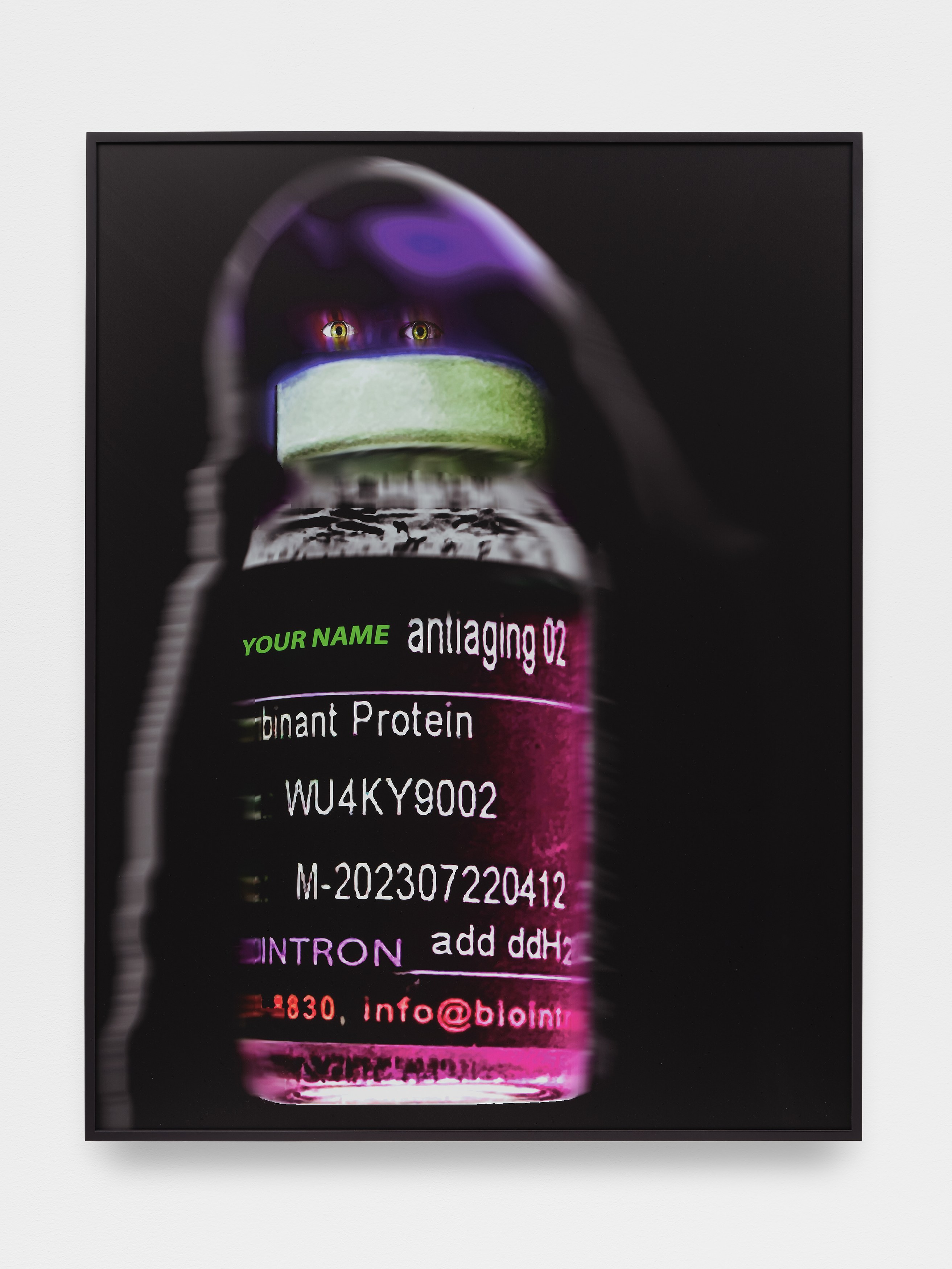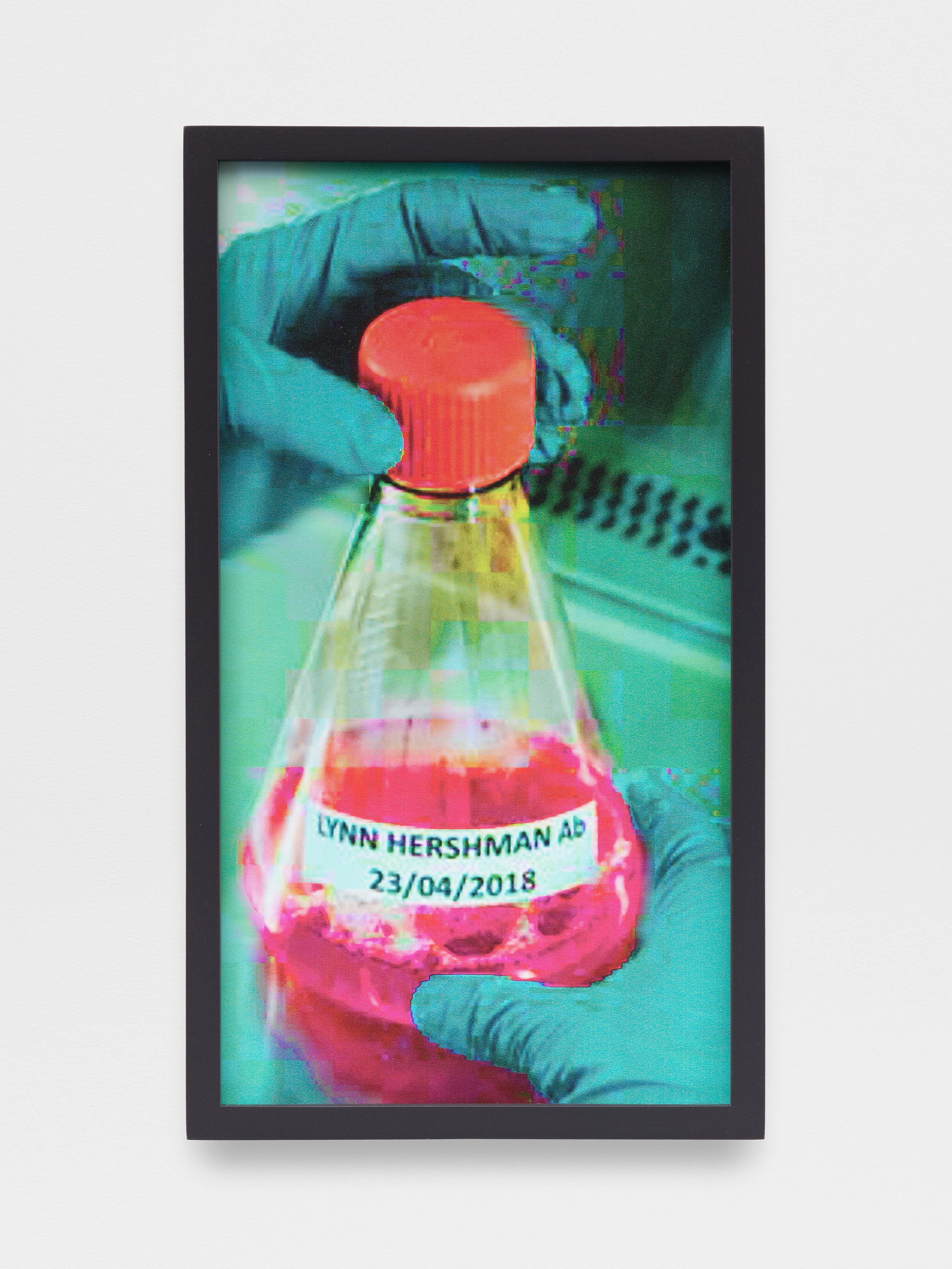 Altman Siegel is delighted to present About Time, Lynn Hershman Leeson’s third solo exhibition with the gallery. A radical and visionary artist, Hershman Leeson has challenged conventional definitions of art for over six decades, consistently shredding the boundaries of technology, identity, and psychology. At the center of Hershman Leeson's latest exhibition is an antibody engineered to reverse aging. Developed by Hershman Leeson alongside Dr. Tomas Huber and a private pharmaceutical lab in China, the serum serves to reverse aging one day at a time, each time it is administered. The genetic makeup of this protein-based antigen has now been adopted by the lab Hershman Leeson contracted for the project, and is currently being offered commercially throughout Asia as an antidote to aging. As with previous bodies of work, Hershman Leeson has preempted foundational advancements in technology that go on to become ubiquitous facets of everyday life.