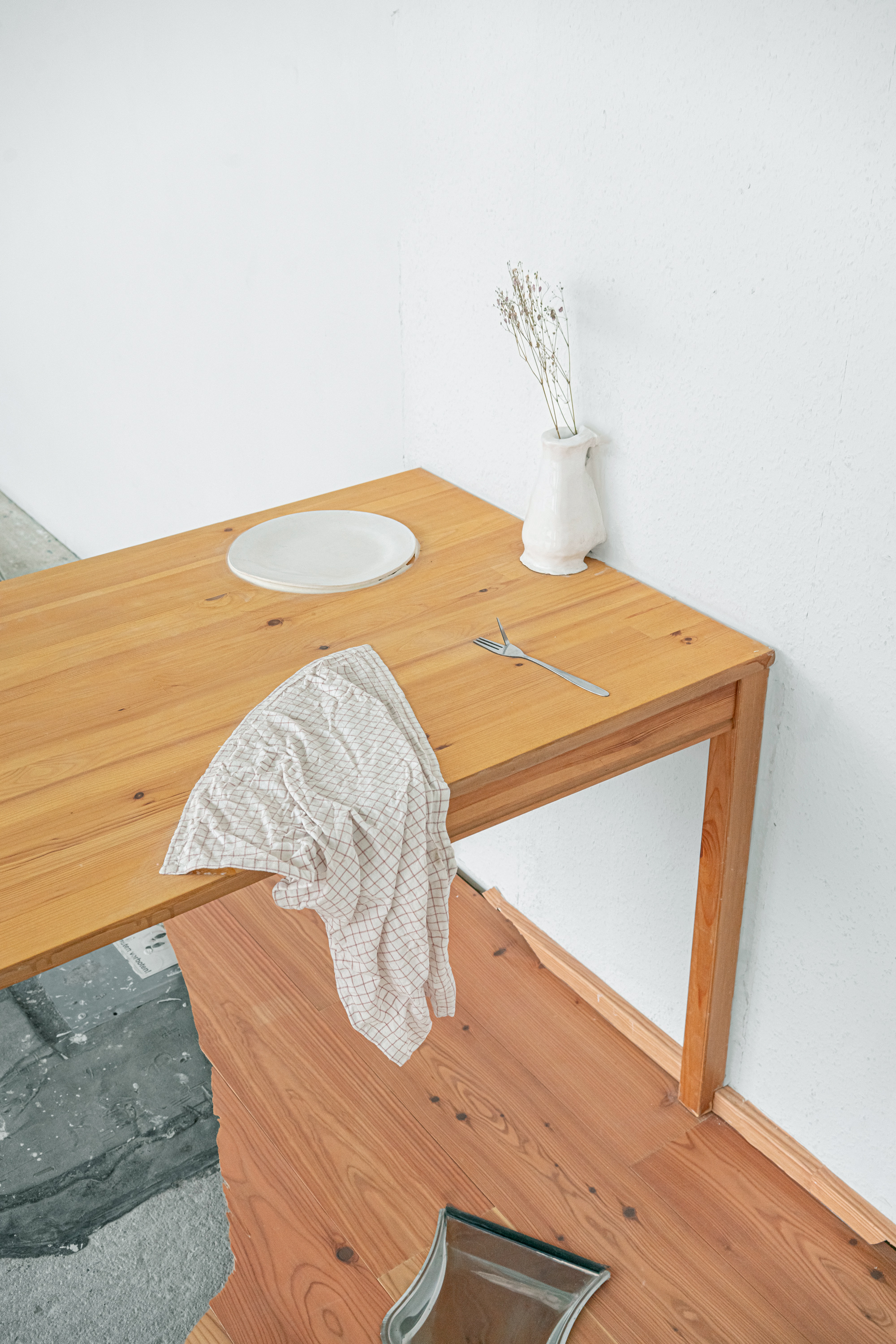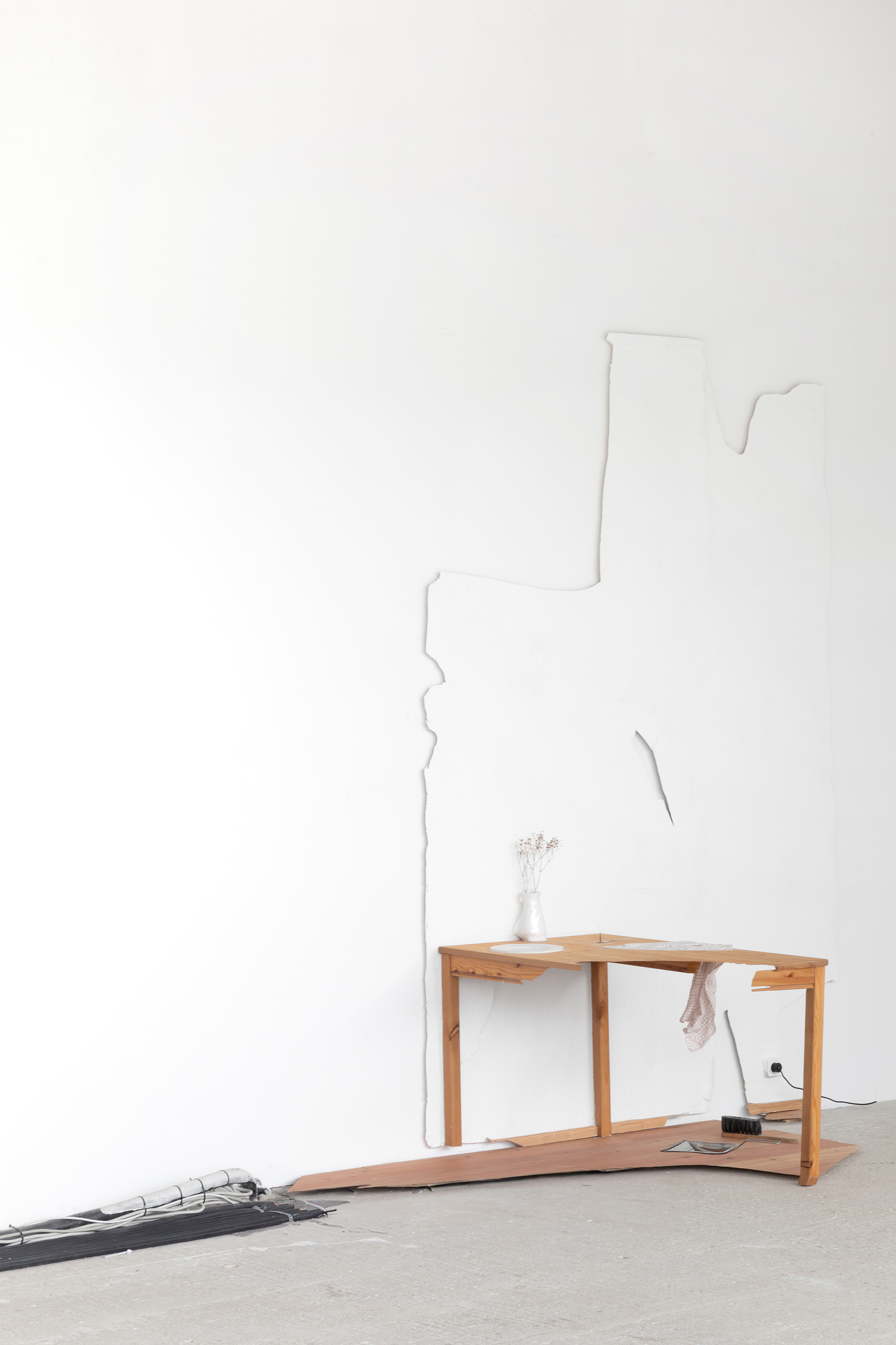 There are moments when an object stops doing what it seems to promise. This gap between expectation and reality is where this exhibition begins. It brings together works that appear functional yet remain out of reach. They are connected by a condition of brokenness — a minor shift that moves them from one register to another. Witnesses of such disruptions often experience as a sense of awkwardness, a subtle unease that arises when something goes wrong. We feel the dissonance of seeing the order violated. This sensation generates a dual response: a desire to look away and pretend nothing happened, and at the same time a need to call someone who can restore order, to return the object to what it seemed to