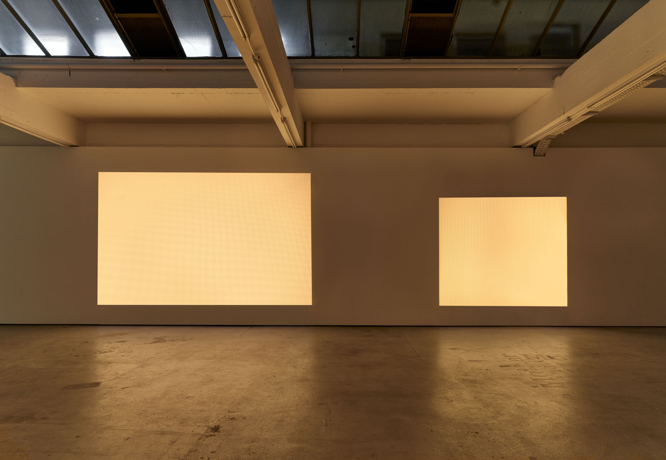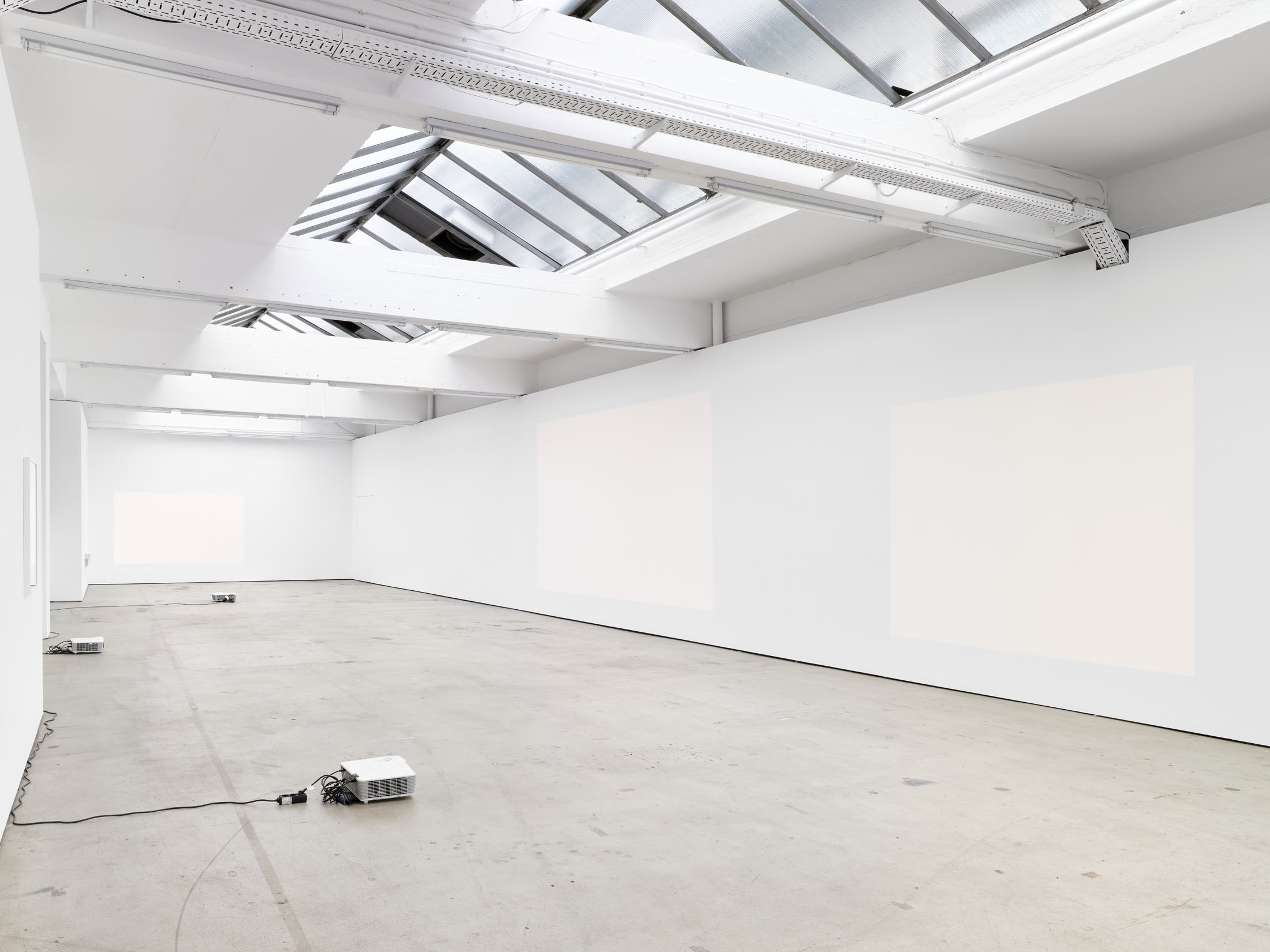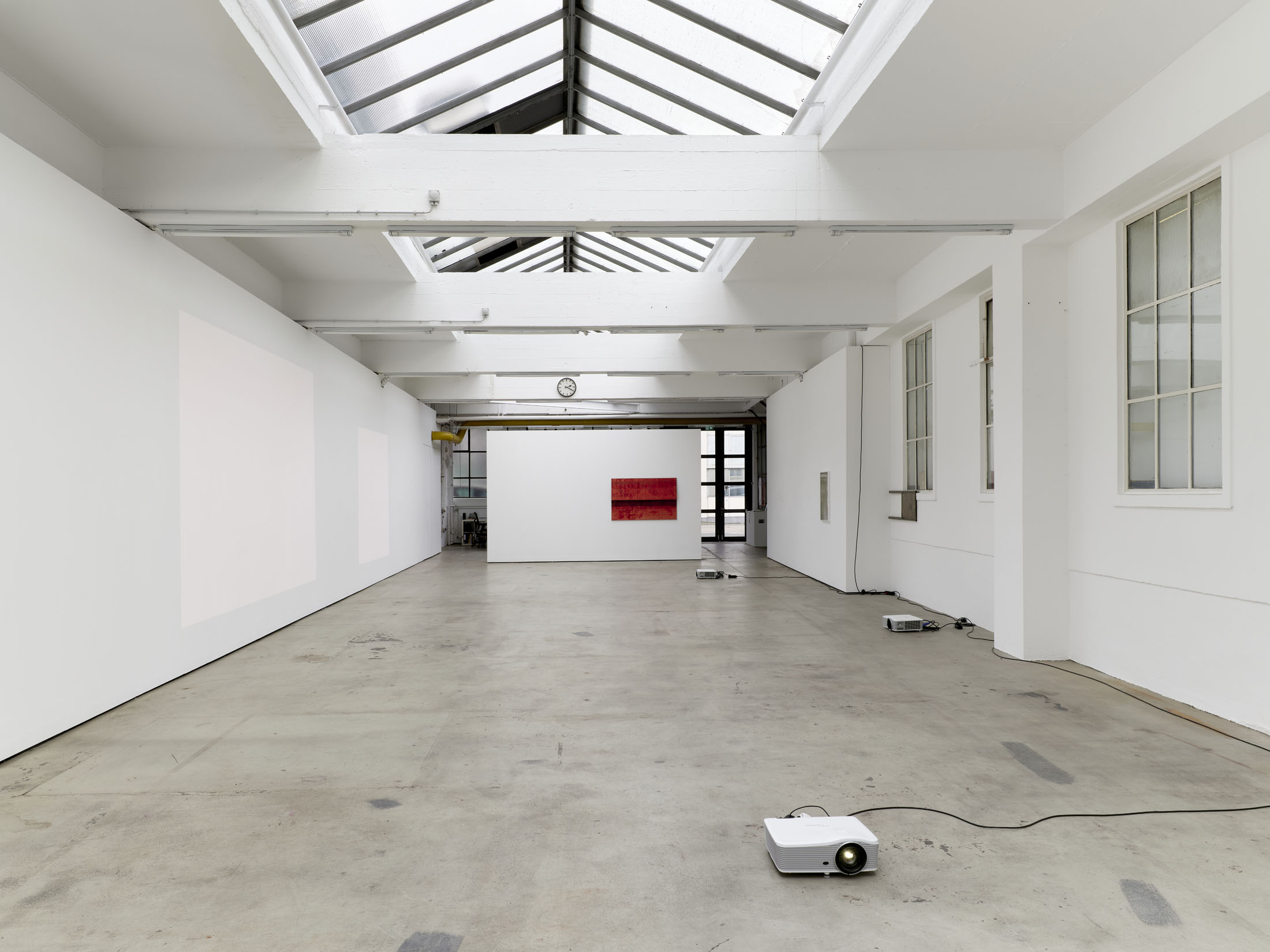 Johanna von Monkiewitsch’s exhibition A Long Moment engages with the light phenomena of the gallery space, where video projections of light and color enter into dialogue with the constantly changing natural light in the room. In this installative presentation—where light itself becomes a performative element—she explores questions of reality, time, fragility, and transience through a multimedia approach that includes video, sculpture, installation, photography, and works on paper and canvas.