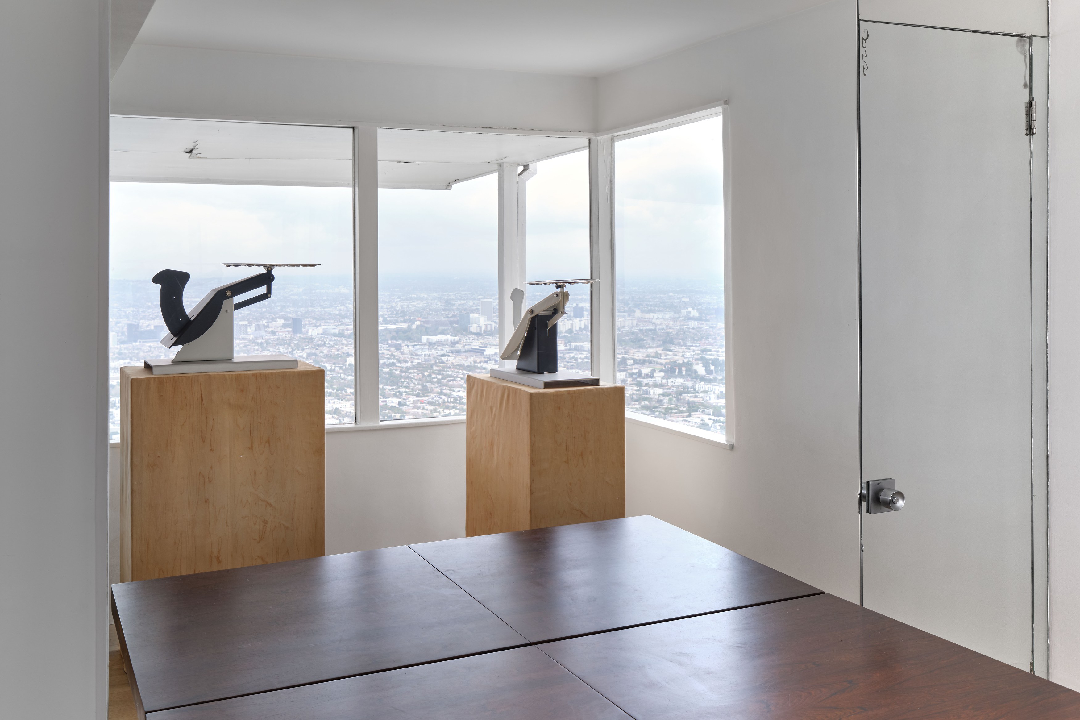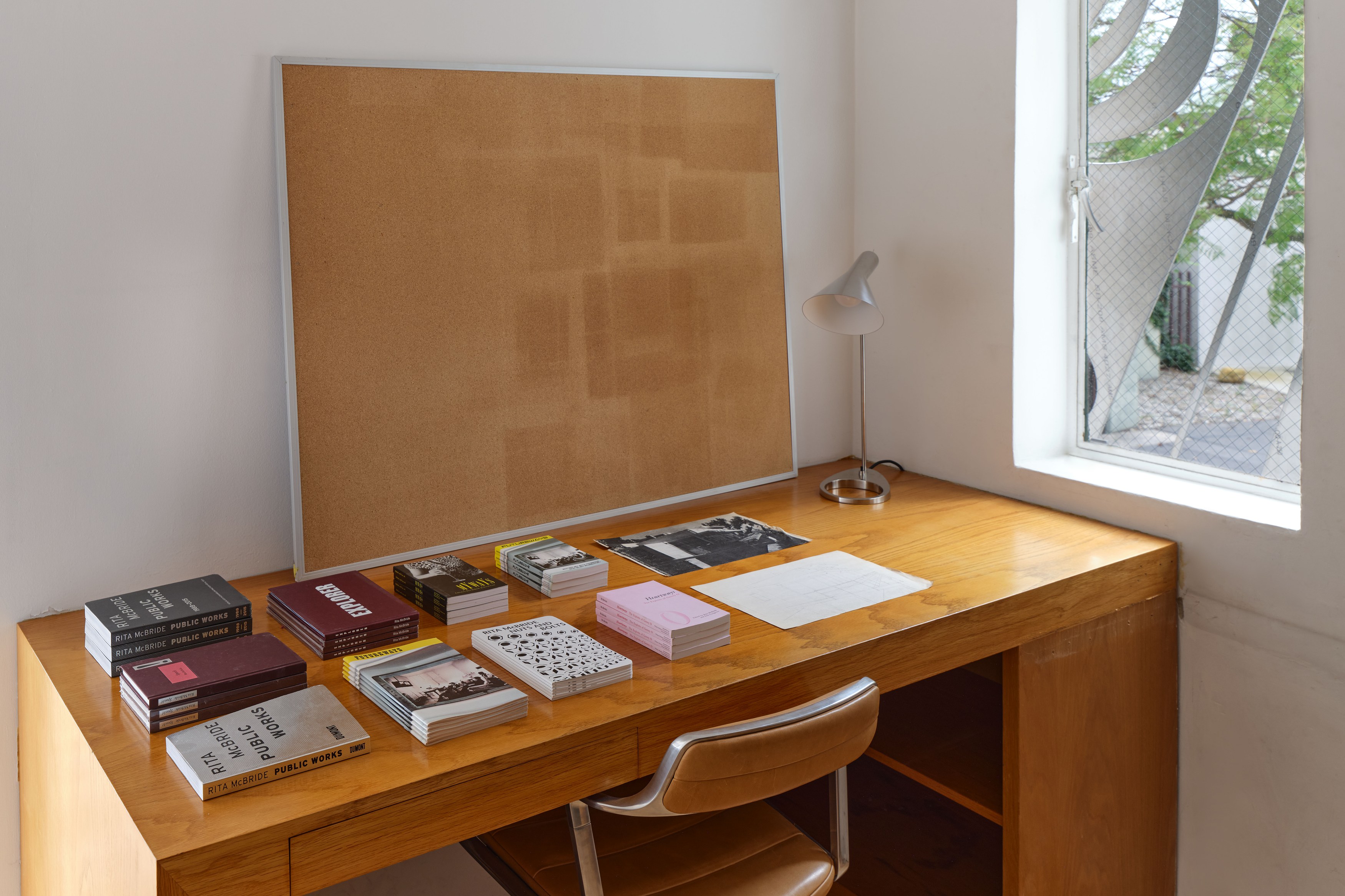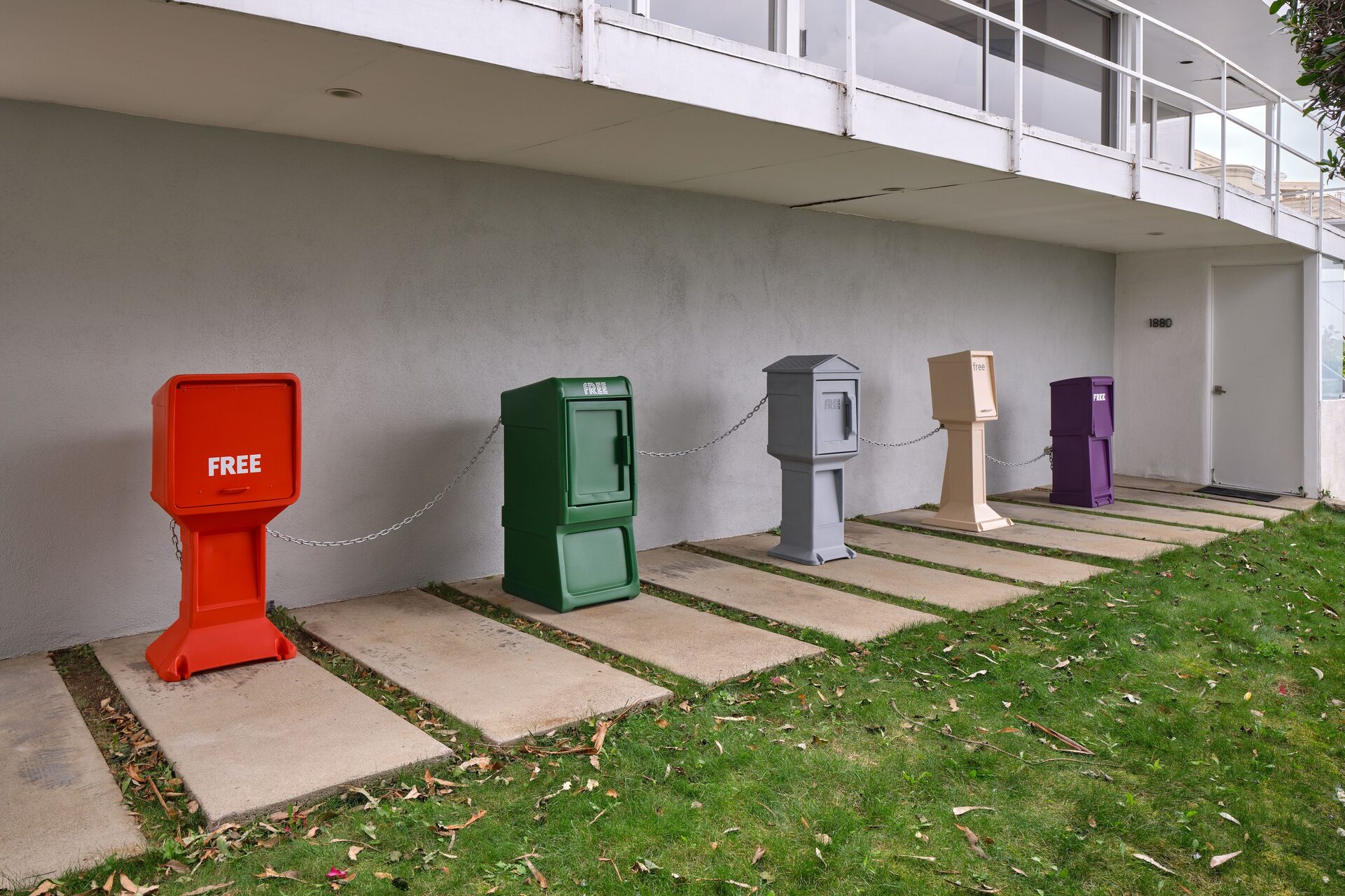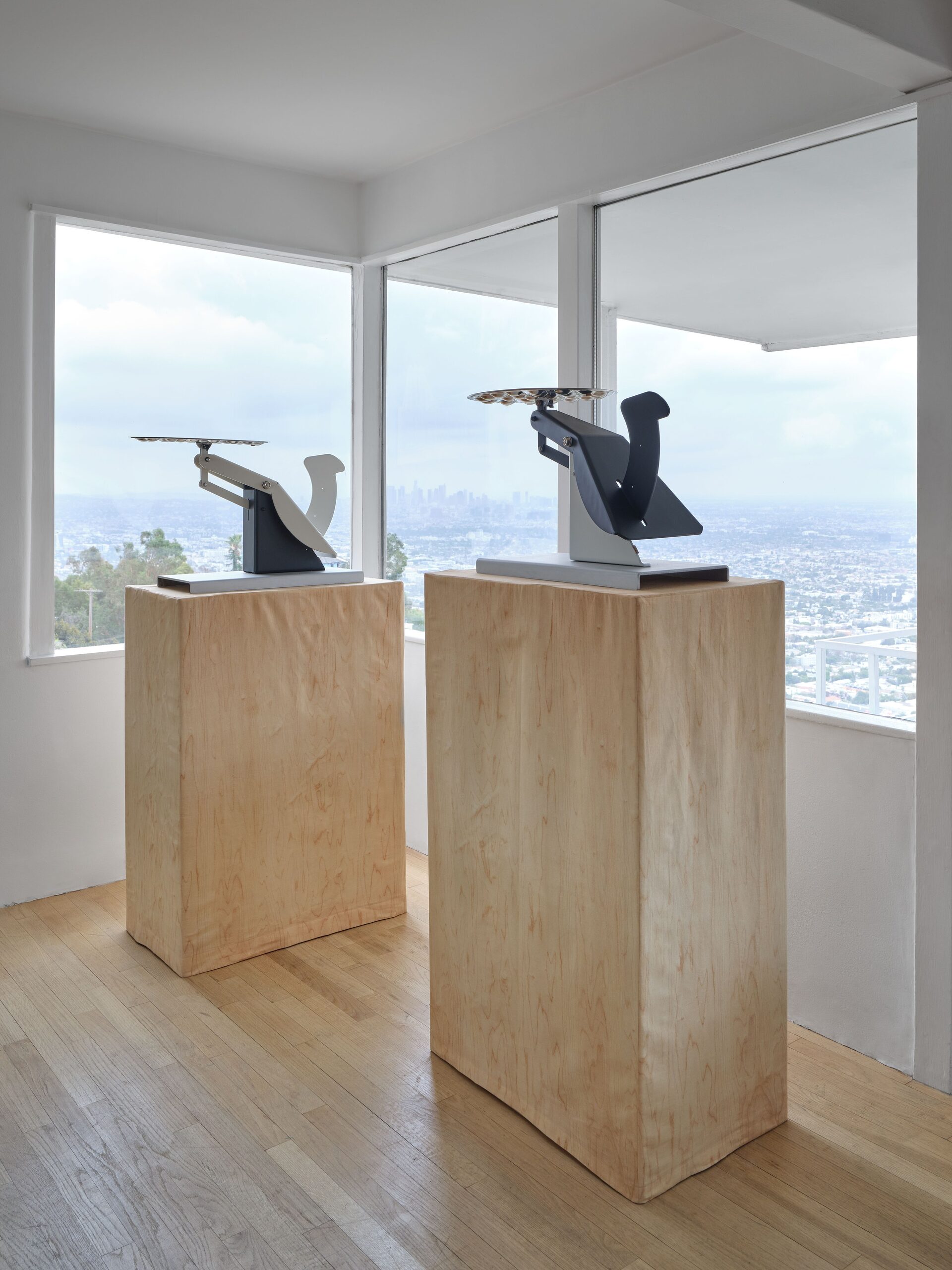 Presented by Del Vaz Projects and OKEY DOKEY KONRAD FISCHER, wunderkammer is an installation by Rita McBride at Blue Heights Arts & Culture—located at the house that the architect Richard Neutra designed for the German-Jewish émigré, artist/art collector, dealer, and educator Galka Scheyer in 1934. wunderkammer begins with McBride clearing space in her studio to create a singular, novel artwork. The circumstance of this rearrangement results in an amalgamation of past and in-process works hung and placed randomly. Situated similarly in this domestic setting (without chronology, rhythm, or reason), McBride’s works—often engaging civic space, urban infrastructure, and industrial fabrication—mold into compartmental, eclectic fixtures. While every element originates from a specific point in the evolution of her practice, here, each piece functions as a neighbor—relevant in its immediate relation to the artwork that it surrounds and the architecture that surrounds it. Moving from one…