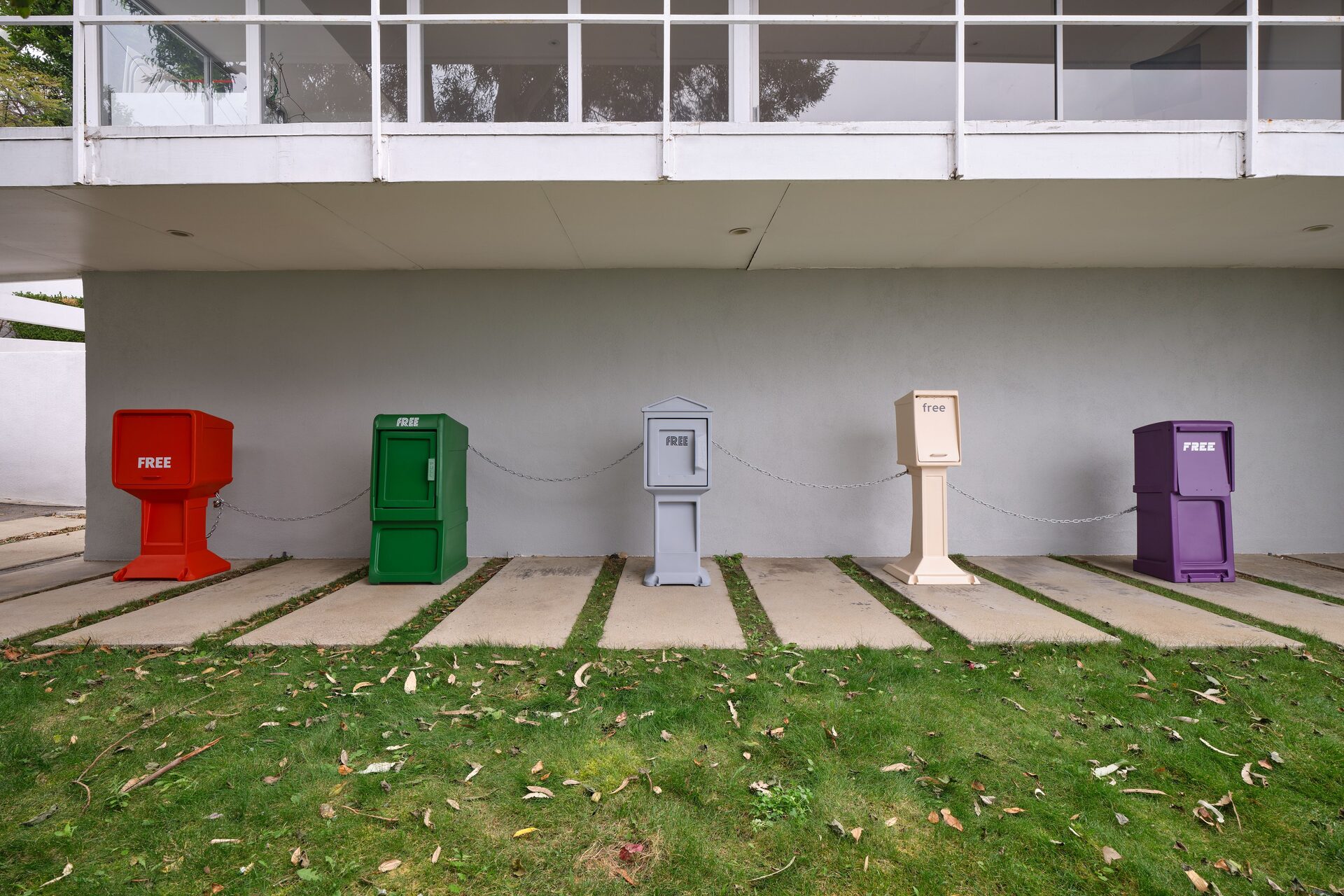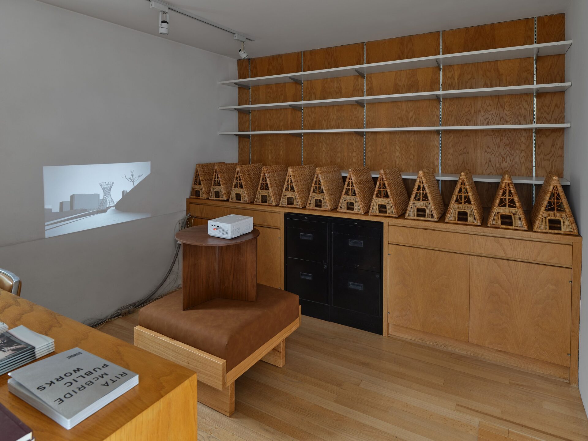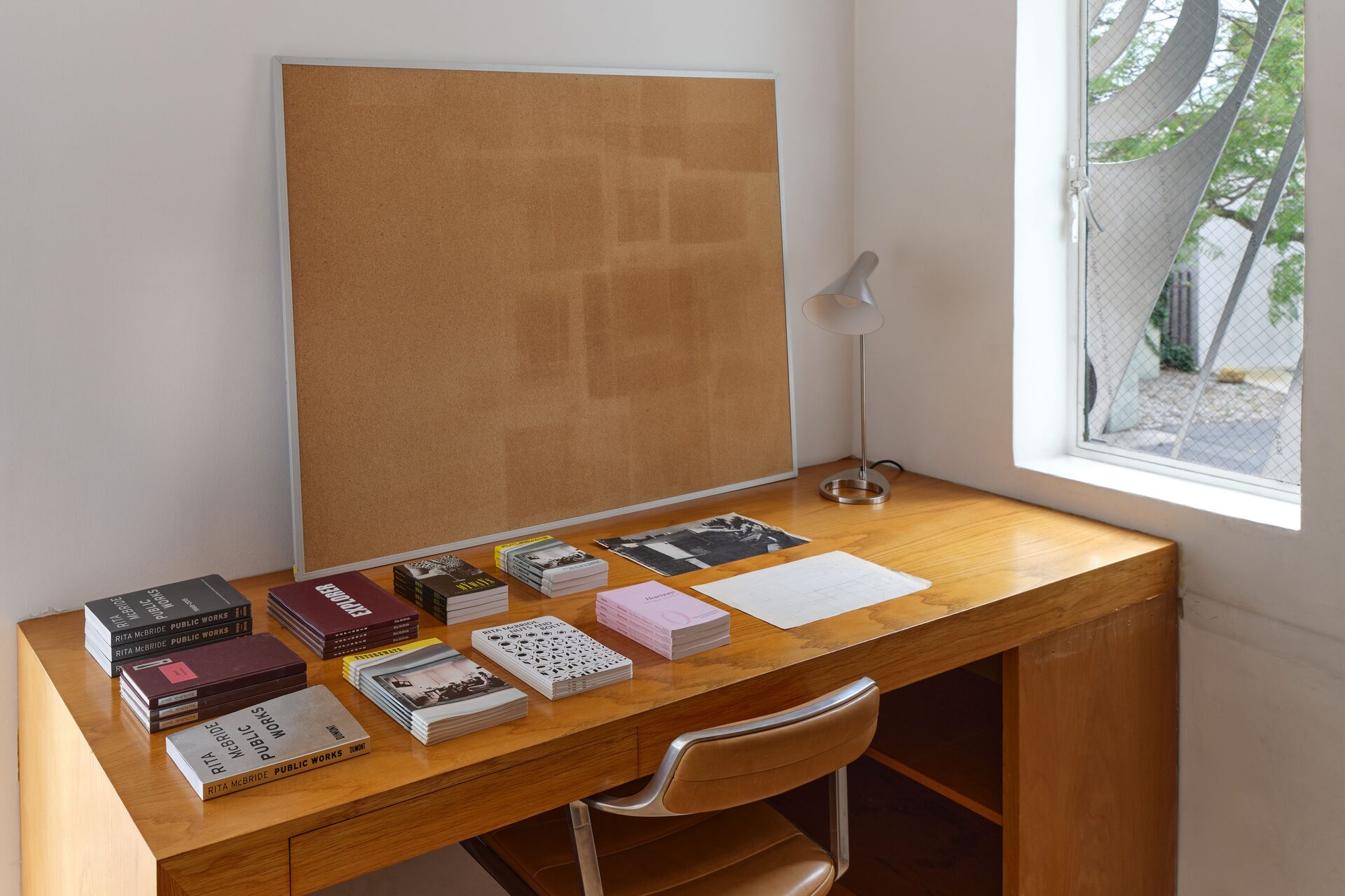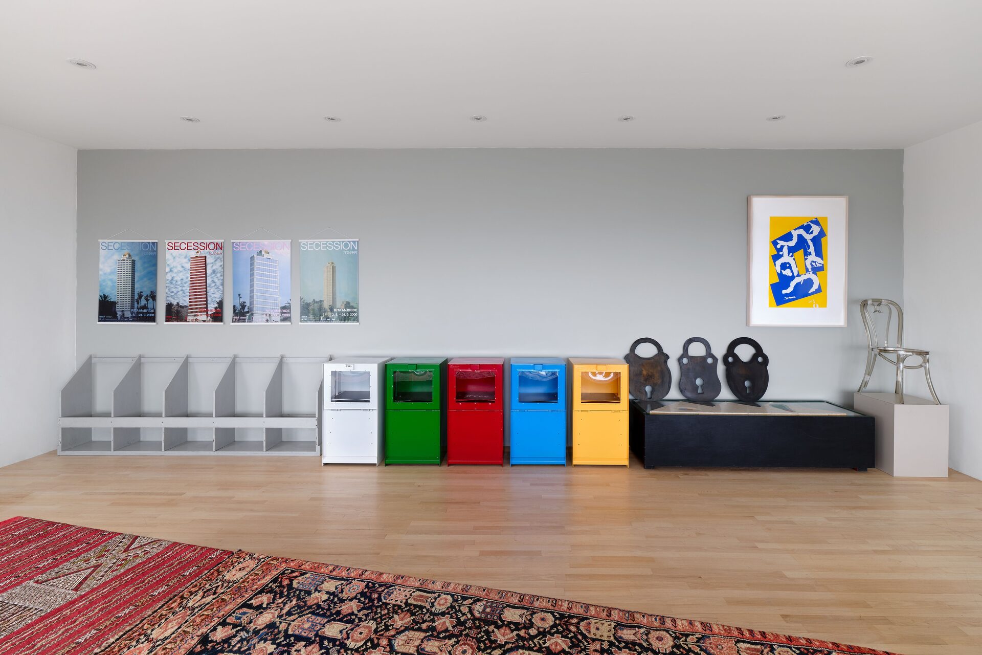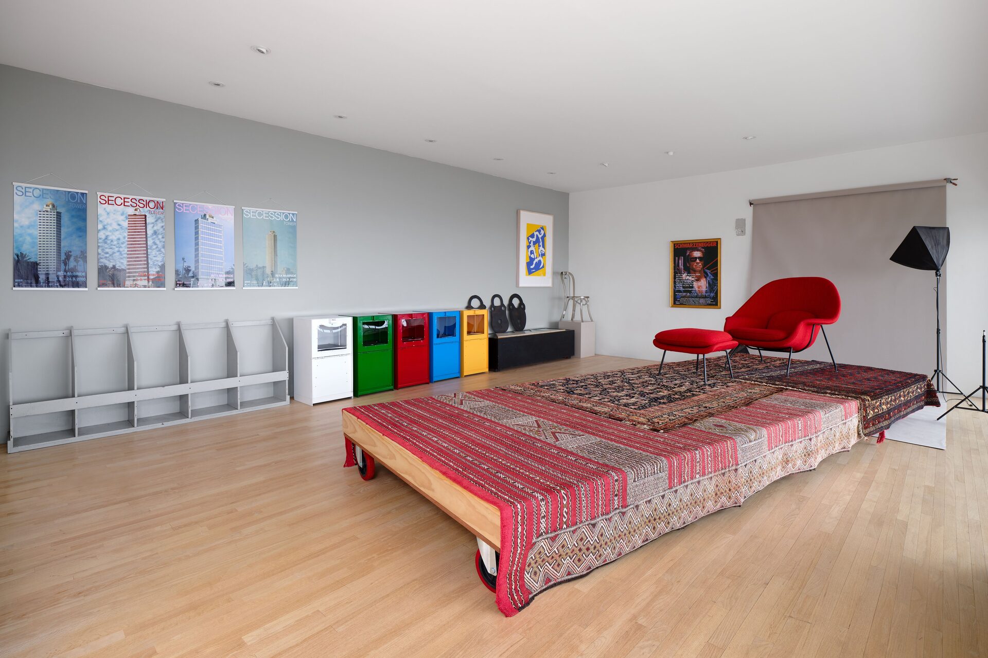 Presented by Del Vaz Projects and OKEY DOKEY KONRAD FISCHER, wunderkammer is an installation by Rita McBride at Blue Heights Arts & Culture—located at the house that the architect Richard Neutra designed for the German-Jewish émigré, artist/art collector, dealer, and educator Galka Scheyer in 1934. wunderkammer begins with McBride clearing space in her studio to create a singular, novel artwork. The circumstance of this rearrangement results in an amalgamation of past and in-process works hung and placed randomly. Situated similarly in this domestic setting (without chronology, rhythm, or reason), McBride’s works—often engaging civic space, urban infrastructure, and industrial fabrication—mold into compartmental, eclectic fixtures. While every element originates from a specific point in the evolution of her practice, here, each piece functions as a neighbor—relevant in its immediate relation to the artwork that it surrounds and the architecture that surrounds it. Moving from one…