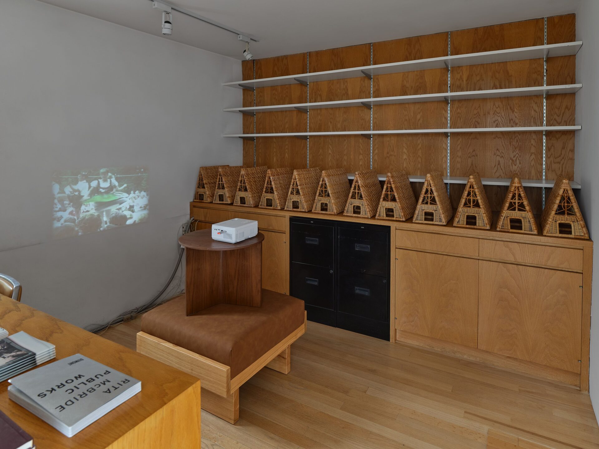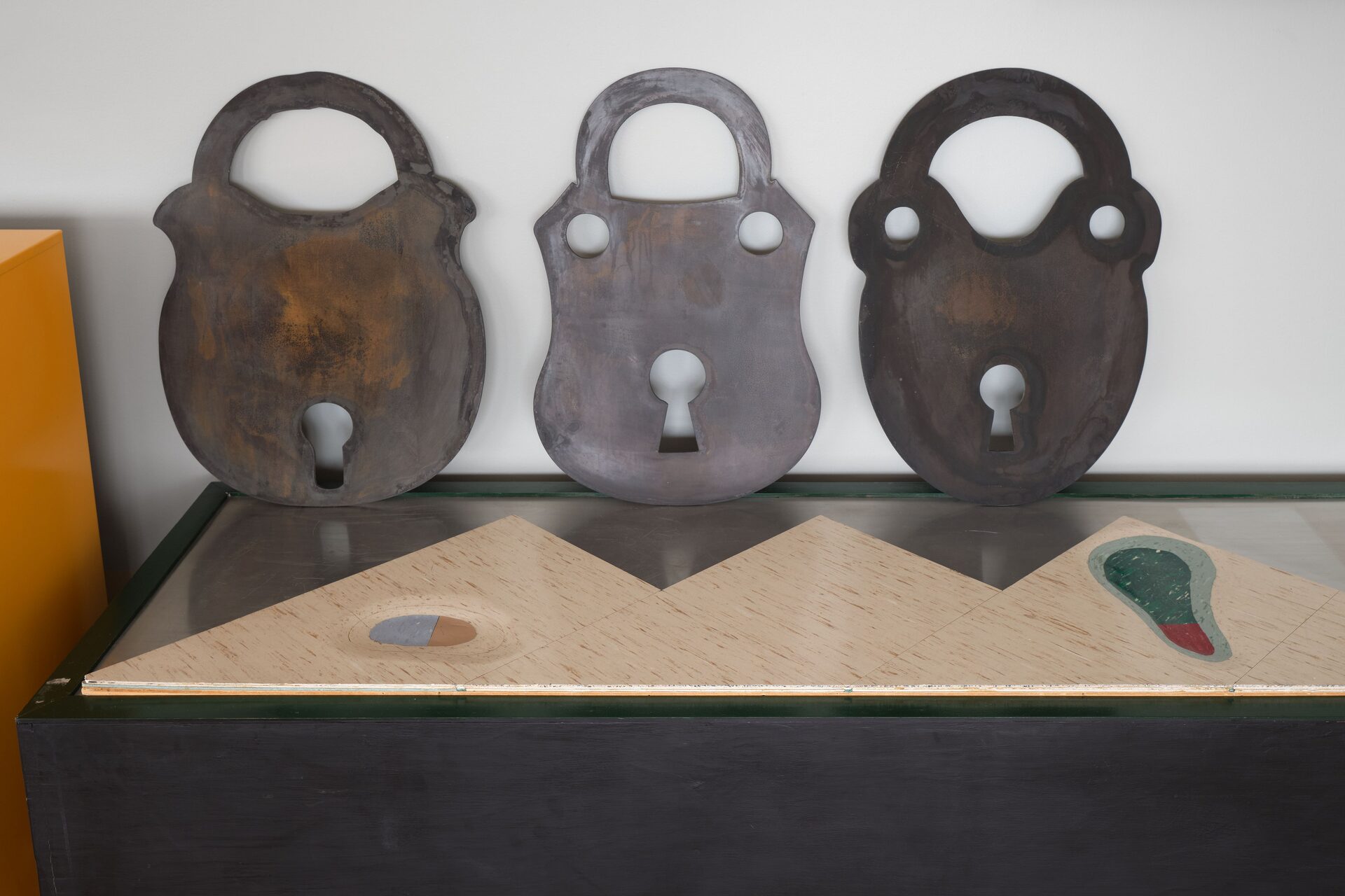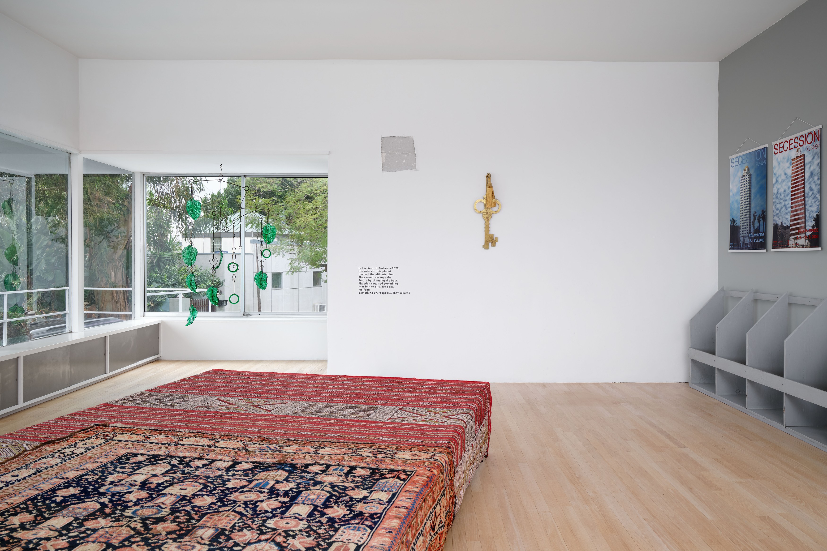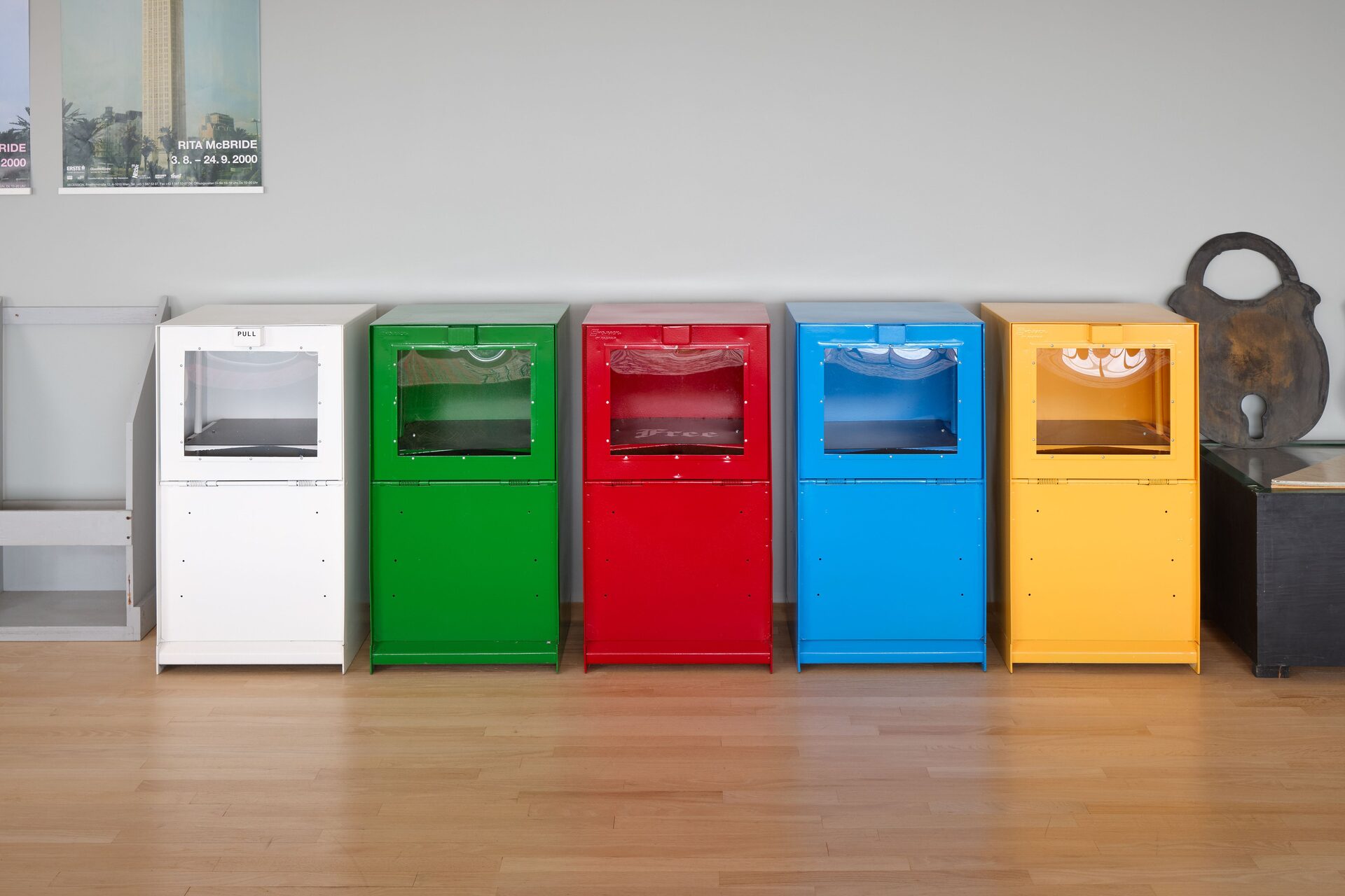 Presented by Del Vaz Projects and OKEY DOKEY KONRAD FISCHER, wunderkammer is an installation by Rita McBride at Blue Heights Arts & Culture—located at the house that the architect Richard Neutra designed for the German-Jewish émigré, artist/art collector, dealer, and educator Galka Scheyer in 1934. wunderkammer begins with McBride clearing space in her studio to create a singular, novel artwork. The circumstance of this rearrangement results in an amalgamation of past and in-process works hung and placed randomly. Situated similarly in this domestic setting (without chronology, rhythm, or reason), McBride’s works—often engaging civic space, urban infrastructure, and industrial fabrication—mold into compartmental, eclectic fixtures. While every element originates from a specific point in the evolution of her practice, here, each piece functions as a neighbor—relevant in its immediate relation to the artwork that it surrounds and the architecture that surrounds it. Moving from one…