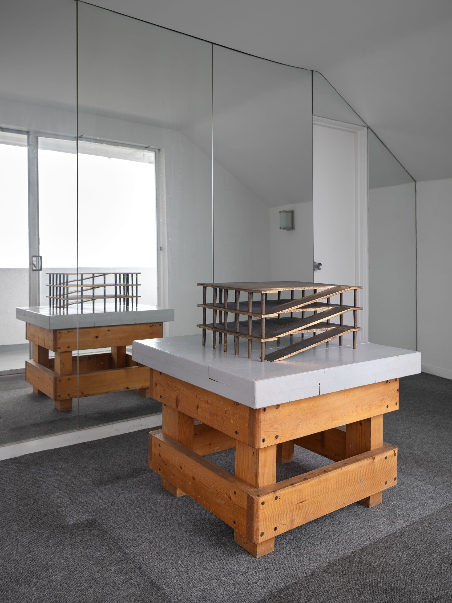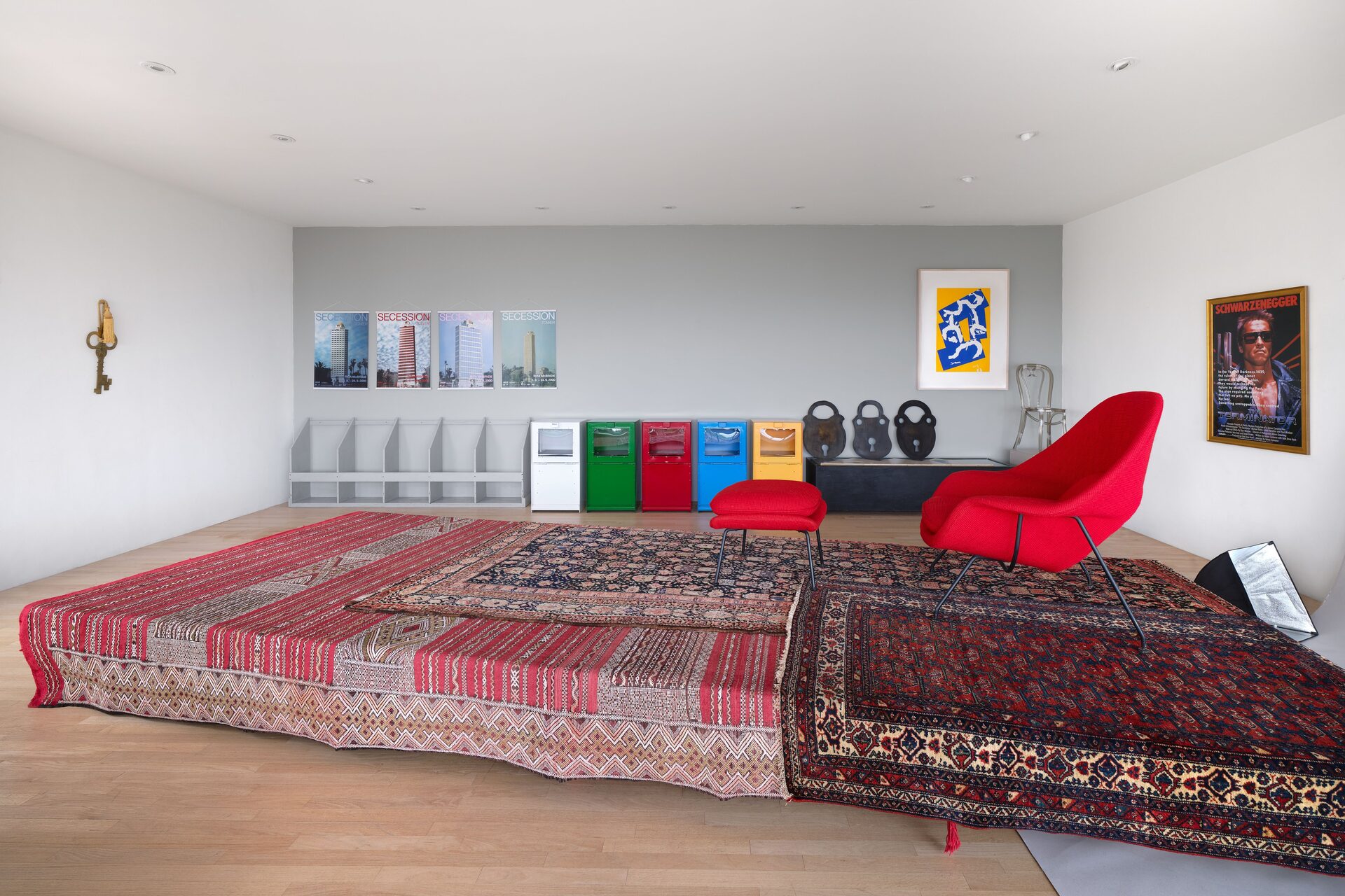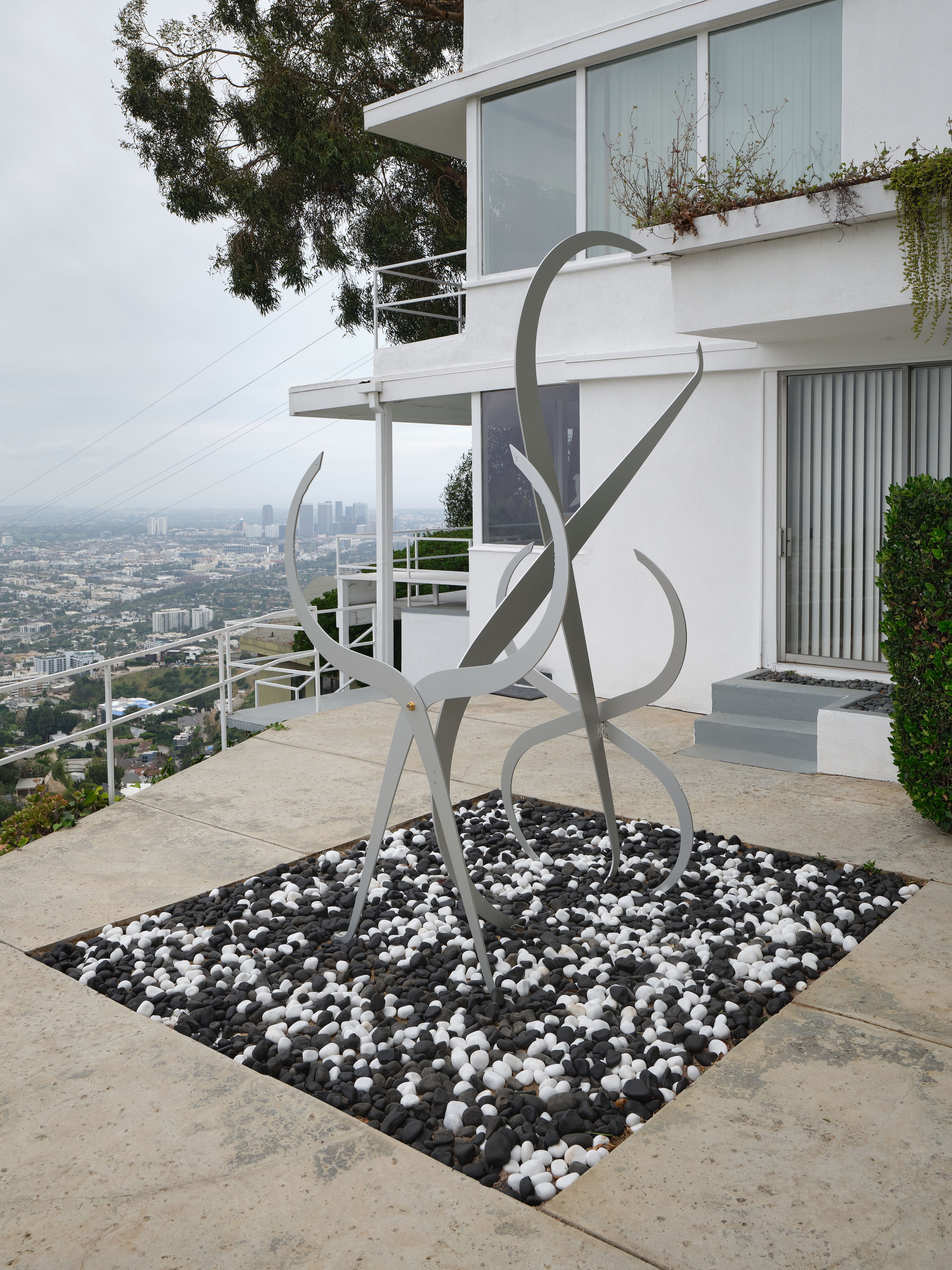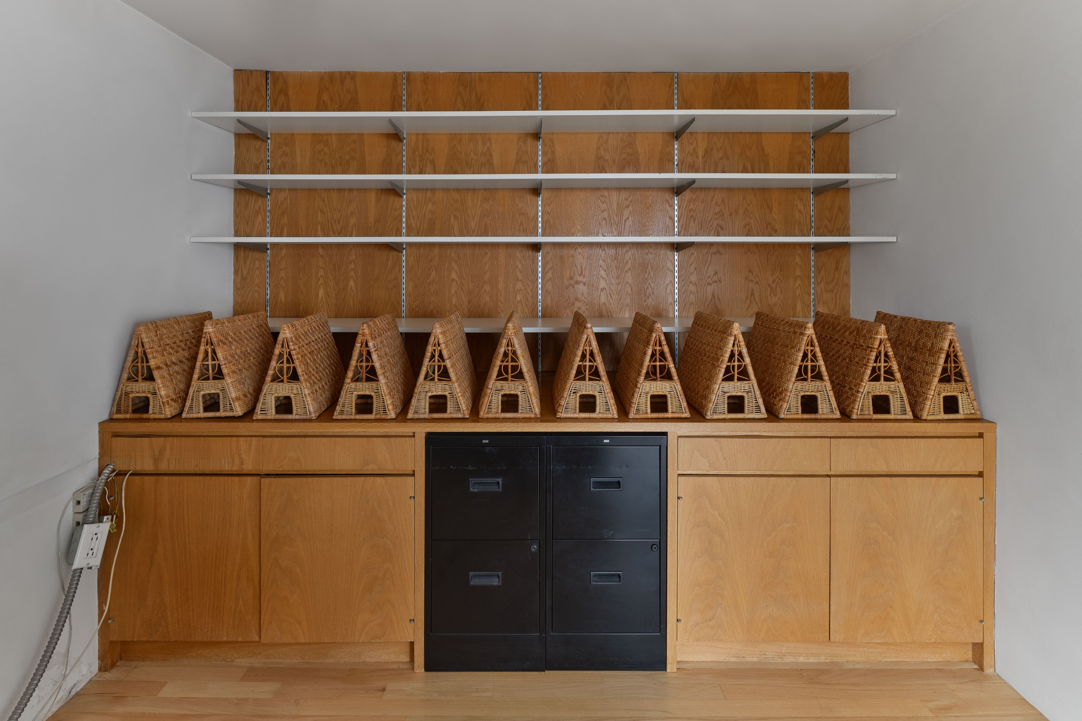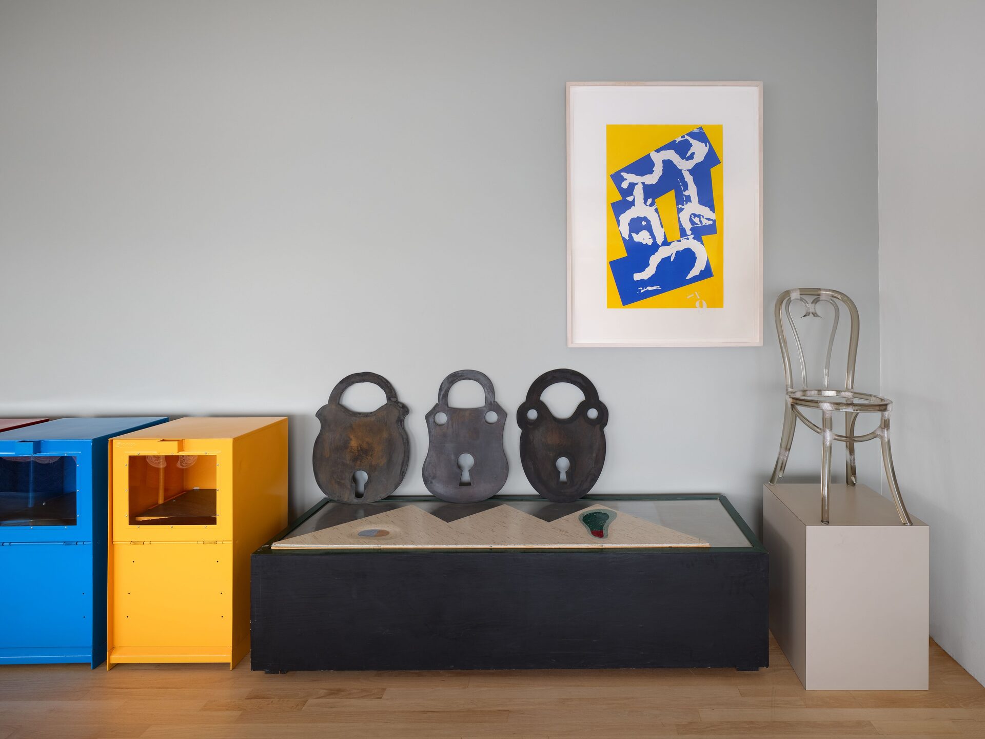 Presented by Del Vaz Projects and OKEY DOKEY KONRAD FISCHER, wunderkammer is an installation by Rita McBride at Blue Heights Arts & Culture—located at the house that the architect Richard Neutra designed for the German-Jewish émigré, artist/art collector, dealer, and educator Galka Scheyer in 1934. wunderkammer begins with McBride clearing space in her studio to create a singular, novel artwork. The circumstance of this rearrangement results in an amalgamation of past and in-process works hung and placed randomly. Situated similarly in this domestic setting (without chronology, rhythm, or reason), McBride’s works—often engaging civic space, urban infrastructure, and industrial fabrication—mold into compartmental, eclectic fixtures. While every element originates from a specific point in the evolution of her practice, here, each piece functions as a neighbor—relevant in its immediate relation to the artwork that it surrounds and the architecture that surrounds it. Moving from one…