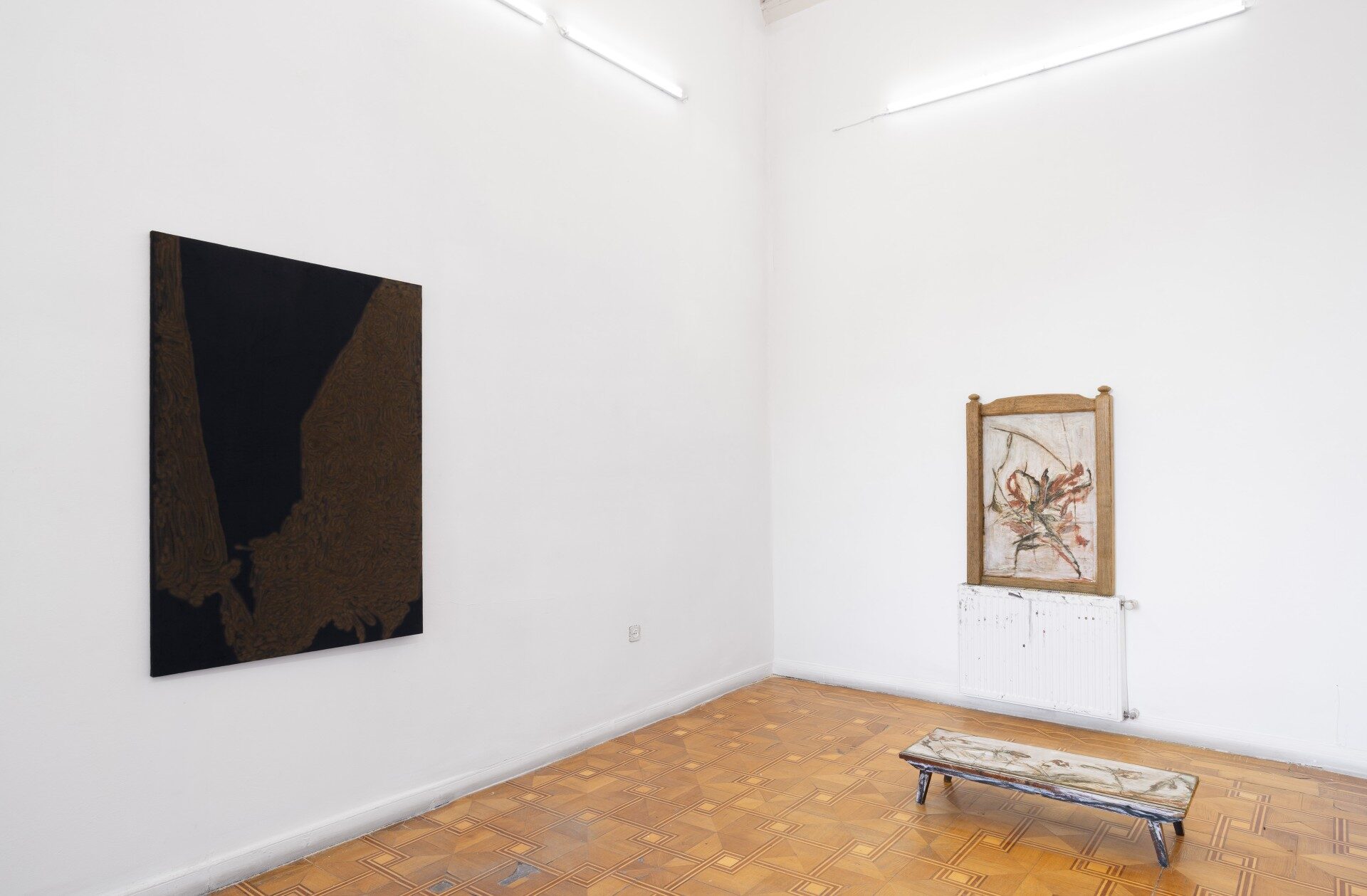 This approach takes on material form within the exhibition and unfolds across different media. The presented paintings are multi-layered, as if their surfaces bear traces accumulated in layers of time. Here, action gradually transforms…
