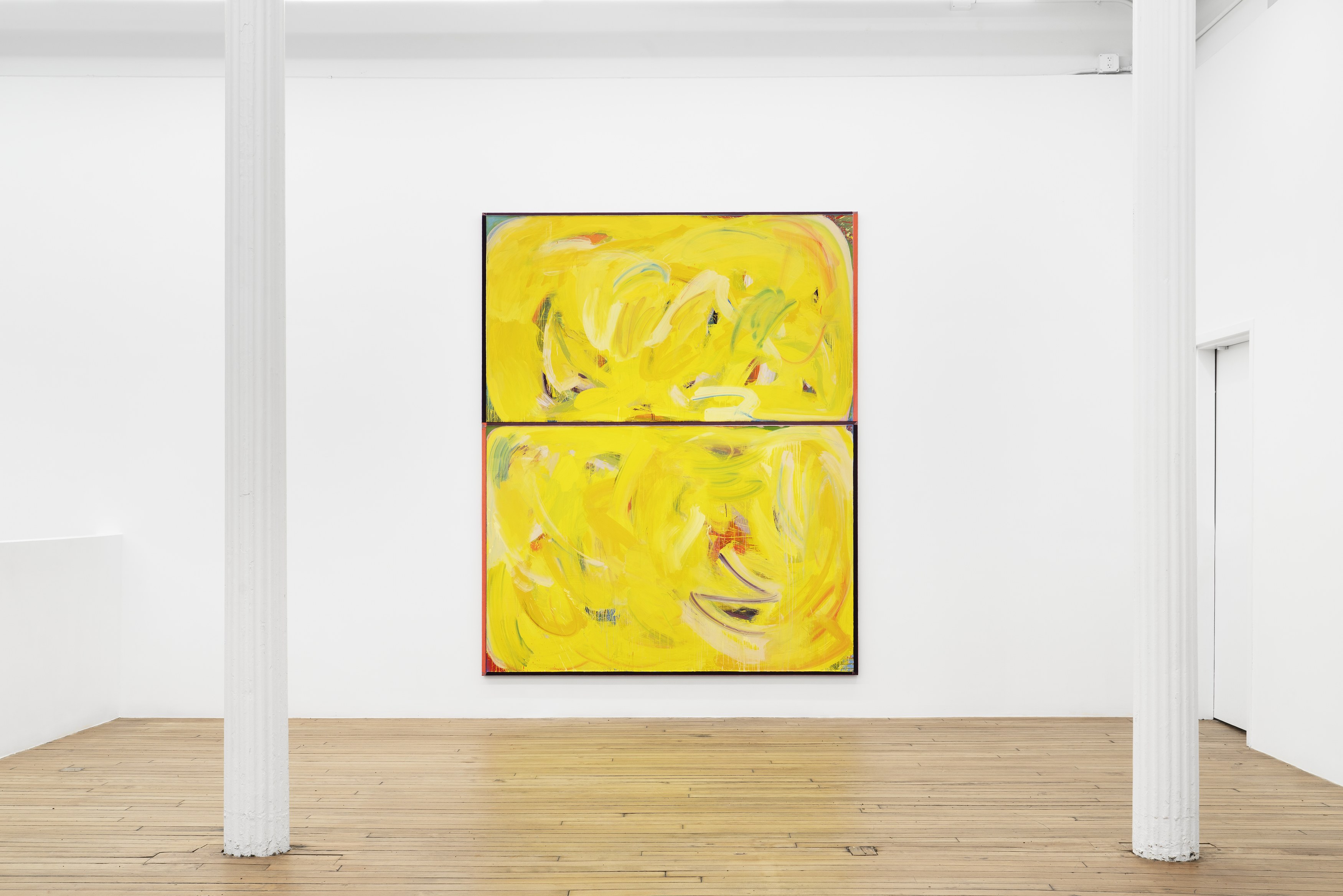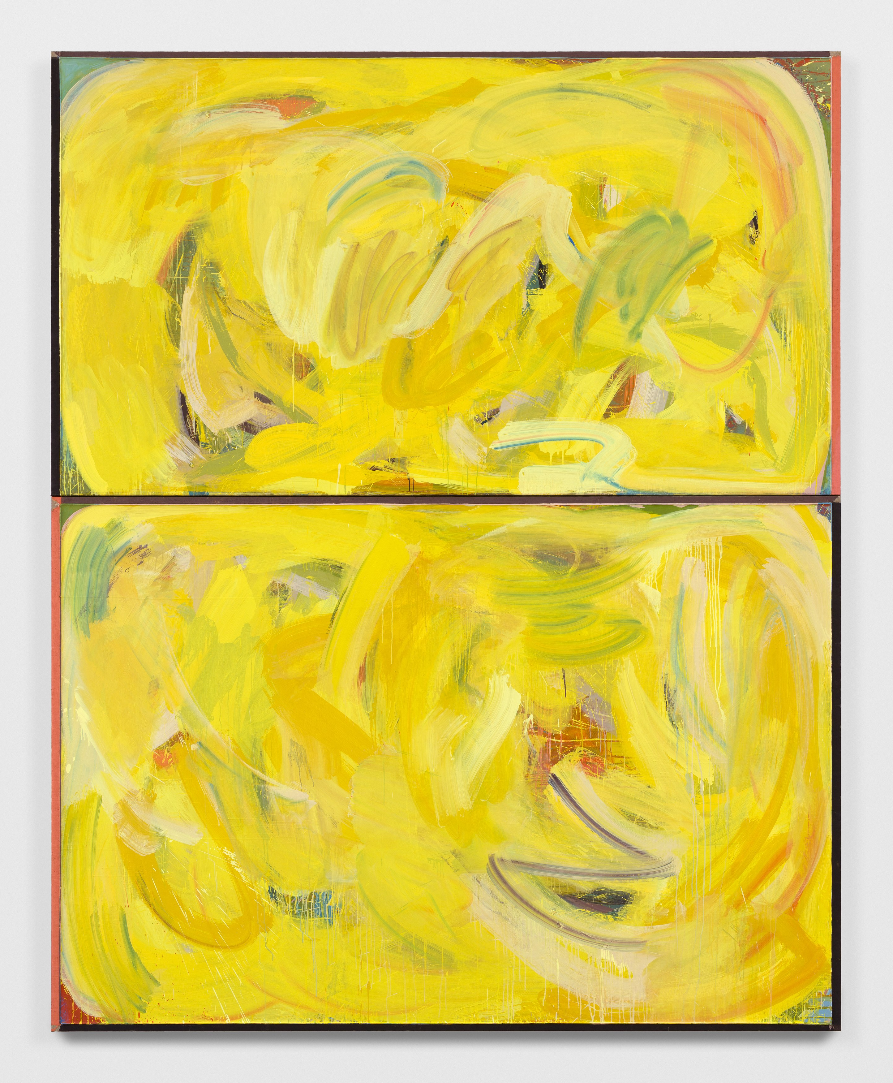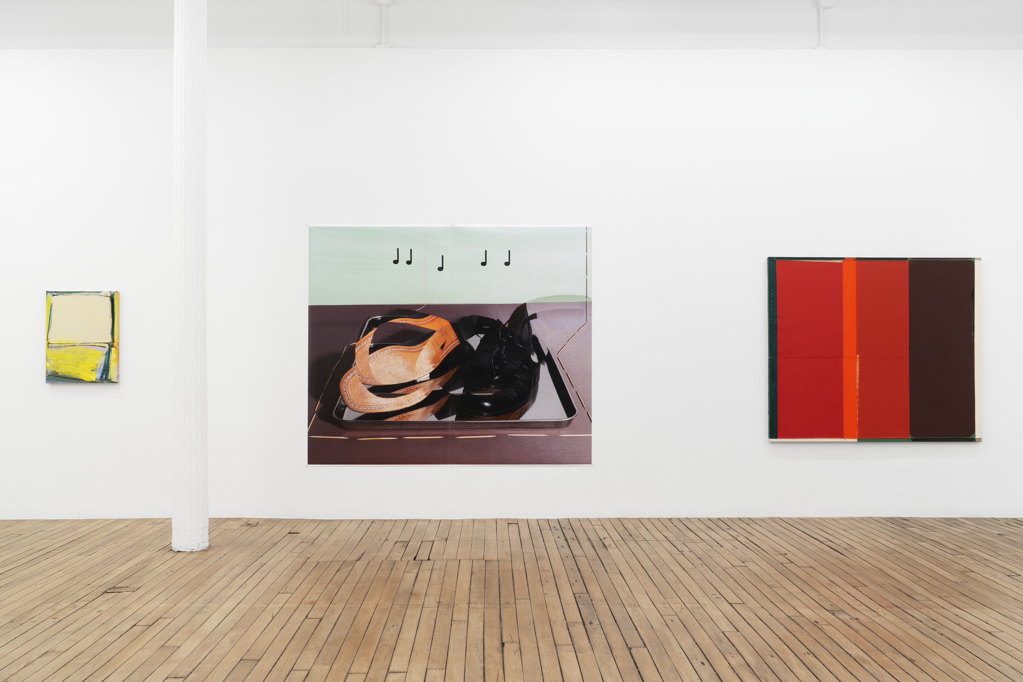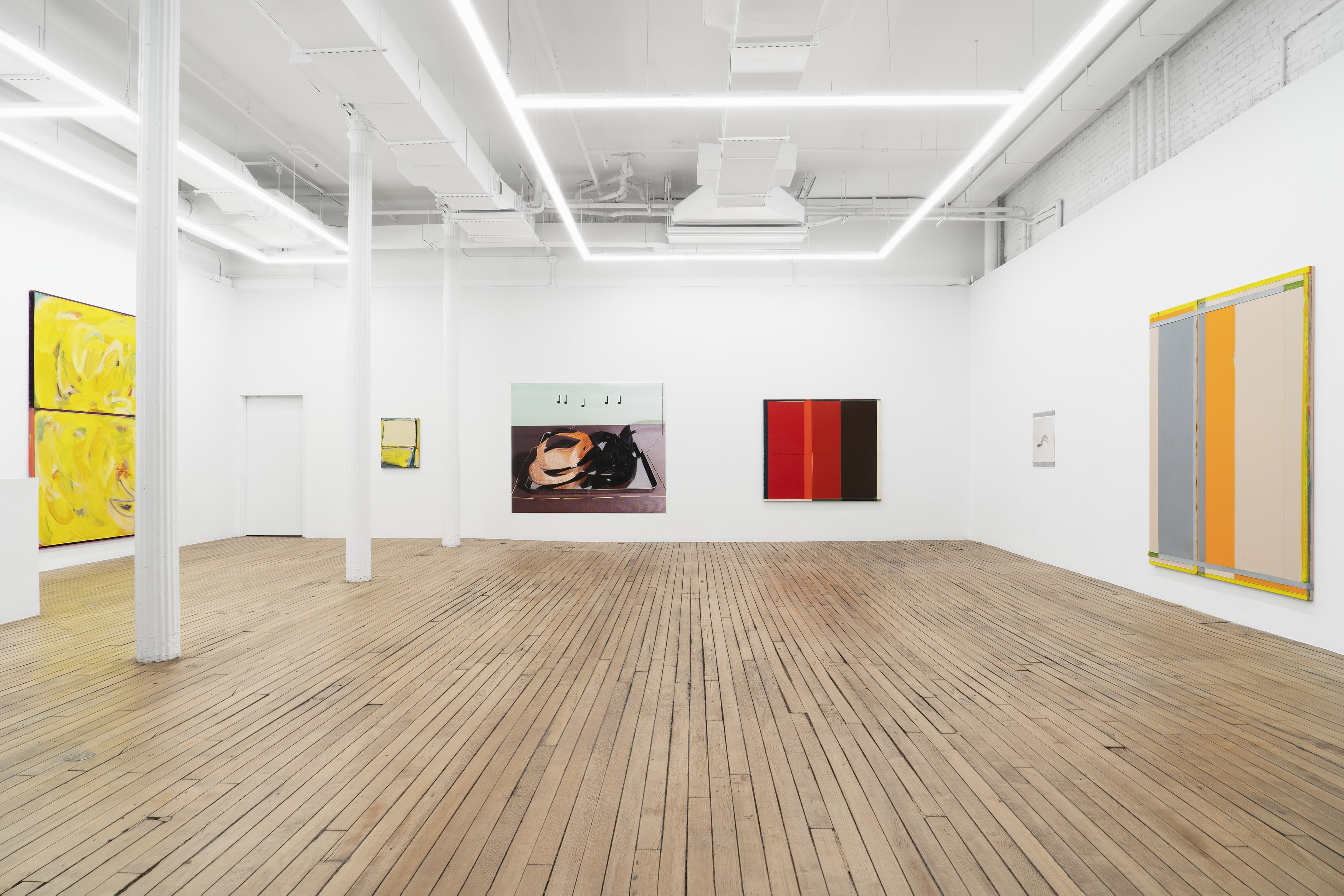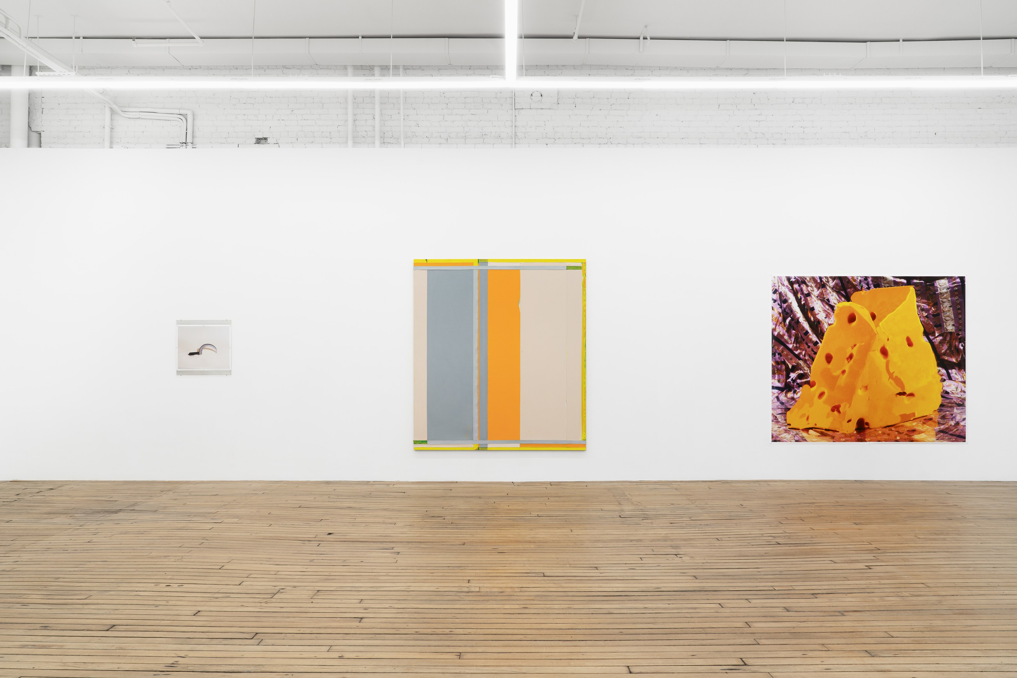 2. Consider the two-person show, distinct practices paired to extend each other and call attention to details otherwise set aside. At first glance, Lucas Blalock’s and Julia Rommel’s works are nothing alike. Then we look more closely at the painterly trails in a cartoonish wedge of cheddar that call across the gallery to turbulent fields of yellow. We think again.
