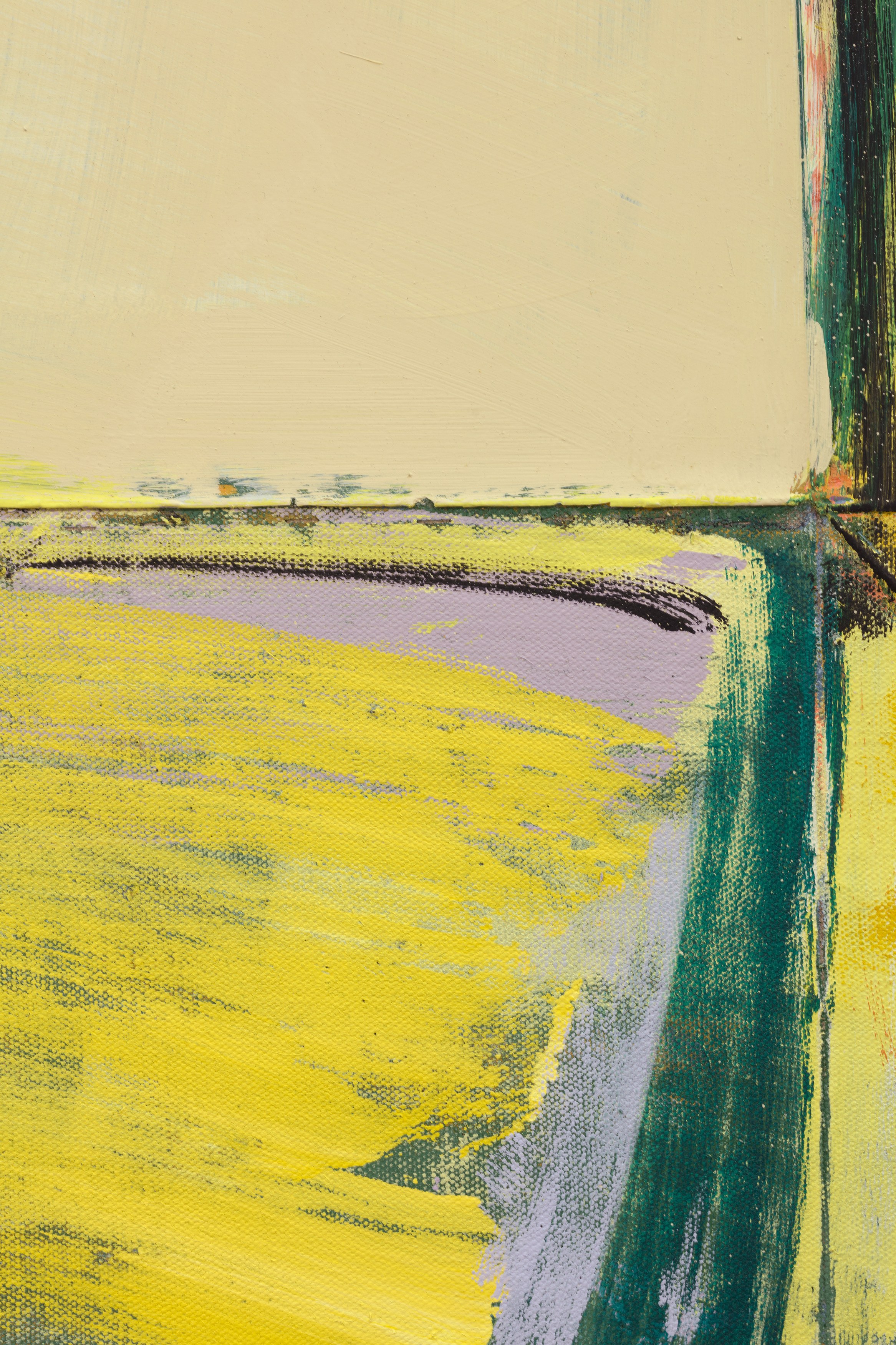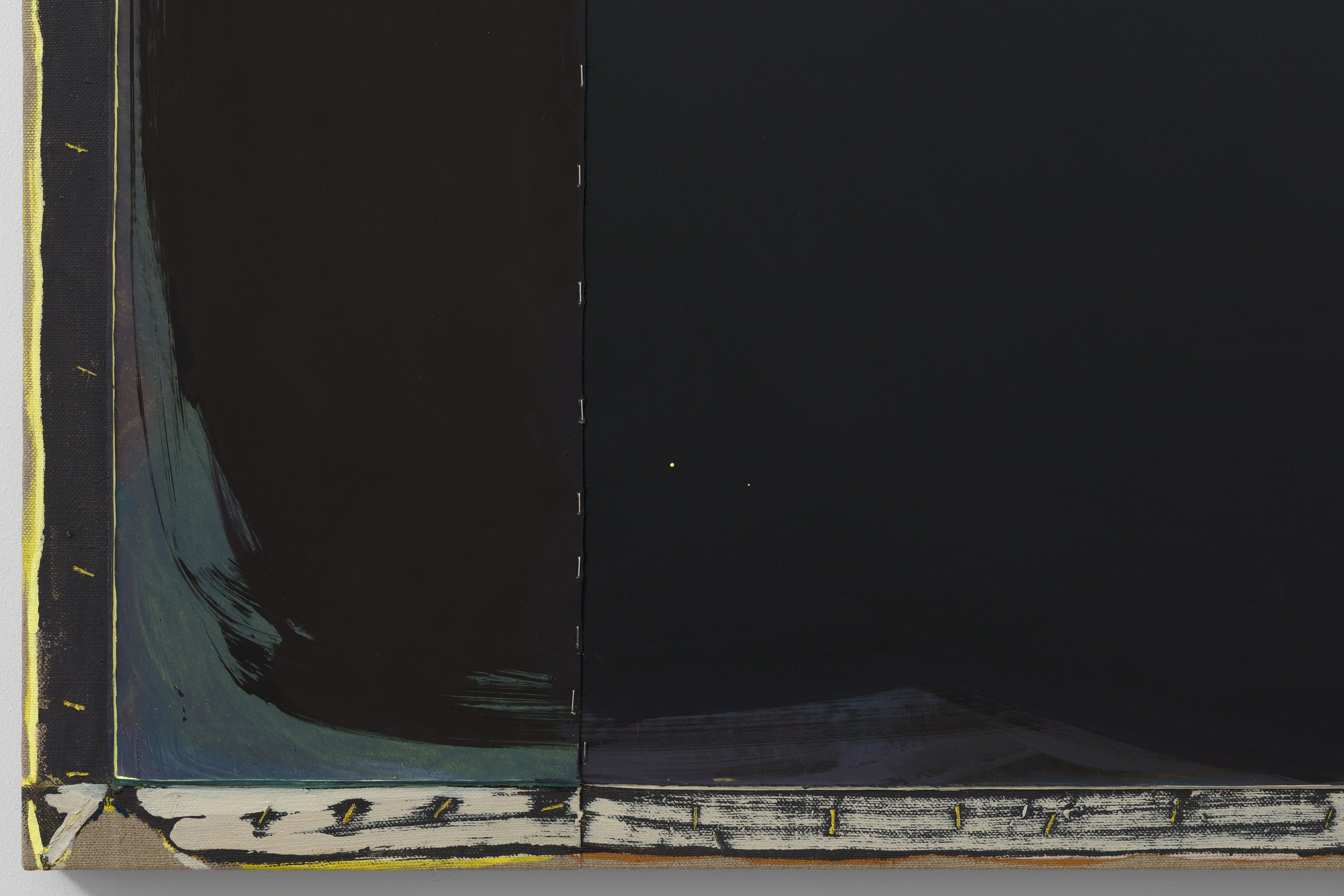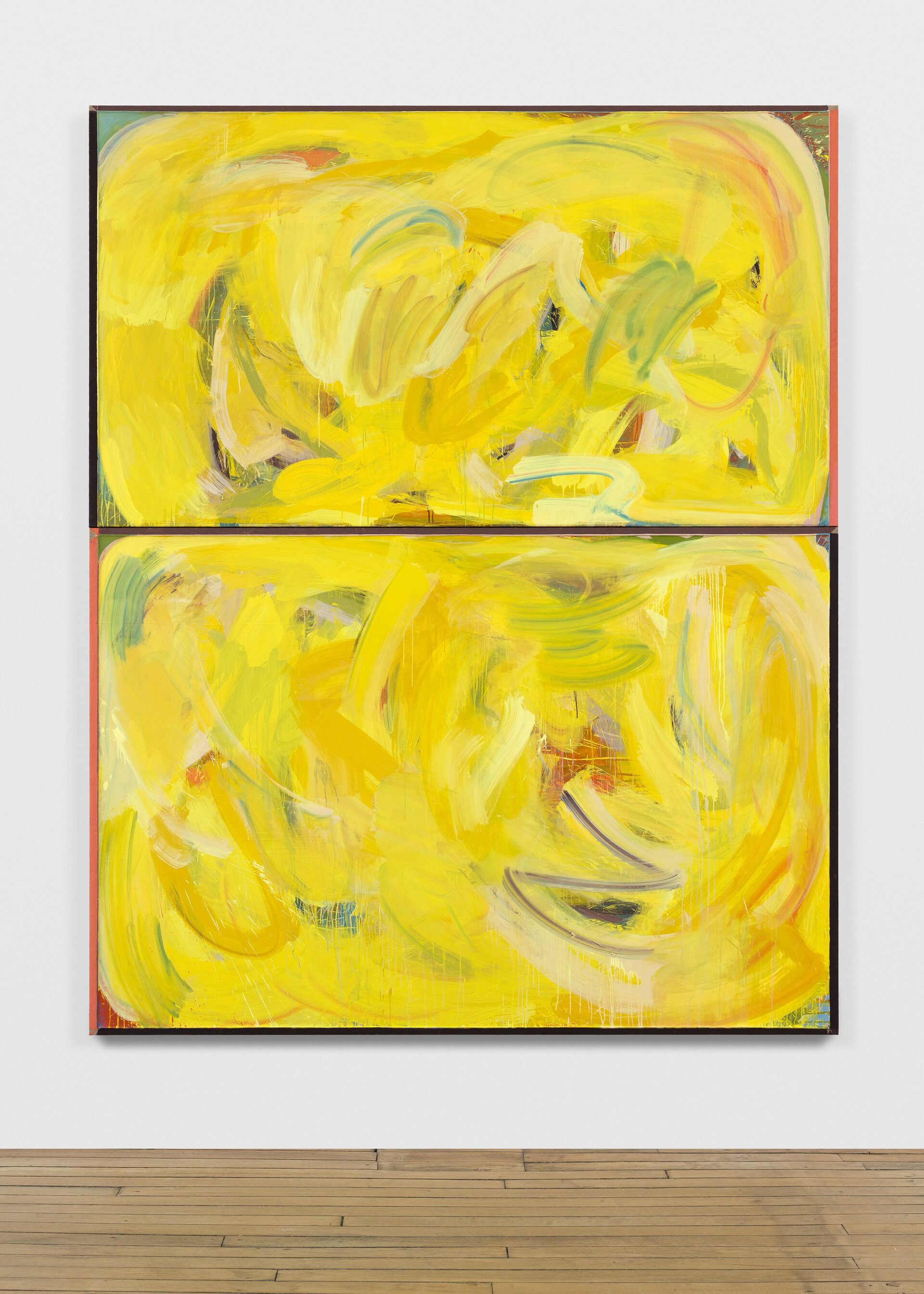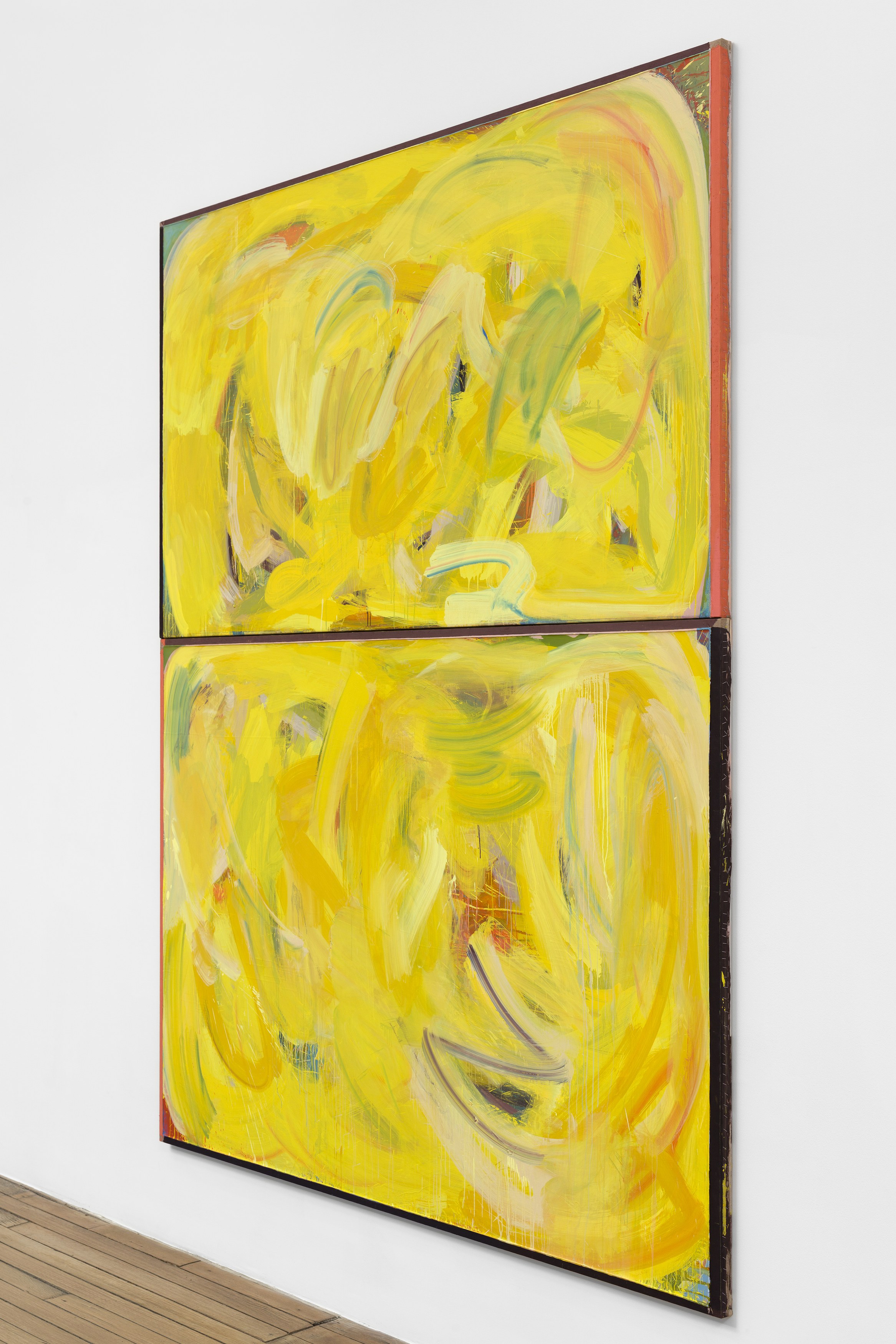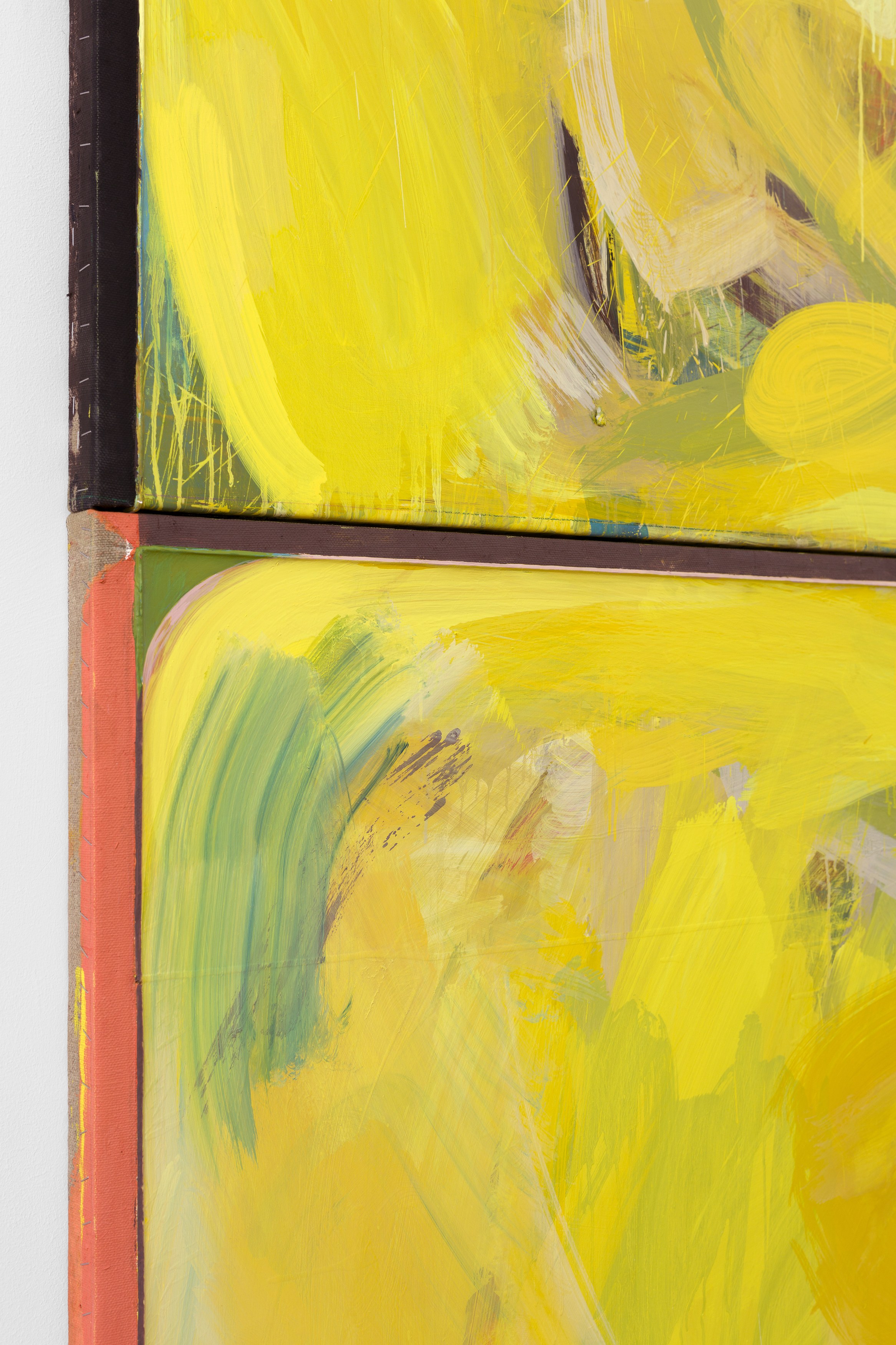 2. Consider the two-person show, distinct practices paired to extend each other and call attention to details otherwise set aside. At first glance, Lucas Blalock’s and Julia Rommel’s works are nothing alike. Then we look more closely at the painterly trails in a cartoonish wedge of cheddar that call across the gallery to turbulent fields of yellow. We think again.