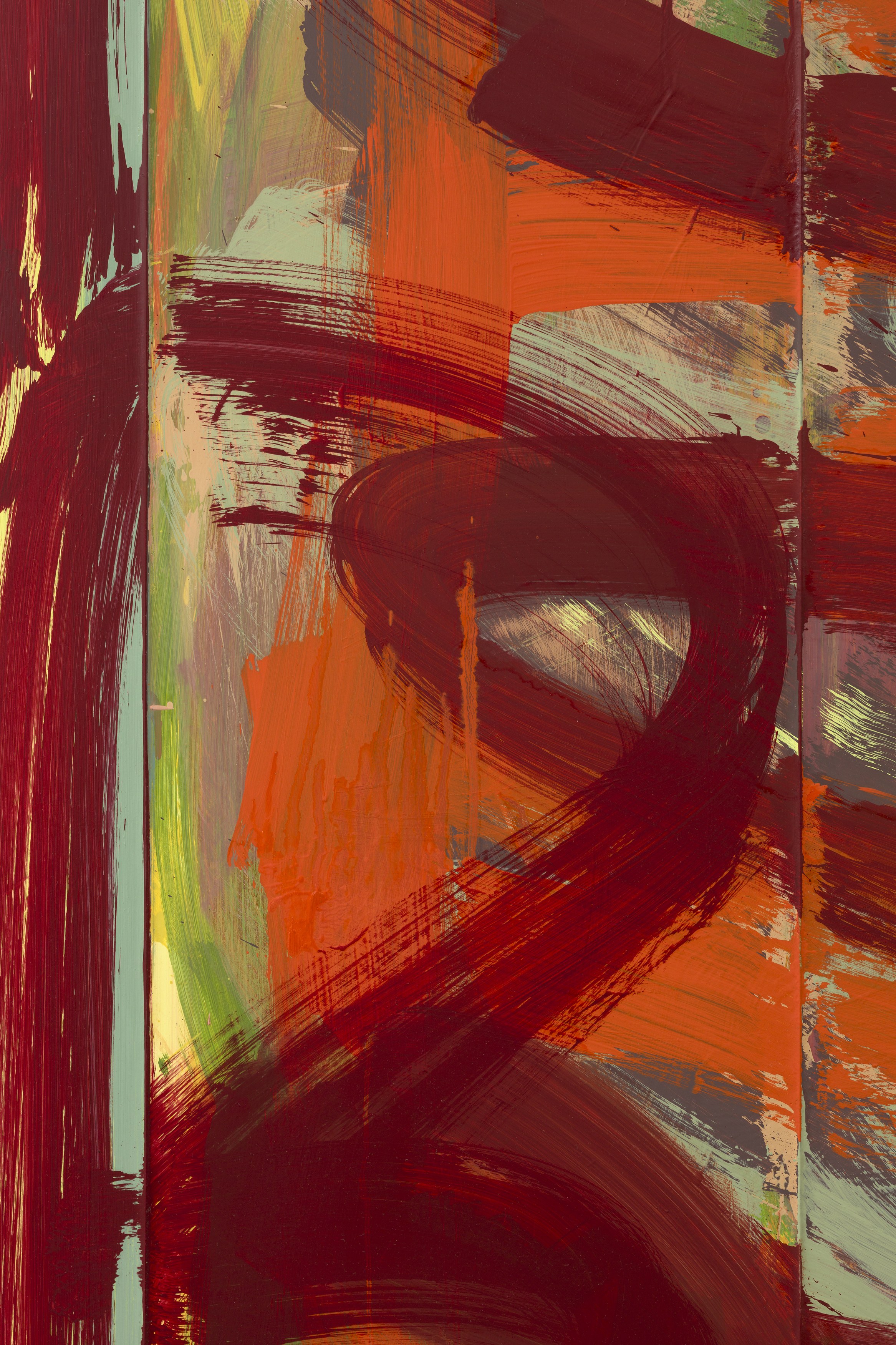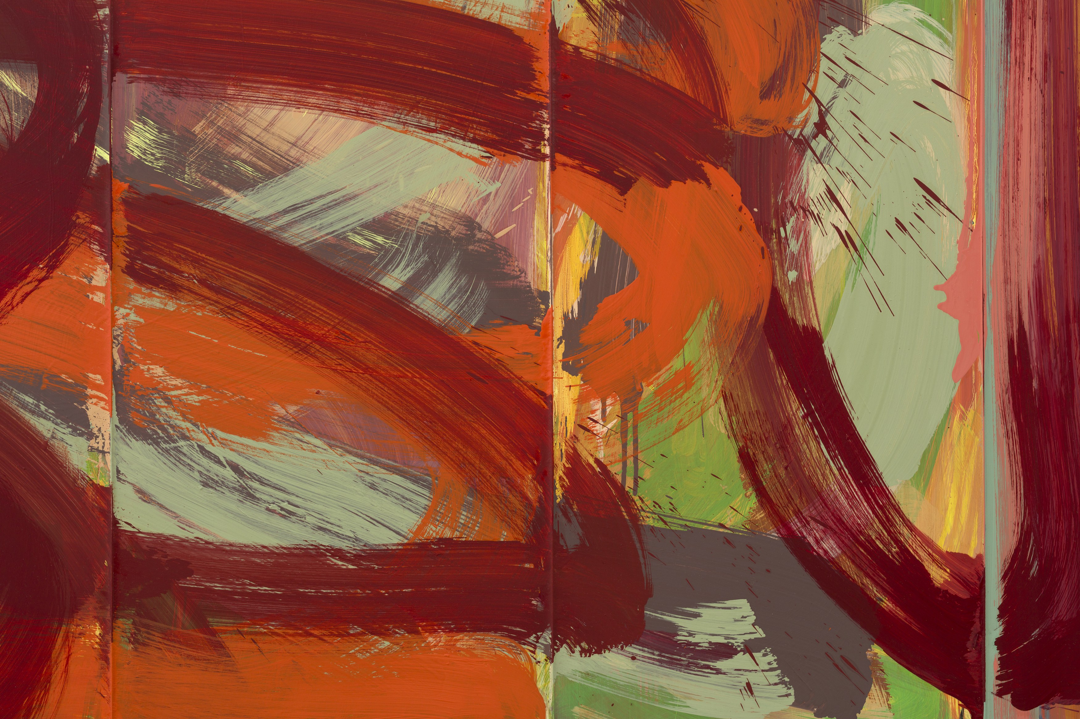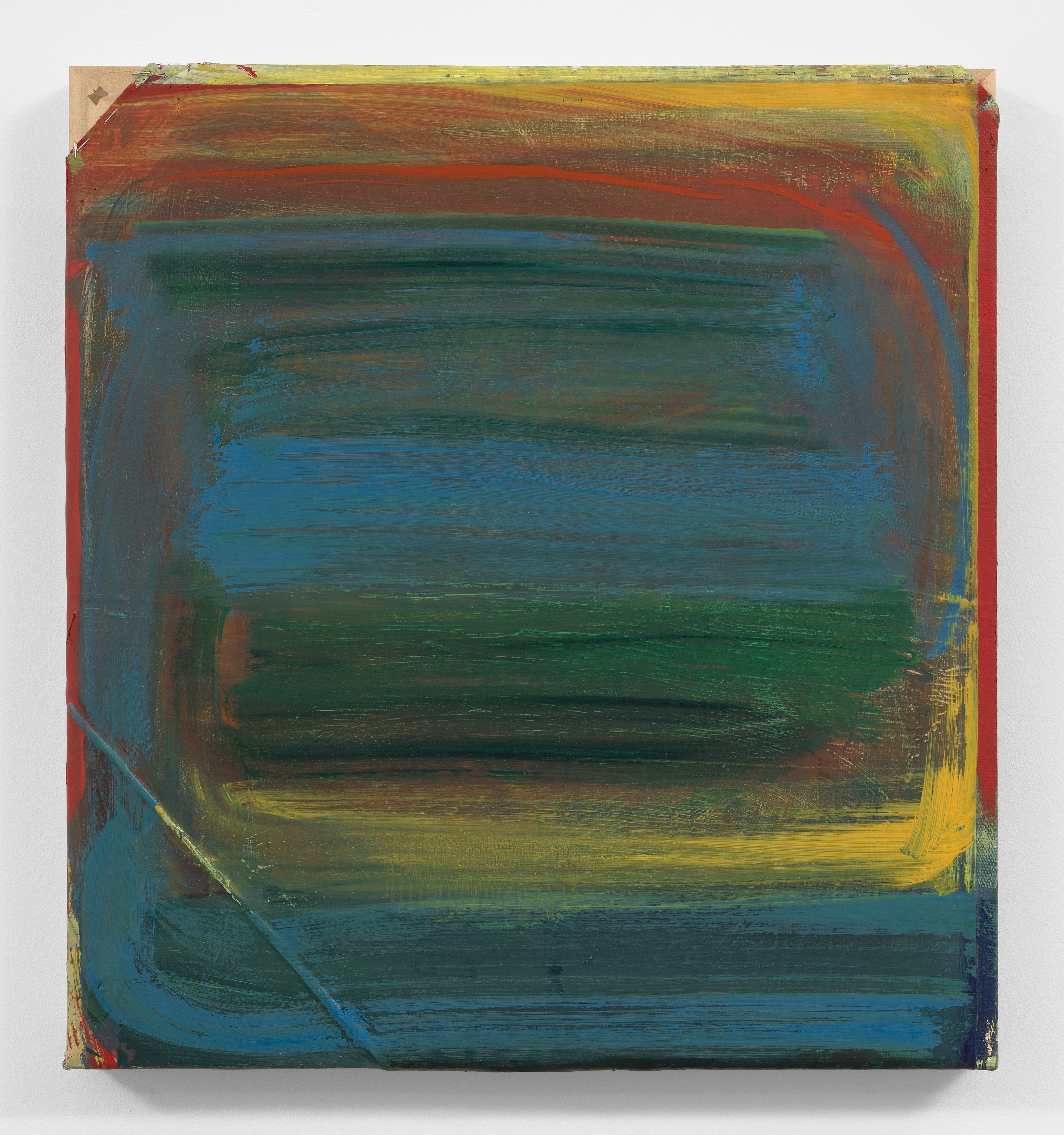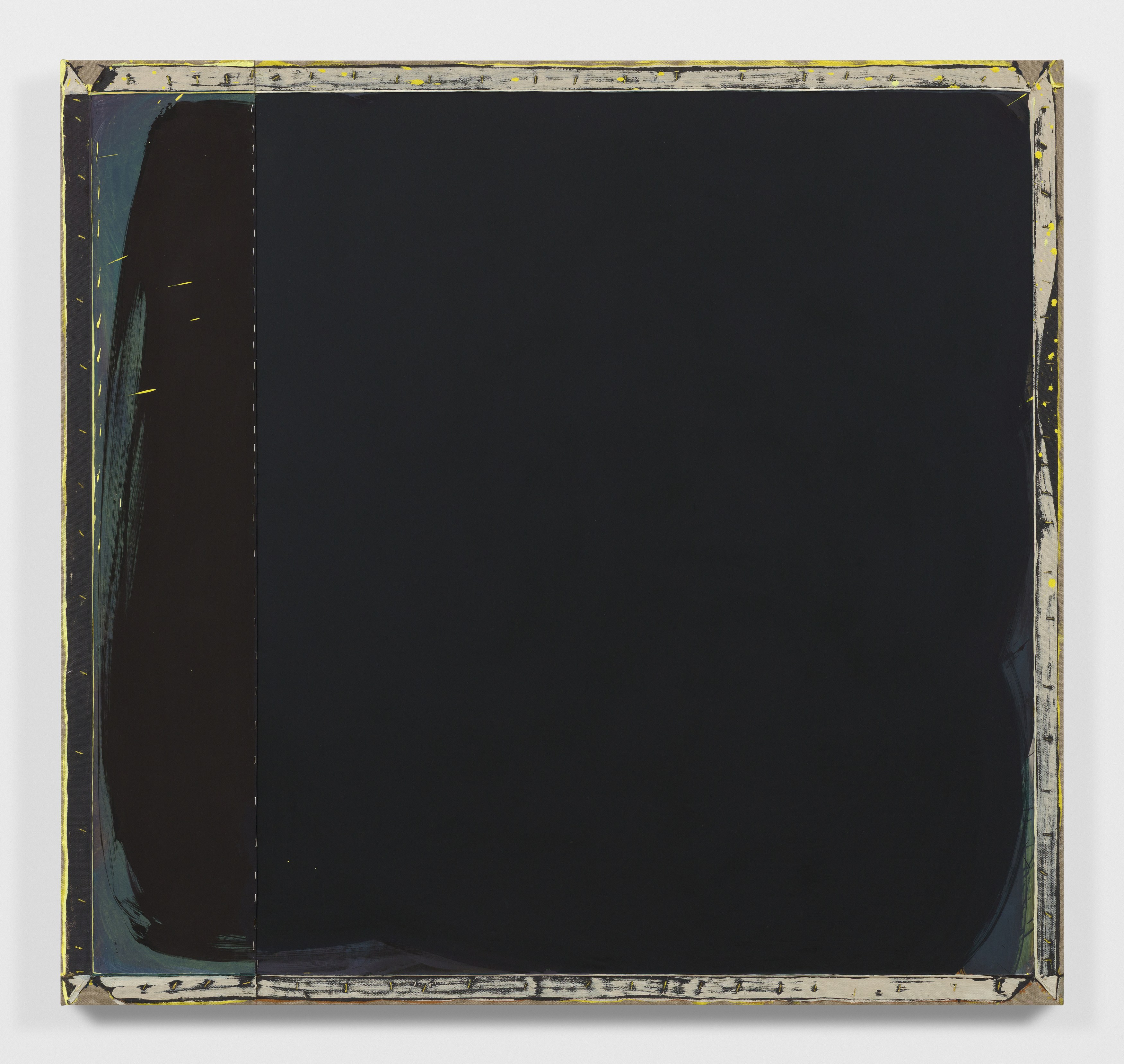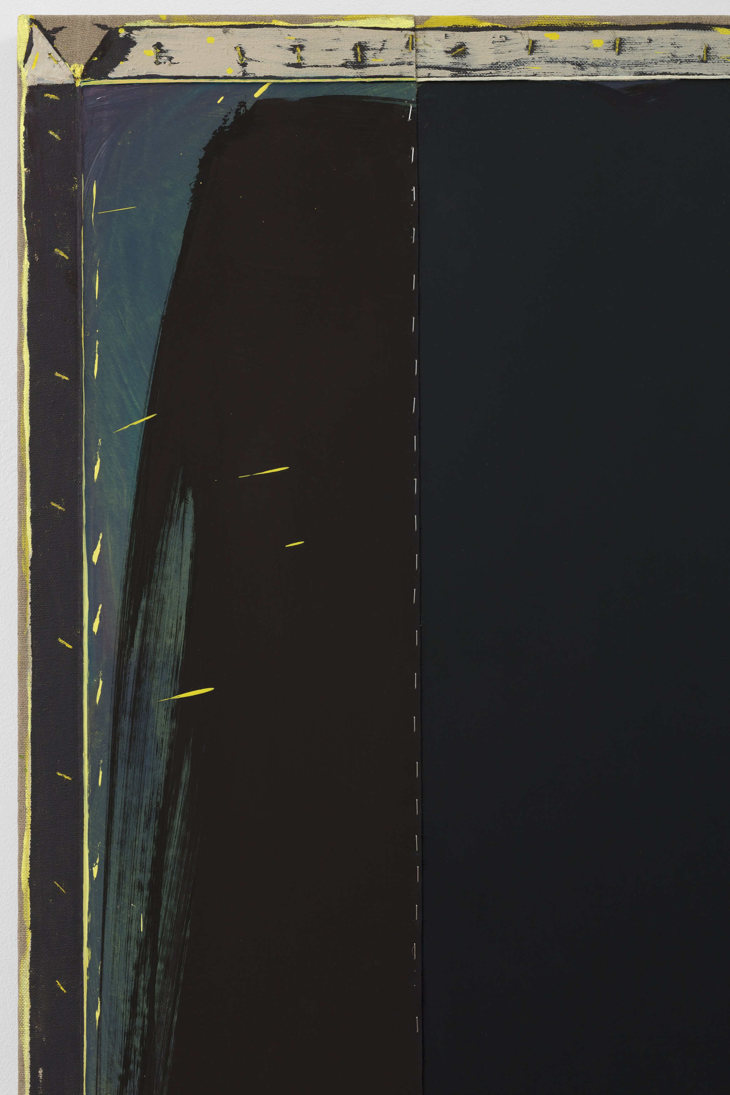 2. Consider the two-person show, distinct practices paired to extend each other and call attention to details otherwise set aside. At first glance, Lucas Blalock’s and Julia Rommel’s works are nothing alike. Then we look more closely at the painterly trails in a cartoonish wedge of cheddar that call across the gallery to turbulent fields of yellow. We think again.