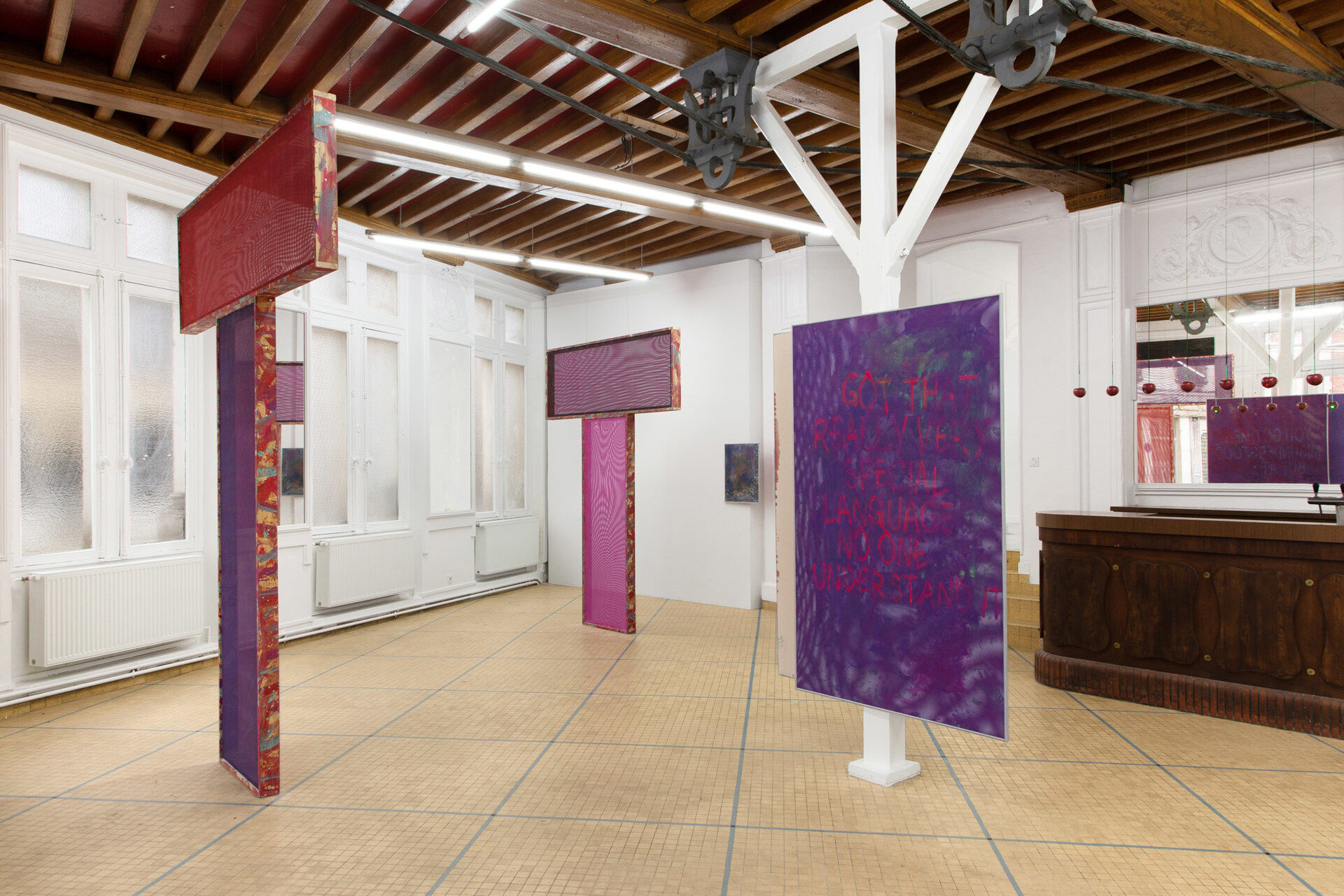 The subtle dialogue between the architecture and the works creates an immersive experience, inviting the viewer to navigate between explicit references and the implicit tensions in the gestures and materials used. The notions of transience, transgression, and transfer are omnipresent, exploring social and psychological, physical, and emotional phenomena in a constant interplay between materiality and immateriality.