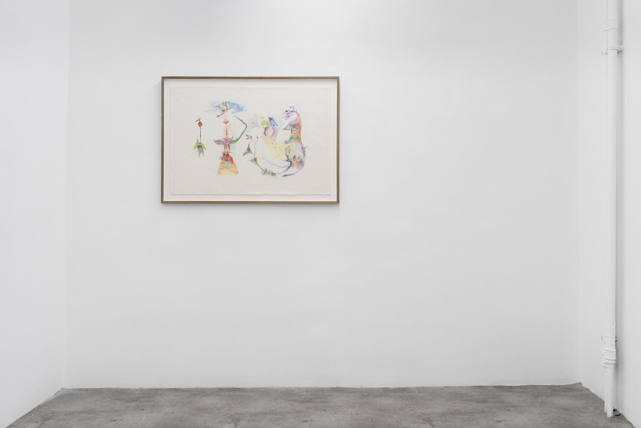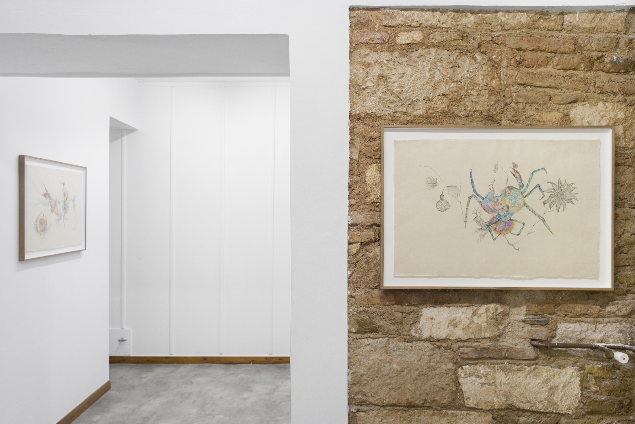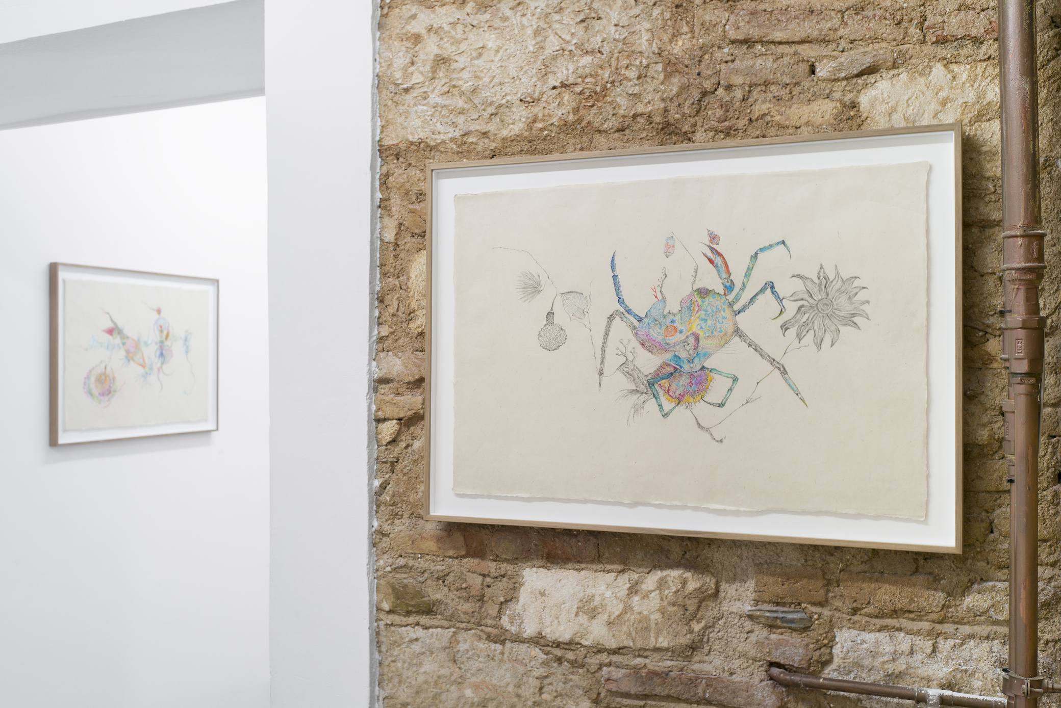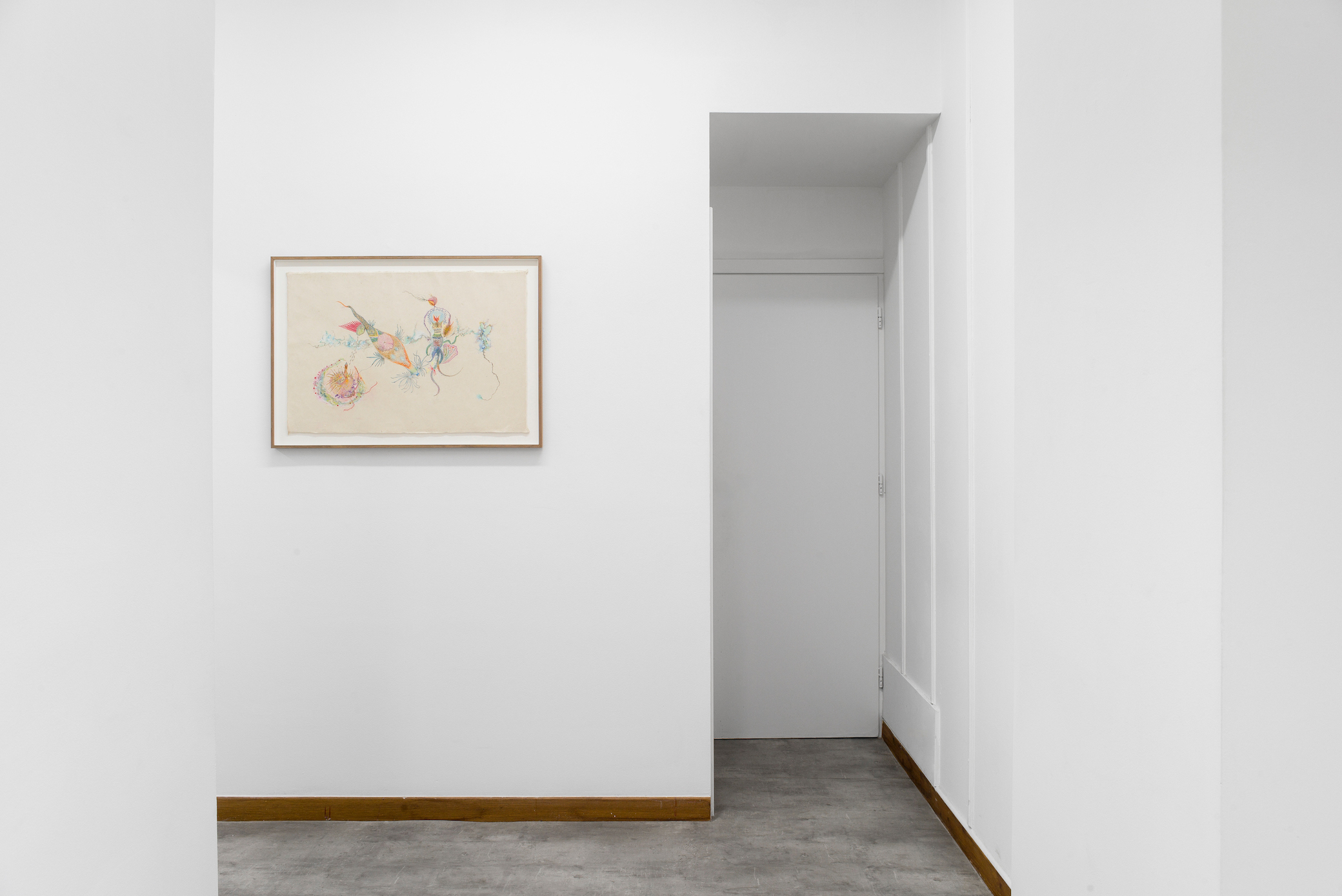 The solo show entitled Belly of the Fish by Valentina Bartolini conceives the belly as an enclosed, transformative space. Drawing inspiration from proto-surrealist practices, Bartolini redirects attention from the external world to the unconscious, allowing shapes to surface through intuition, introspection and attentive observation. The title alludes to biblical imagery of the inner world and transformation, such as the belly of the whale in the story of Jonah.