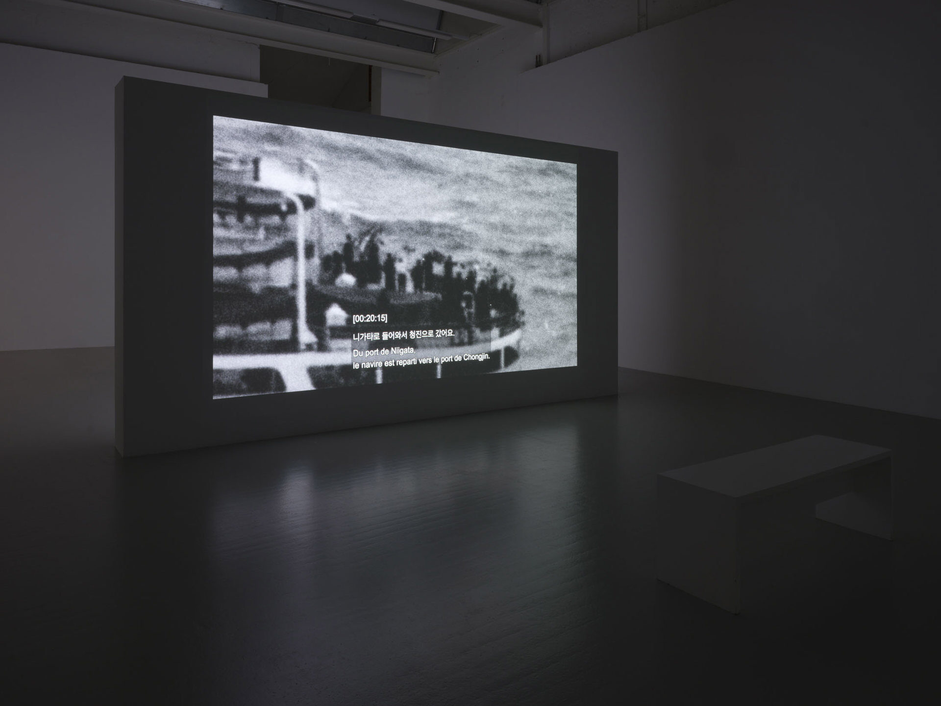 Ripple is a solo exhibition by Korean artist Hwayeon Nam, presenting four video works that explore specific objects and subjects from Korean history. Nam traces the circulation of information and knowledge through the body, music, dance, and digital data, visualising it through expanded “choreographic” methods. This immaterial mapping process reveals the ripple caused by fissures in history as these fragments traverse through time and space.