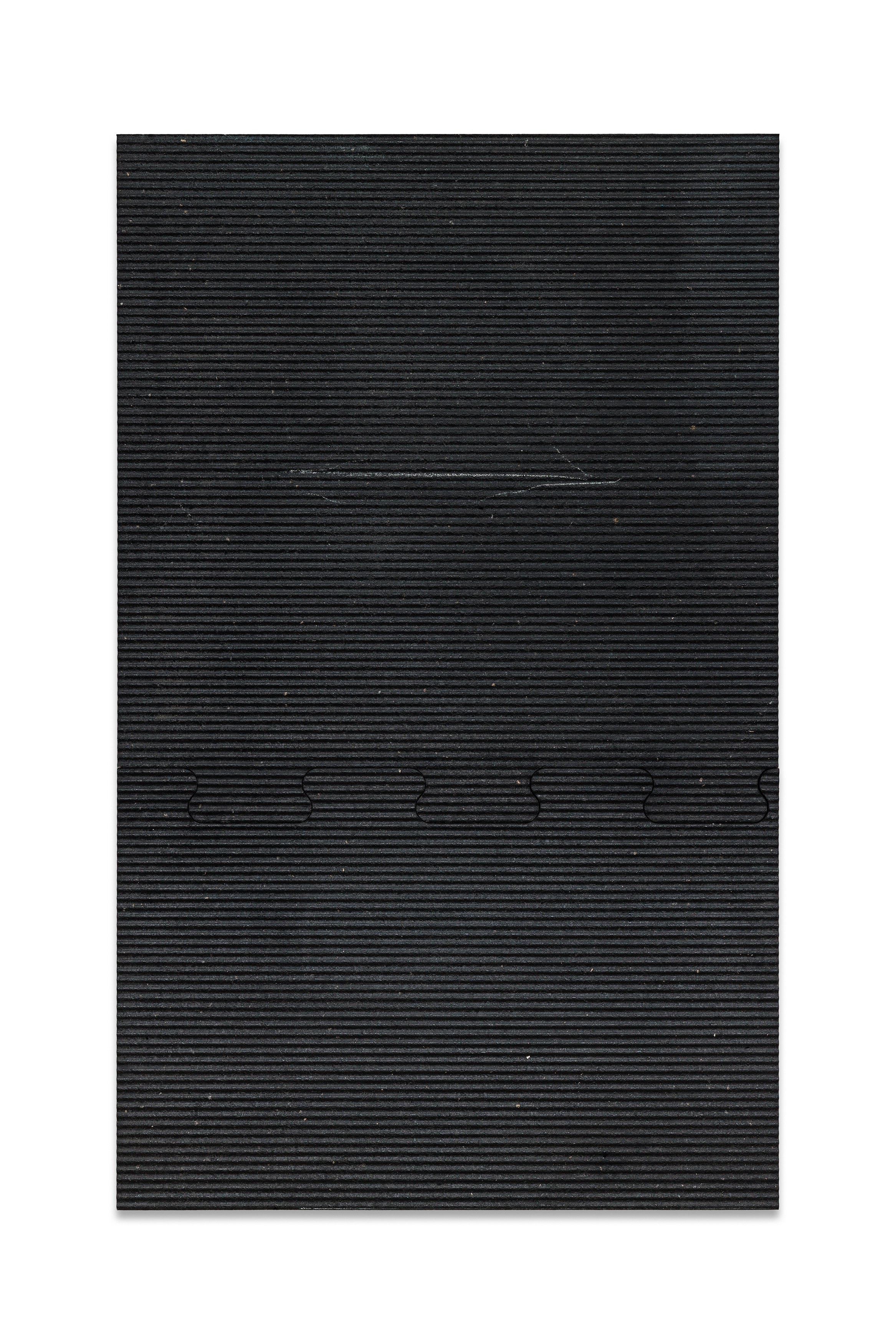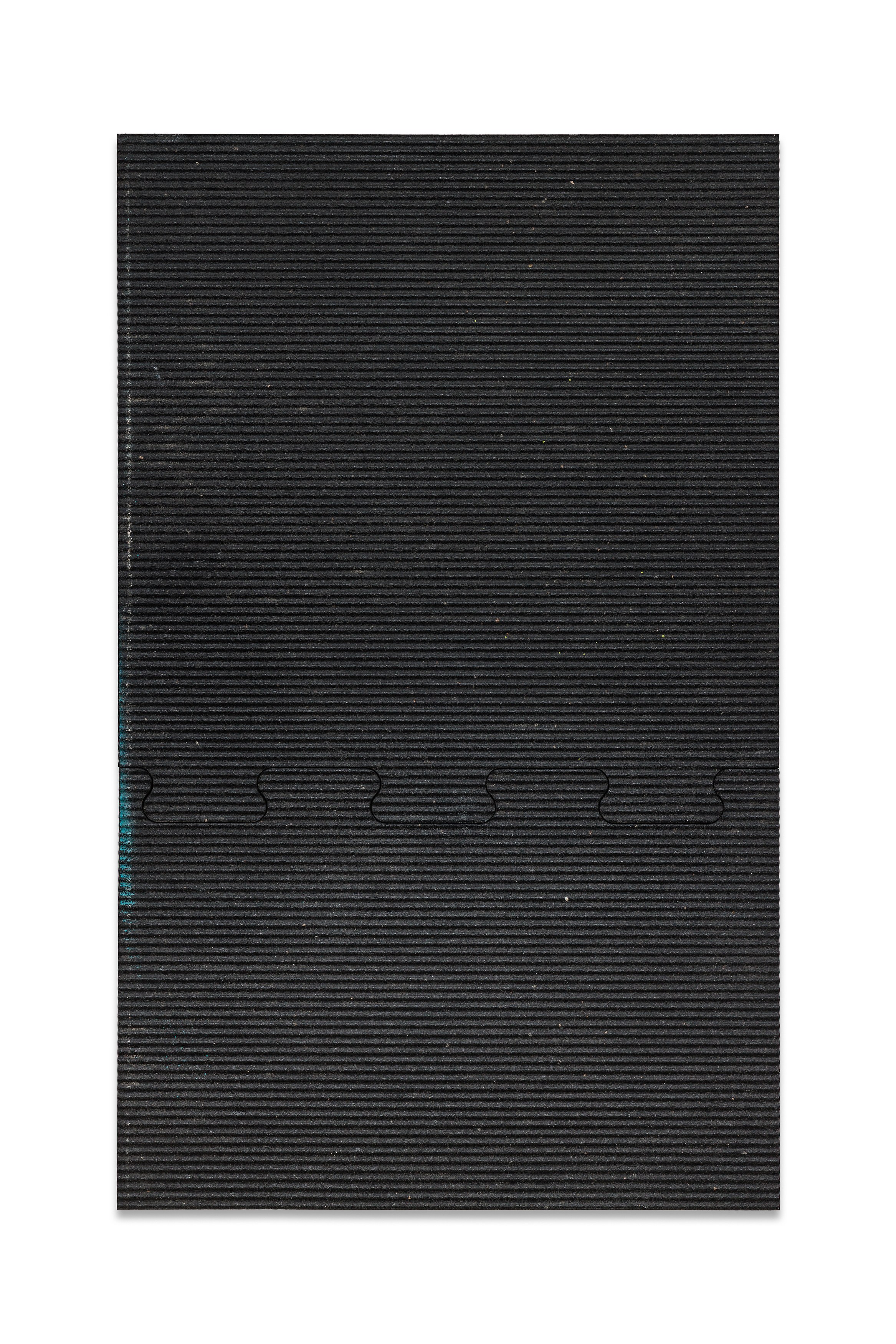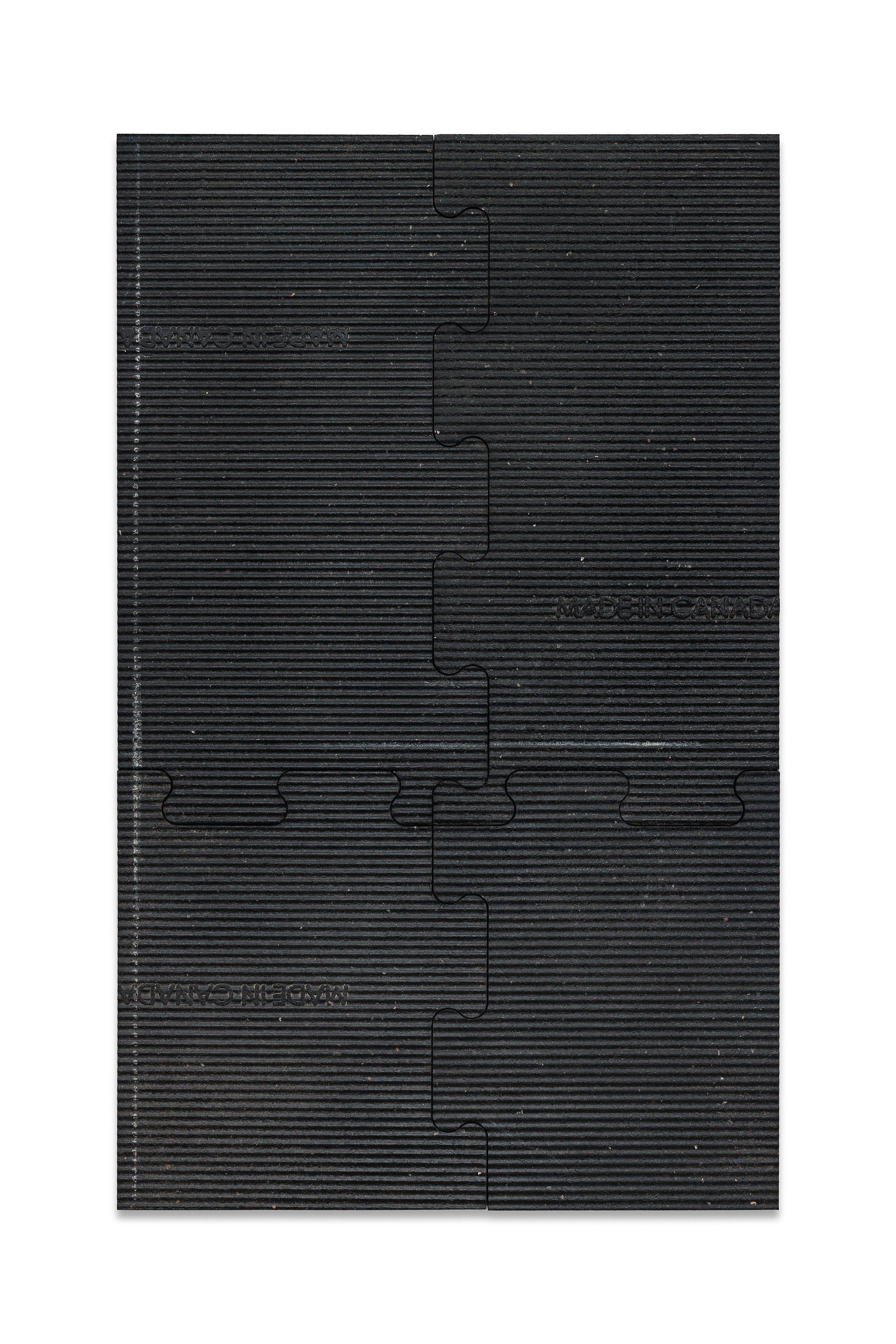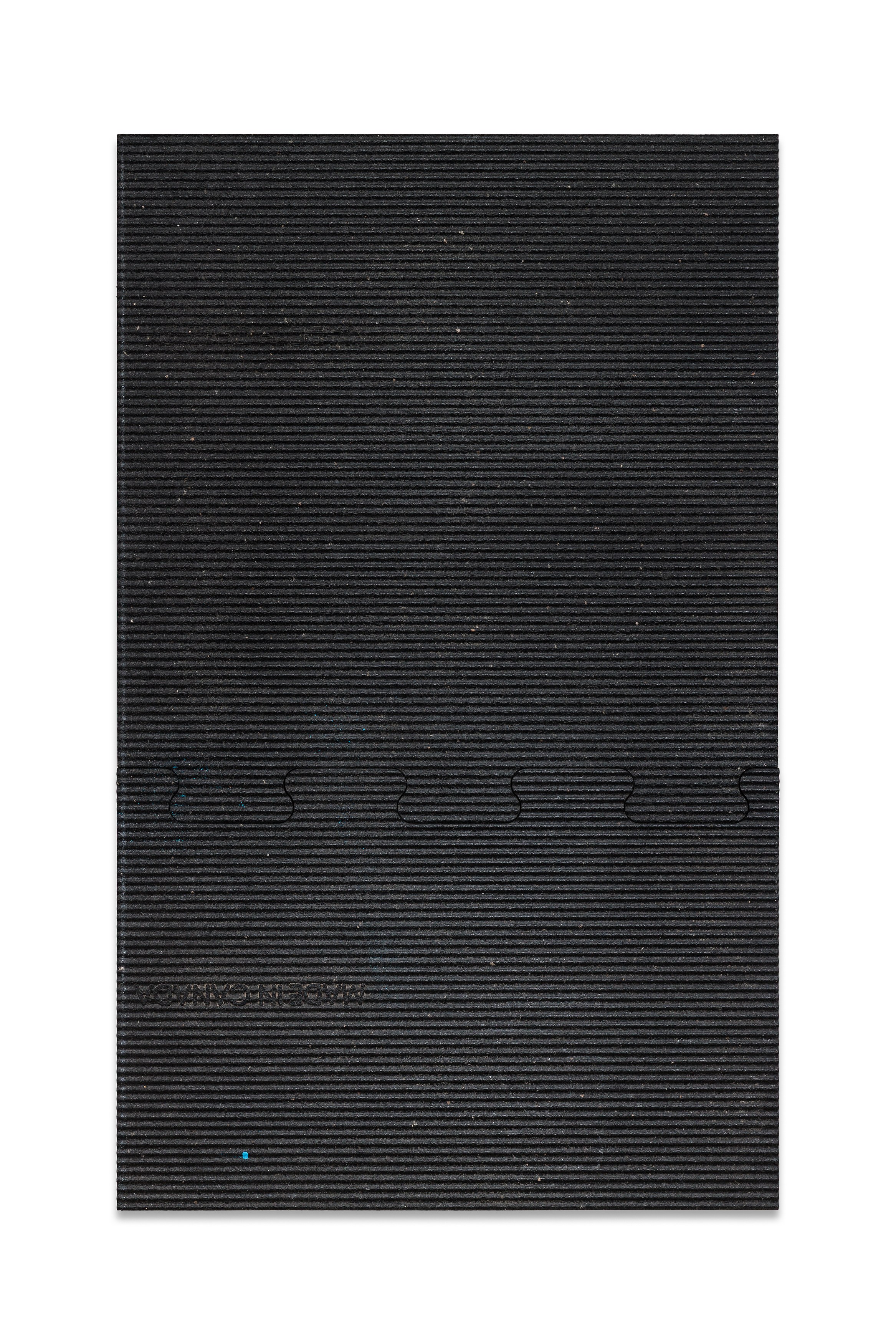 Matte / geschnitten, 2023, recycled rubber, spray paint, tire marker. 19 pieces. Made from Matte, 2022, recycled rubber, 2650 mm x 3760 mm x 19 mm.