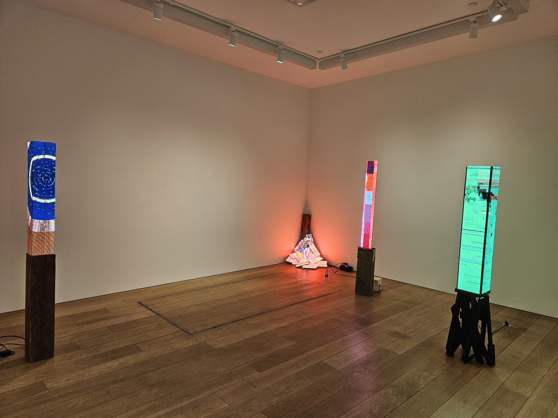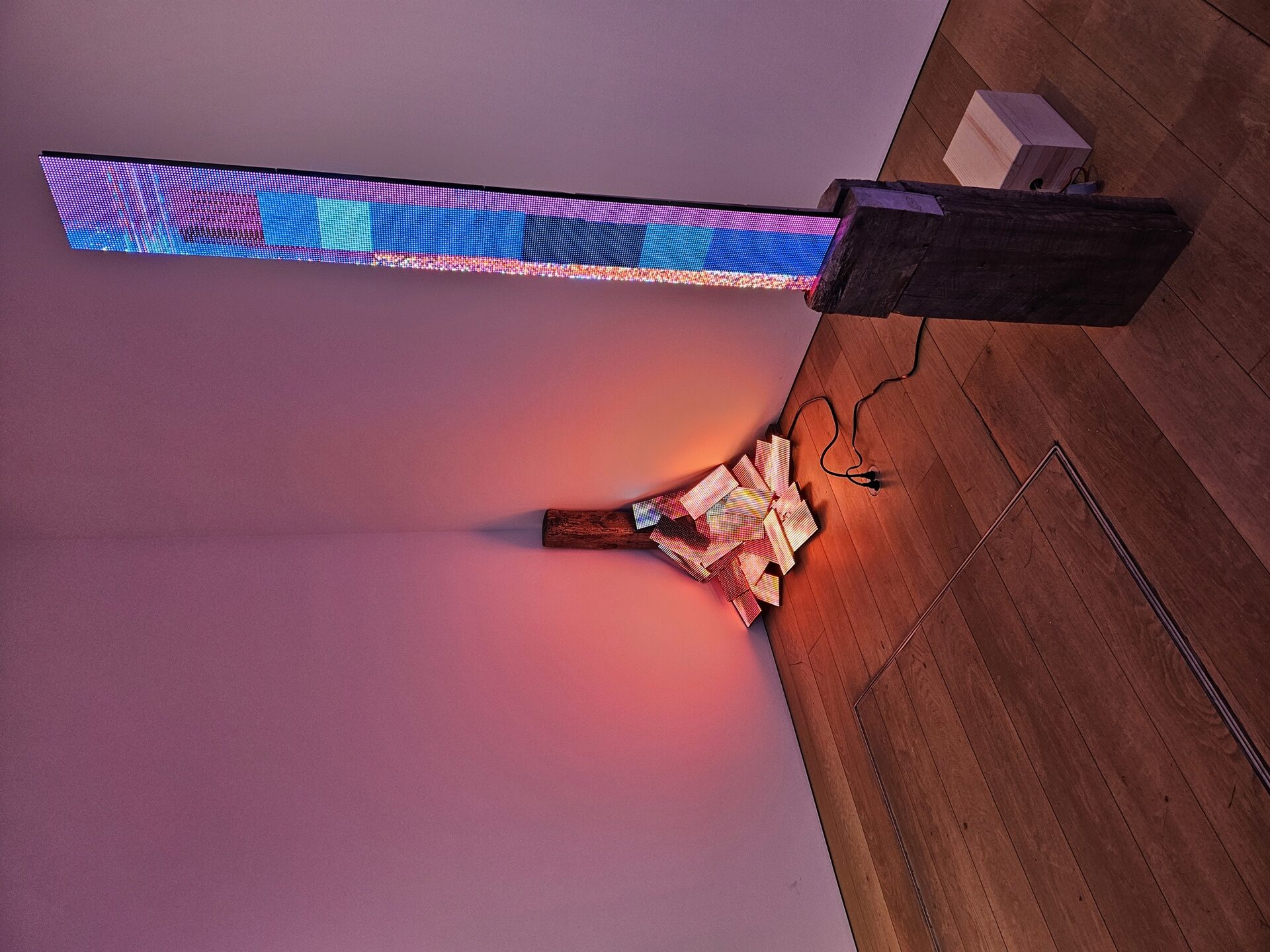 Obsessed with the inane, often broken, blinky world of bodega signs but uninterested in the “bling of the thing,” he rejected using LEDs as screens, instead breaking them up and re-forming them as everyday objects: quilts, fires, chimneys, and towers. Like Pinocchio’s creator, Geppetto, Murphy is gifted with the ability to bring his machines a voice, a life, a real life. Despite their digital-ness, these objects come with their own secret entrance into our emotional lives, simulacra written onto our very amygdala. When they speak,…