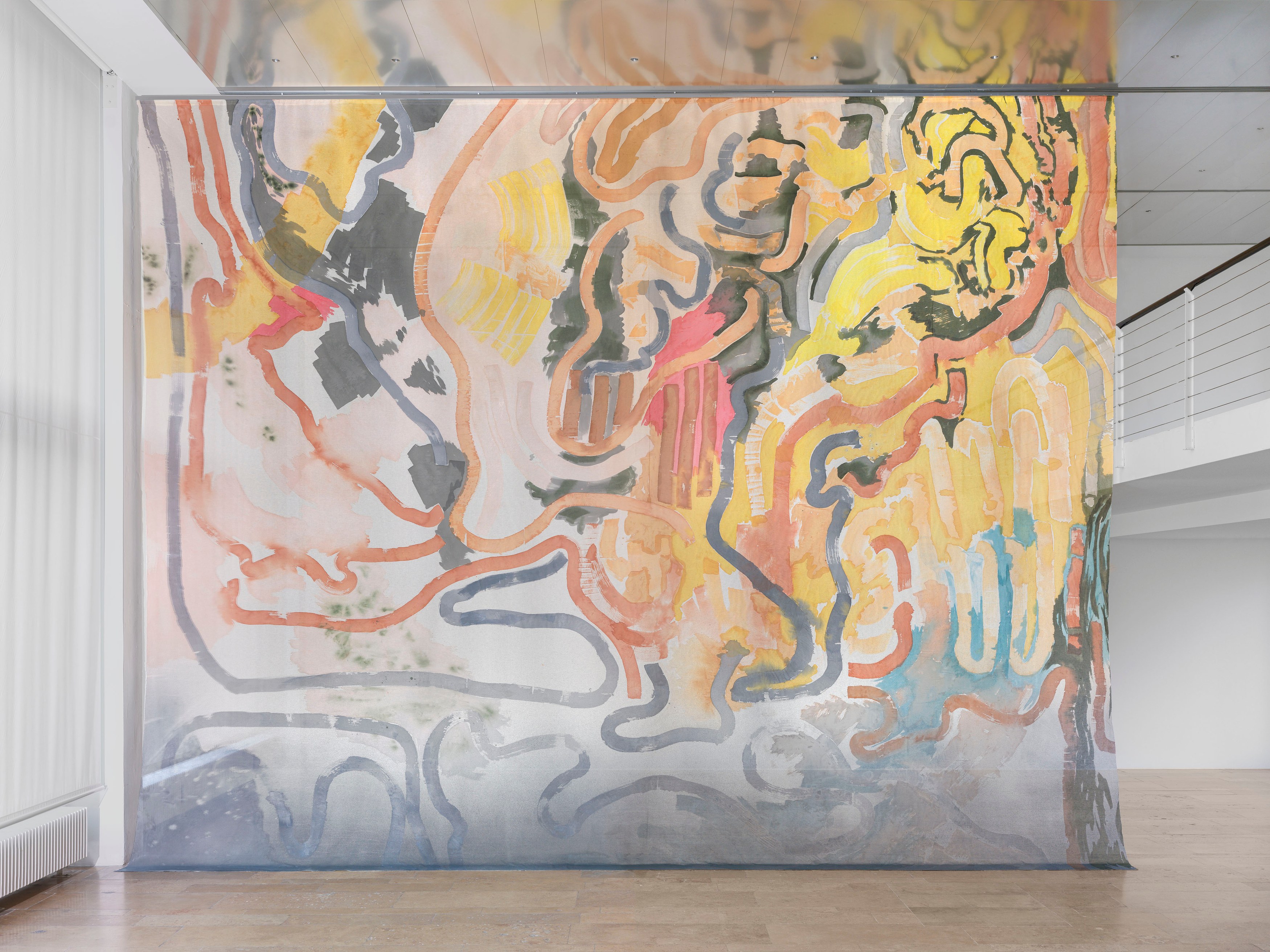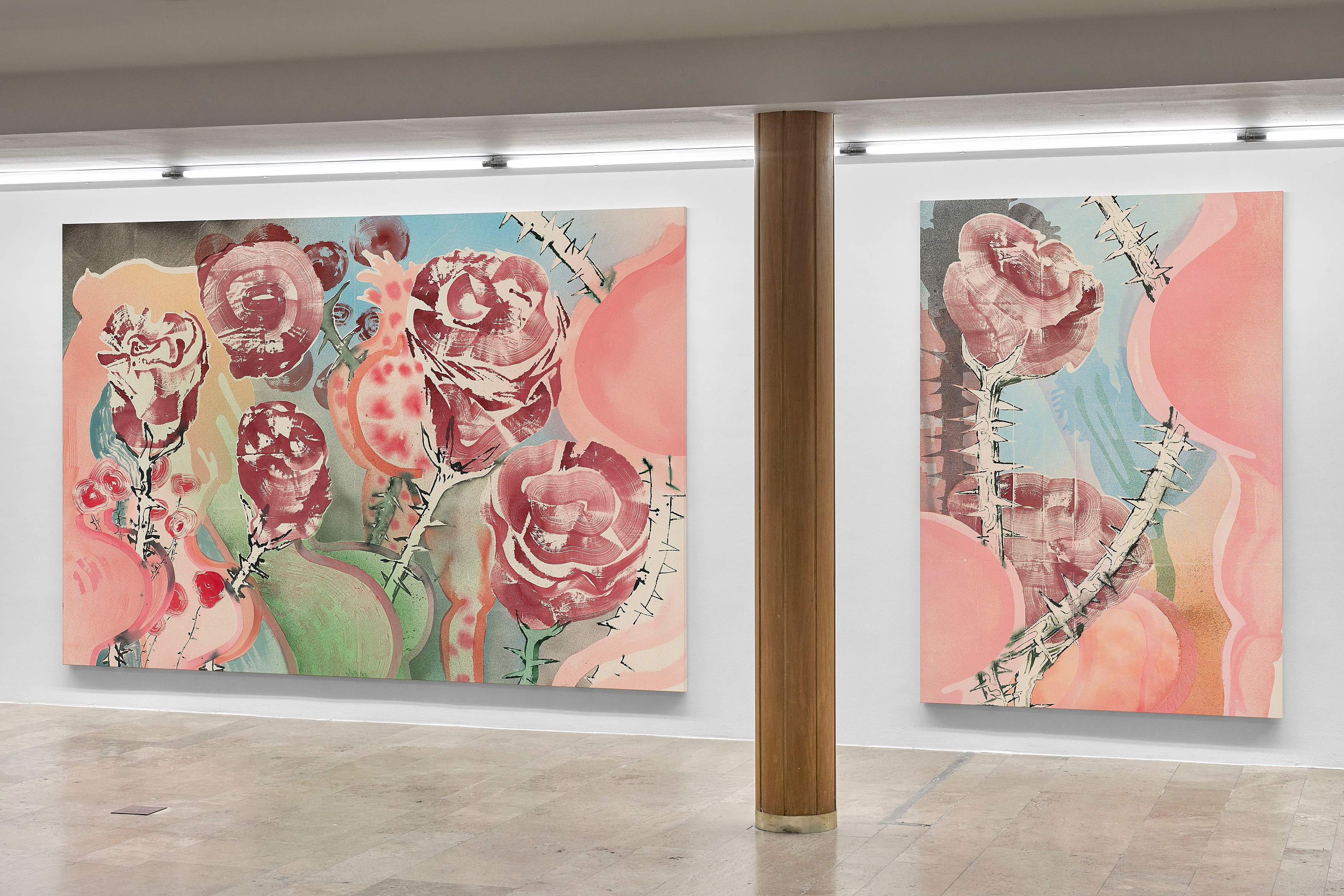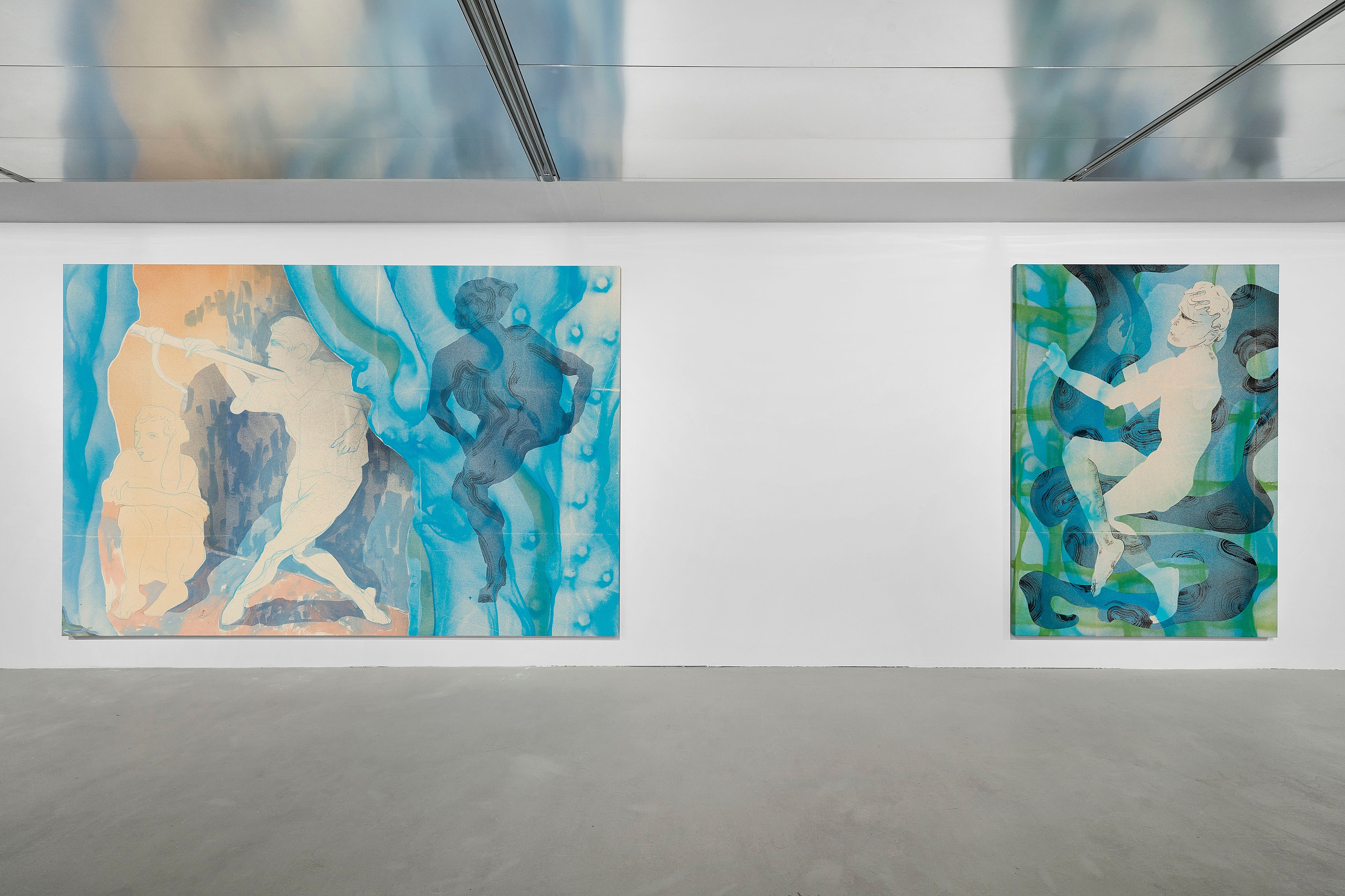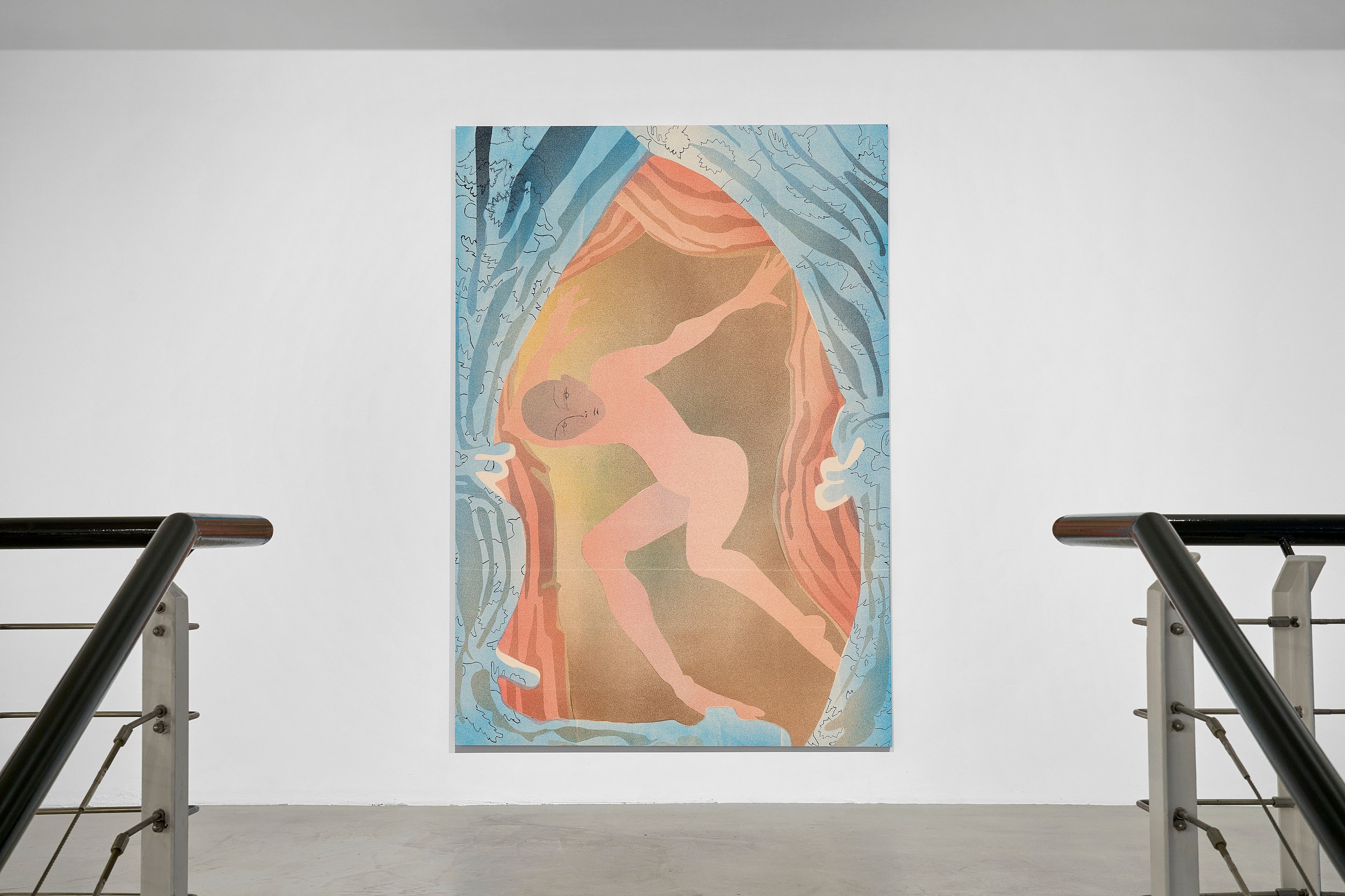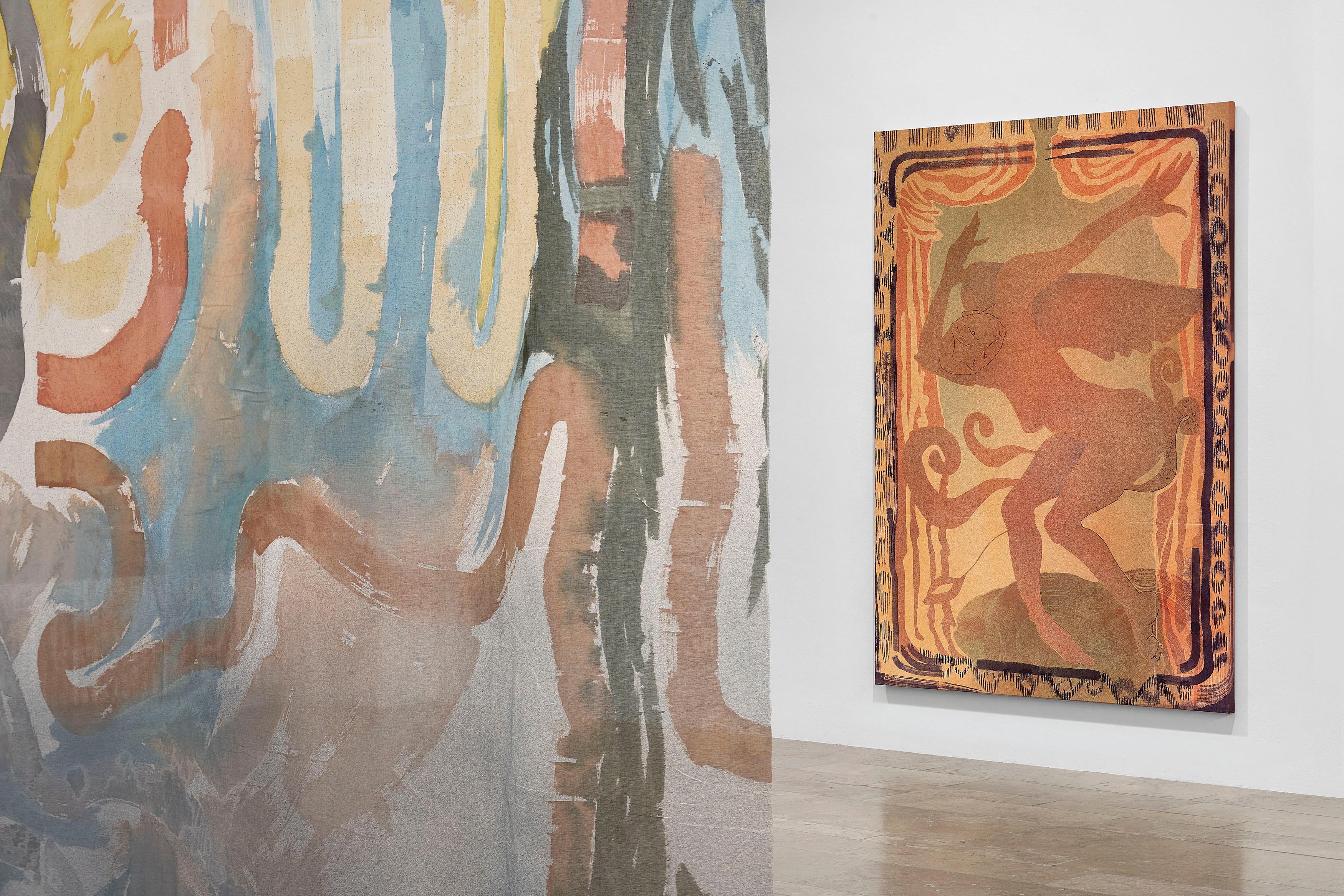 Lutz-Kinoy treats exhibitions like immersive architectures, positioning painting as backdrop and sculpture as spatial intervention. Often conceived as total environments, his works respond to a venue’s architecture and site-specificity, entwining sensual, silhouetted bodies with recurring ornamental motifs, vegetation and floral arabesques, references to art historical movements, from Expressionism to Rococo.