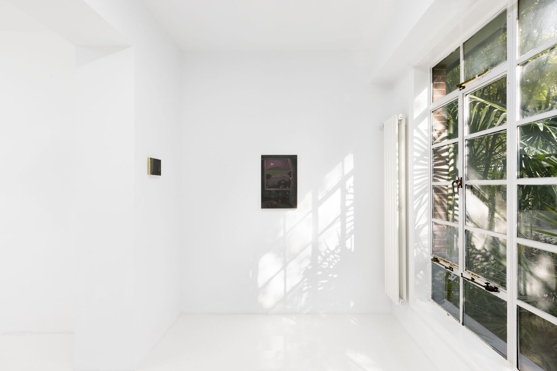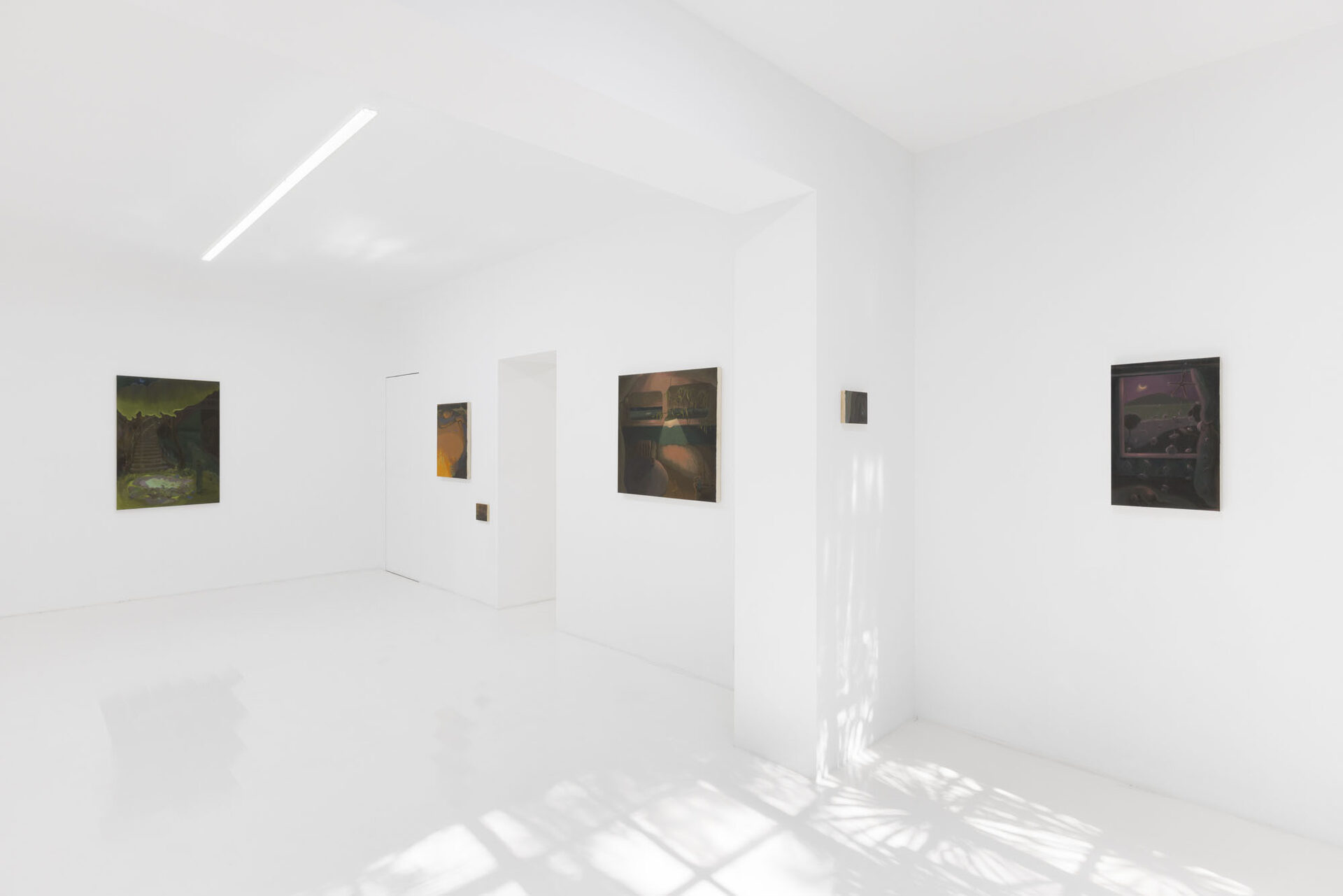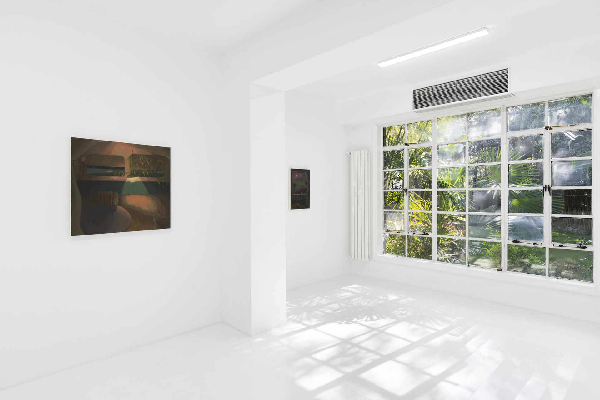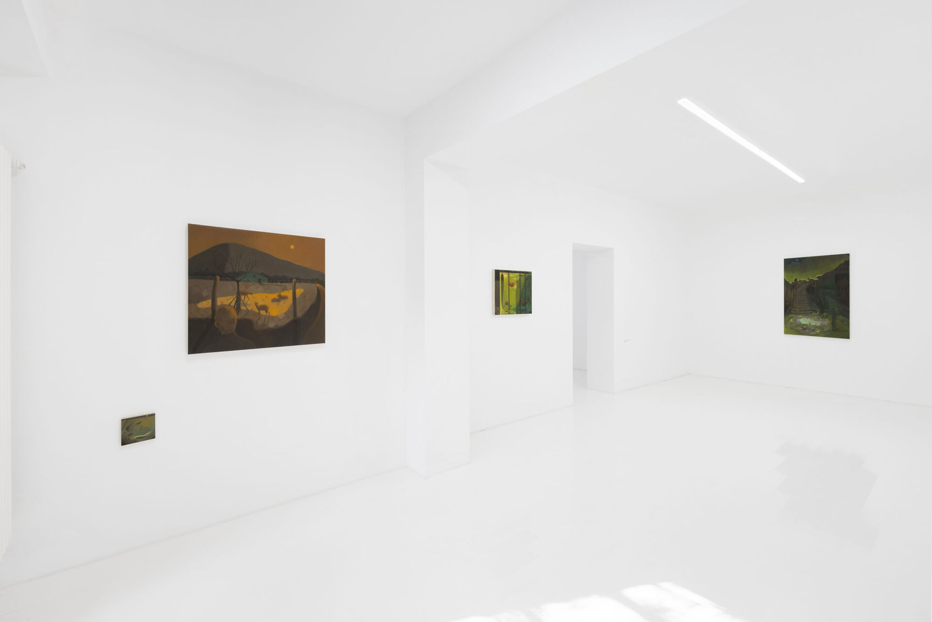 The exhibition is not a loud declaration, but a soft murmur that lingers. Through nine new paintings, Cheng invites us into the quiet, liminal spaces that exist between journey and arrival, observation and absorption, the self and the landscape. She articulates the weight of one’s own perceptions and the tender ache of being simultaneously connected to and separated from the world. Cheng positions herself and her viewer as modern-day flâneurs—not the detached 19th-century strollers, but contemporary wanderers whose travel is as much internal as geographical.