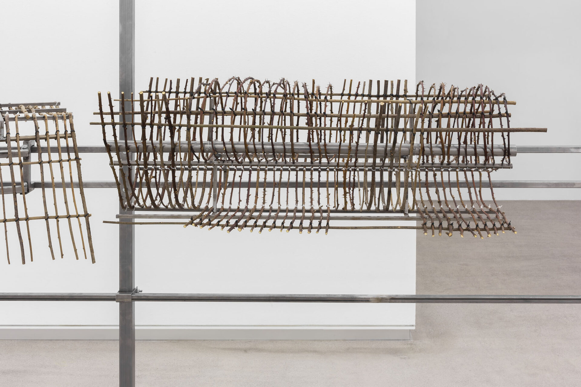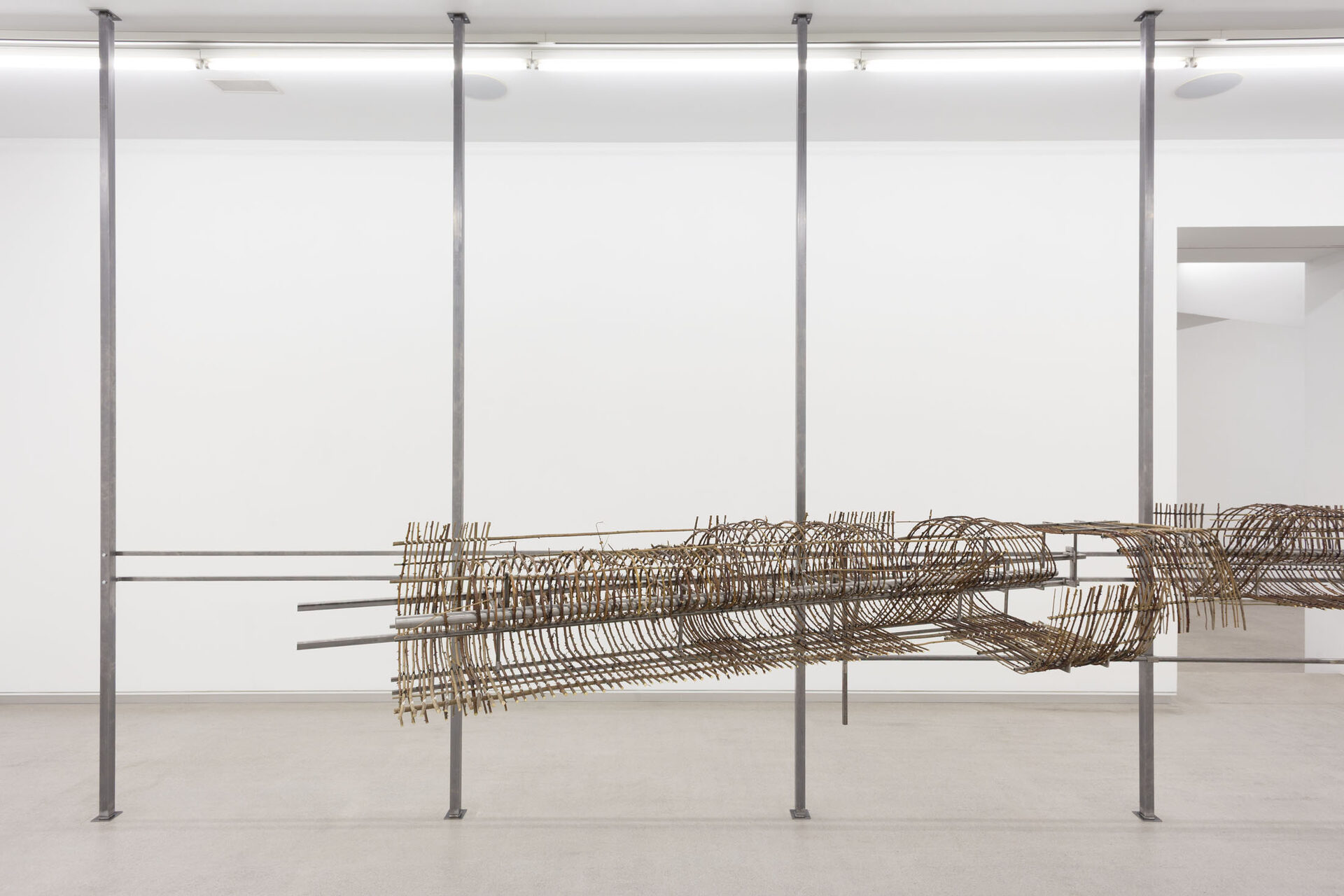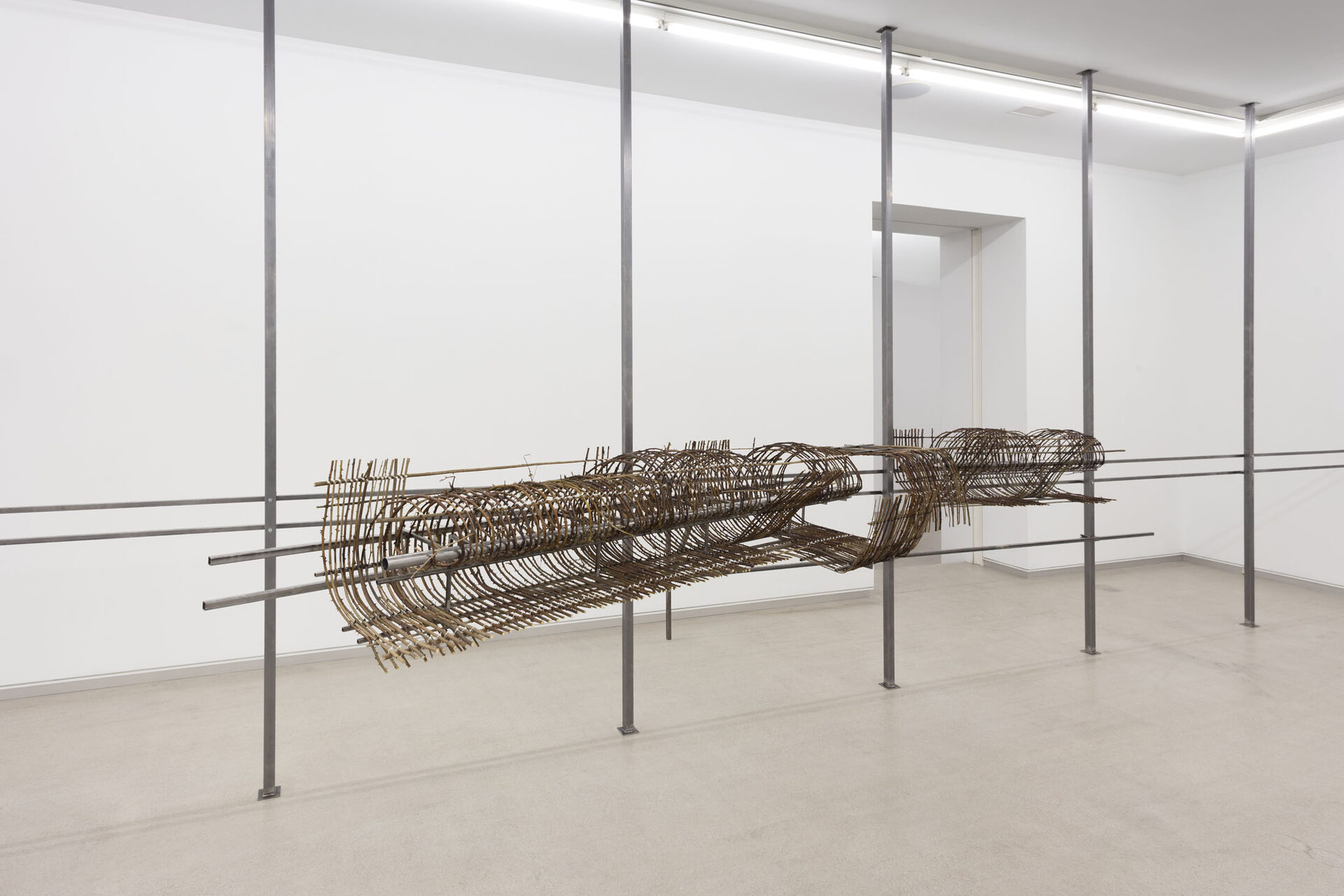 The work I am presenting in the studio space is an adaptation of an exhibition with the same title I had last summer at Temple Bar Gallery + Studios in Dublin. I started off from a drawing based on a written description of the inside of a tiny room with a door opening onto the galleryin Dublin. Inside it there was nothing but light switches, the closed-circuit system and cleaning products. The effort of imagining the space from the meticulous text that Michael Hill, the exhibition’s curator, had sent to me and the attempt to represent it in a drawing, was my way of foreclosing the impulse to explore my affective relationship with Dublin or any history associated with the site. And so, in this way, the main sculpture, made from bramble branches collected in Artxanda, established a certain distance from the Irish art centre and its audience, in contrast to the insect drawings, which sought to appeal directly to visitors. Now, here in Bilbao, I believe those…