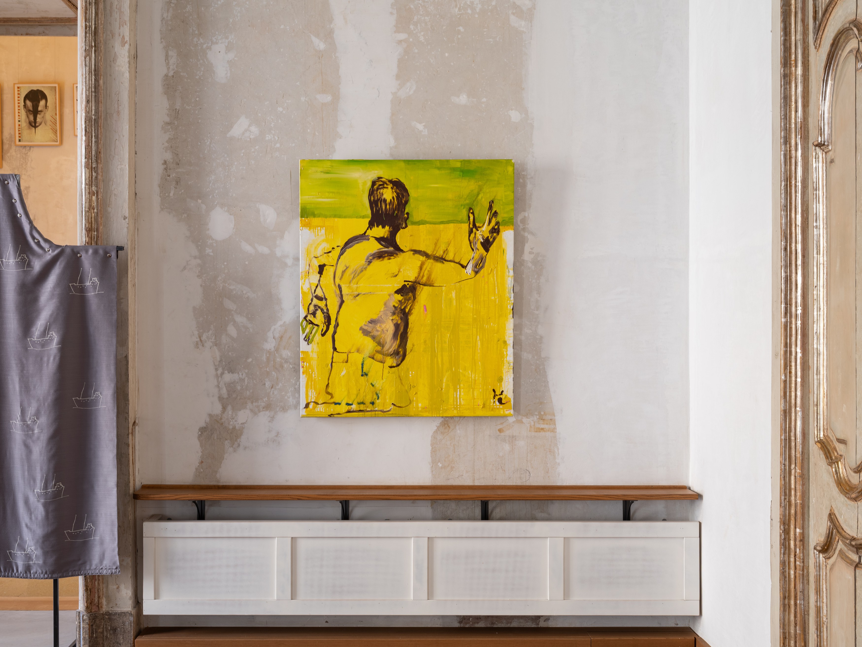 In late 1976, Martin Kippenberger moved to Florence with the aim of becoming an actor. When his wish did not take off as planned, he turned toward becoming an artist and painter, culminating in his first painting series, Uno di voi, un tedesco in Firenze (1976/77).