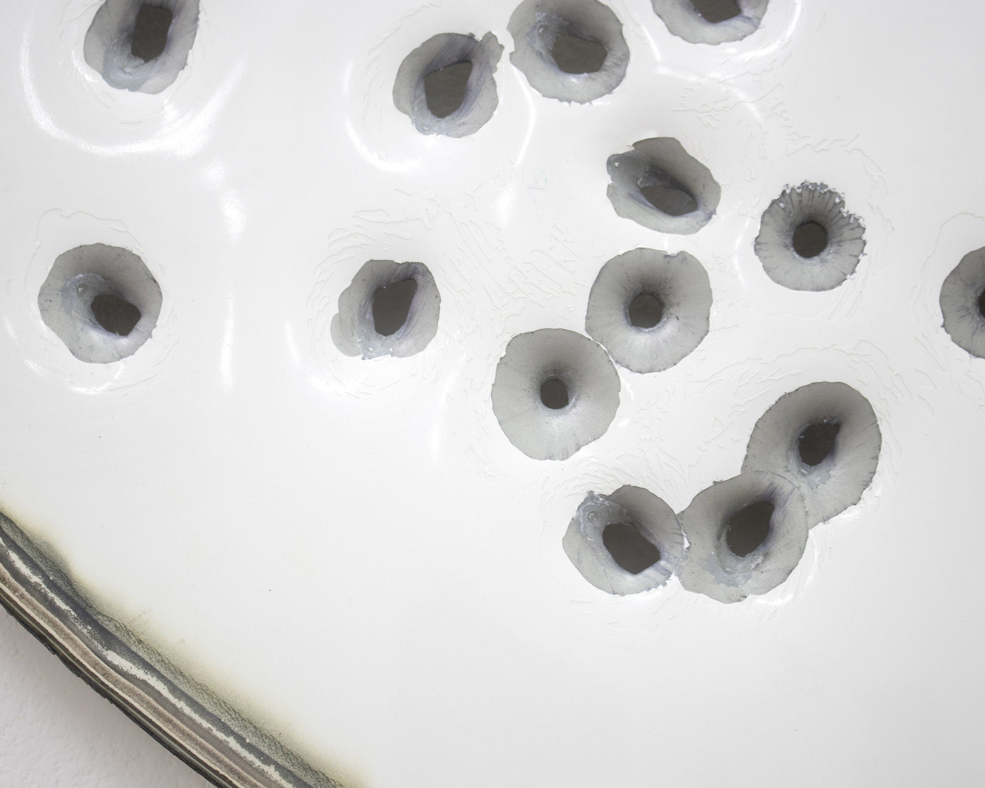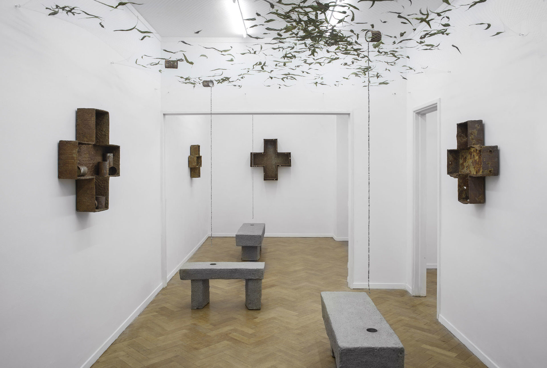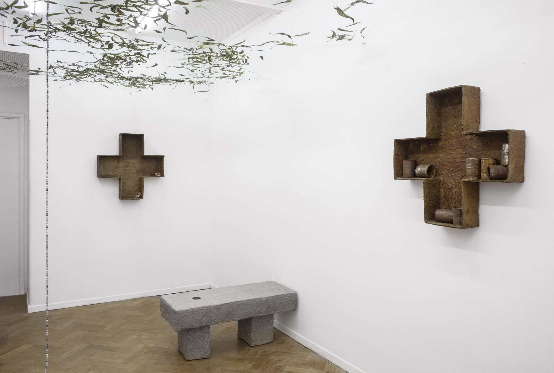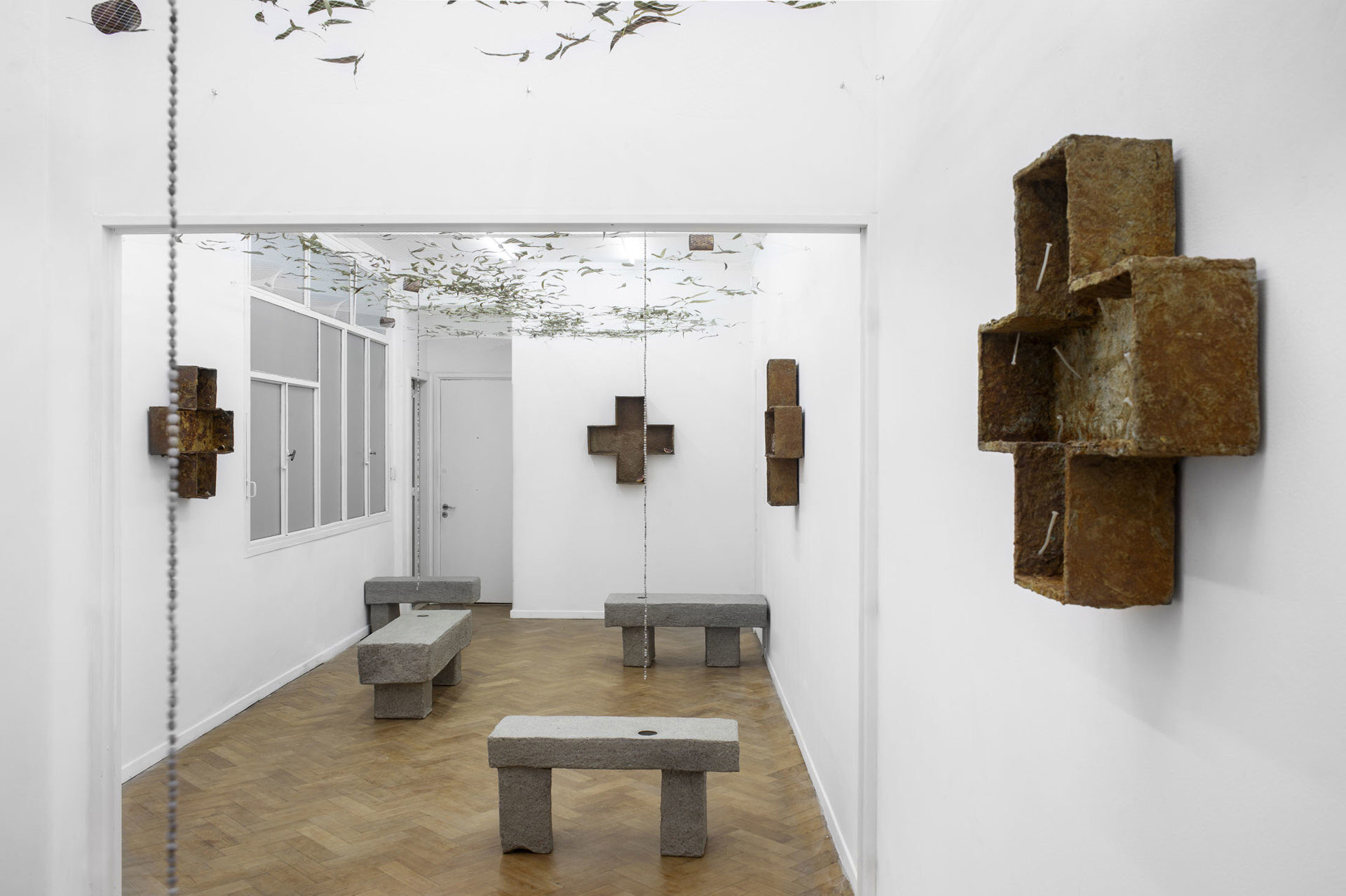 In the exhibition “Perspective of Healing”, artist Federico Roldán Vukonich uses the form of the Greek cross to express a gesture of desecration: he presents a new series of sculptures that challenge the viewer’s perception by contrasting the delicacy of cardboard with the rigid appearance of oxidized metal. The iron oxide gives the surface a reddish hue that emphasizes the continuous transformation of matter and the human experience of reconnecting with instinct/nature. These sculptures inhabit the walls, which at first glance…