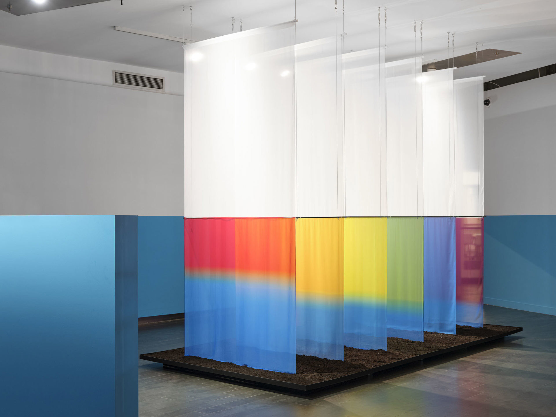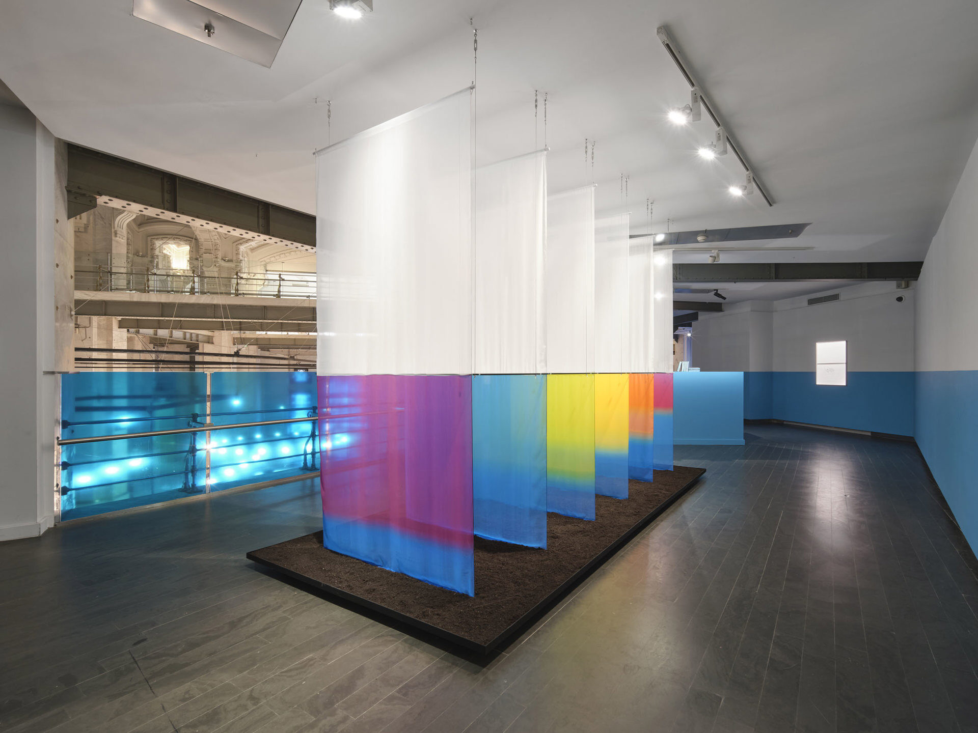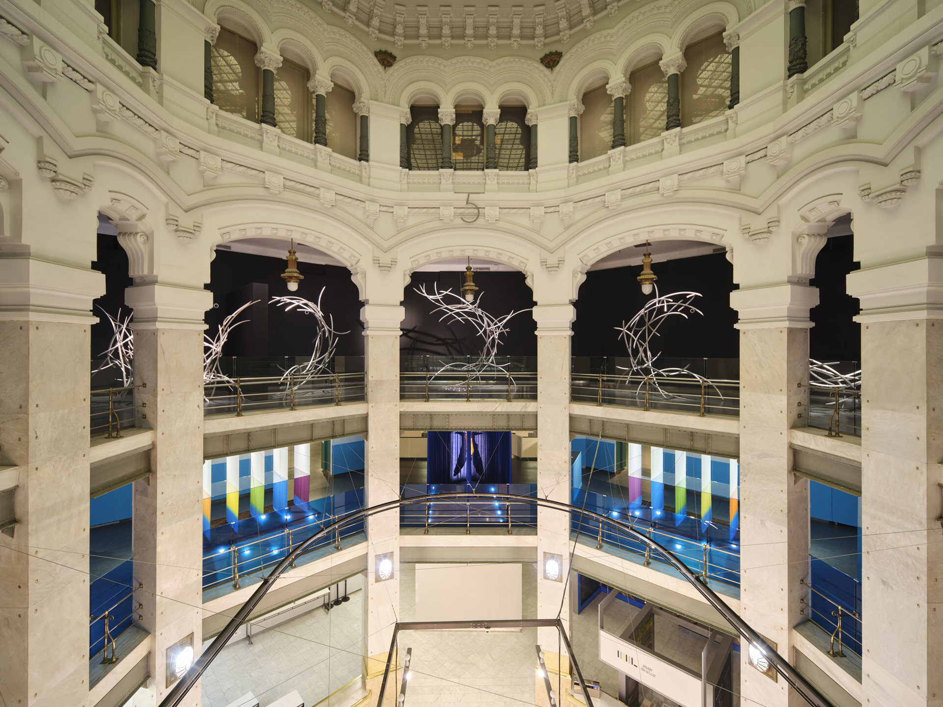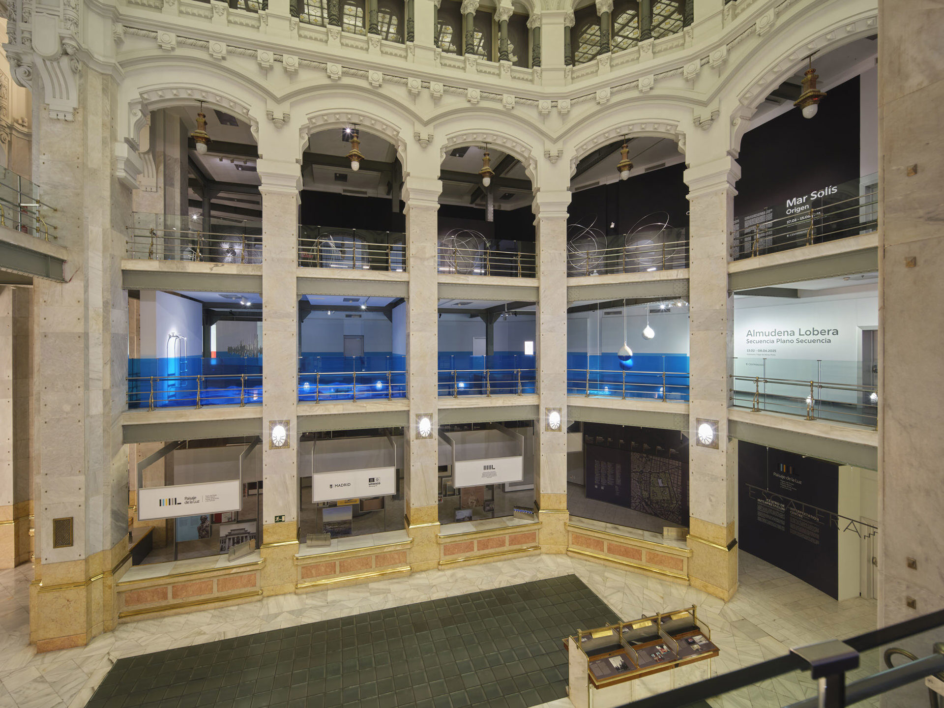 Take Long Take (Secuencia Plano Secuencia in Spanish) is a site-specific exhibition by Almudena Lobera, conceived for the third floor of CentroCentro in Madrid. Inspired by the symmetrical, horseshoe-shaped architecture of the Palacio de Cibeles, the exhibition offers a mirrored journey, in which visitors move continuously through the space, much like a cinematic long take.