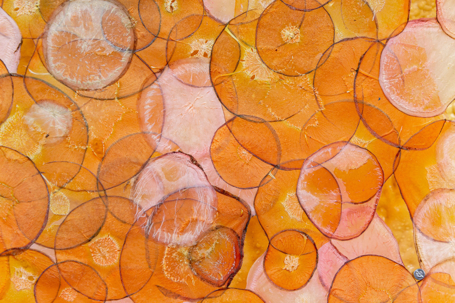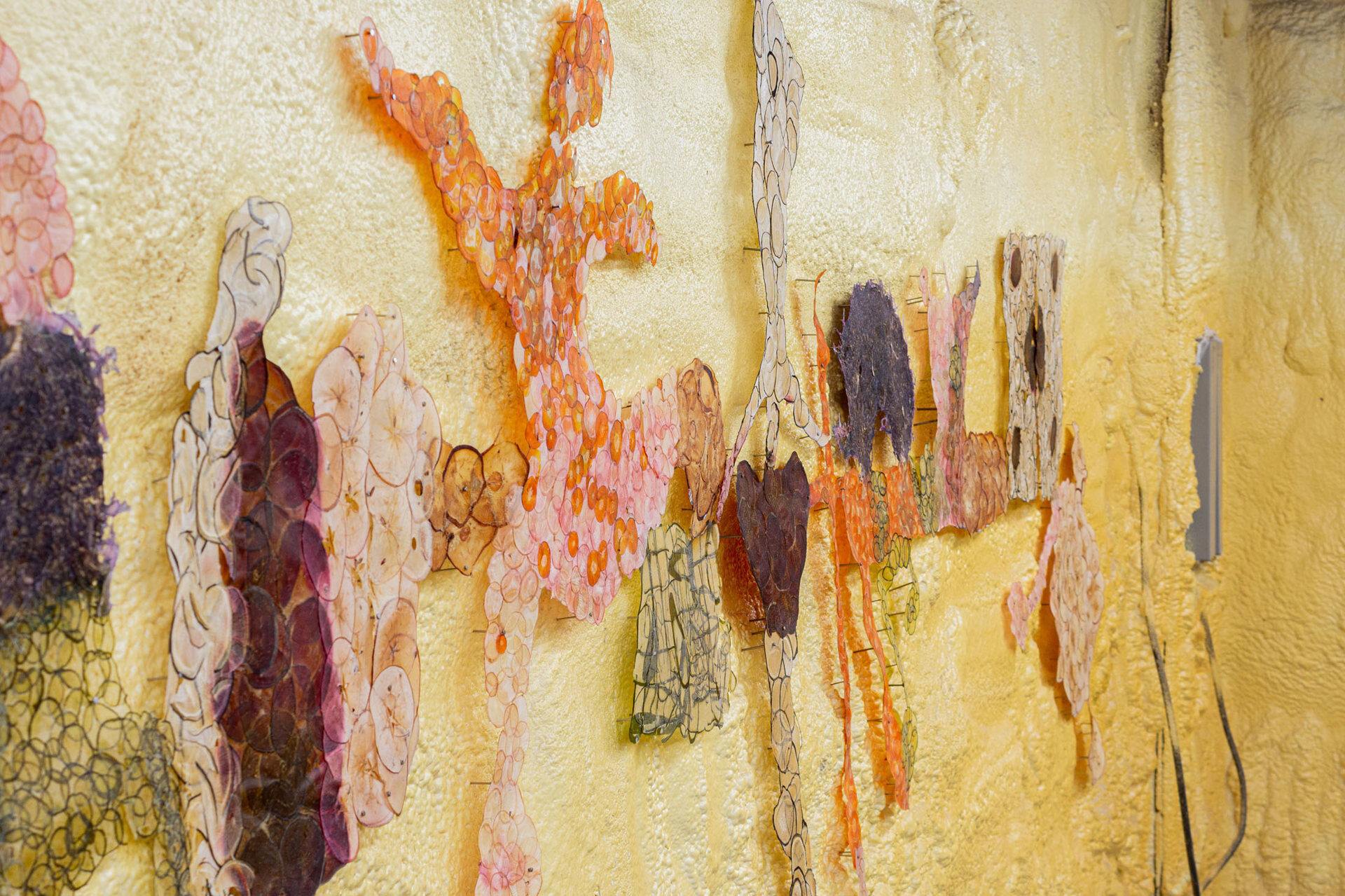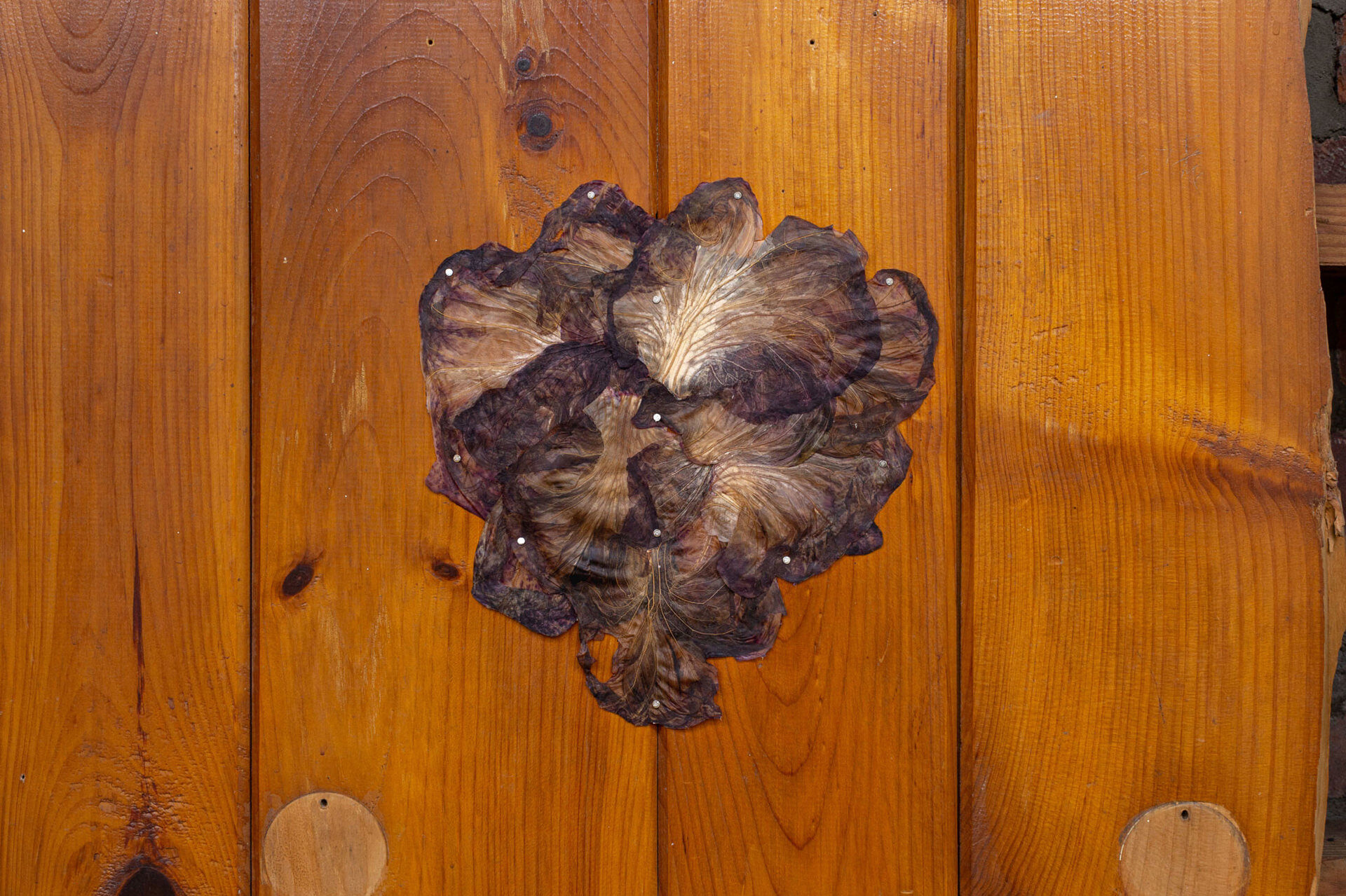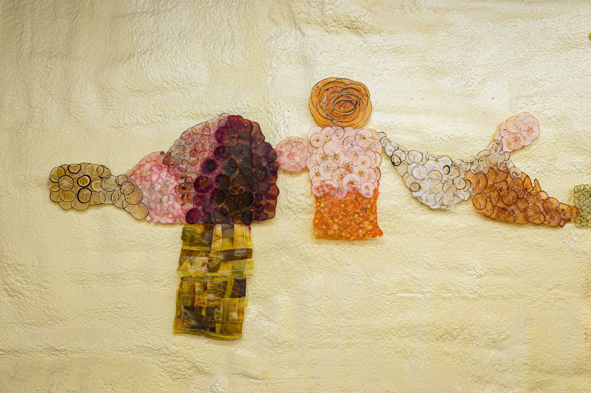 This piece is built from apples as well. Apples and many other crops. Its final form is what papermakers commonly refer to as papyrus. Papyrus is a paper-like material which is made by layering and pressing organic matter together until it fuses in partnership. It is bound by sharing its sugars and natural moisture.