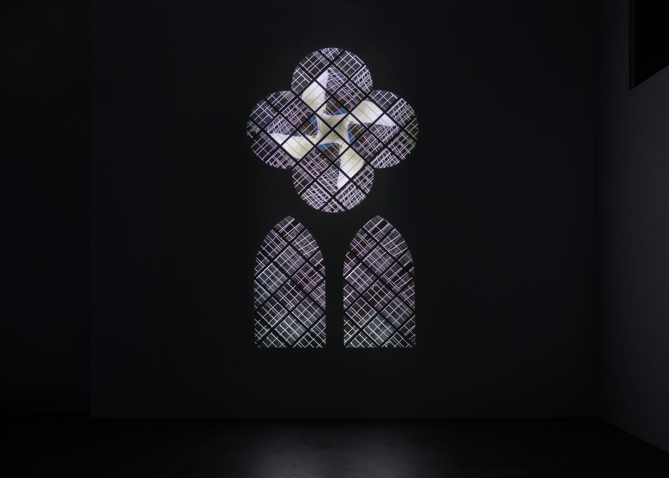 Central to the exhibition is Act of God (1), Simonetti’s first large-scale video work. This two-channel projection evokes a monumental stained-glass cathedral window: one channel depicts the window itself,…