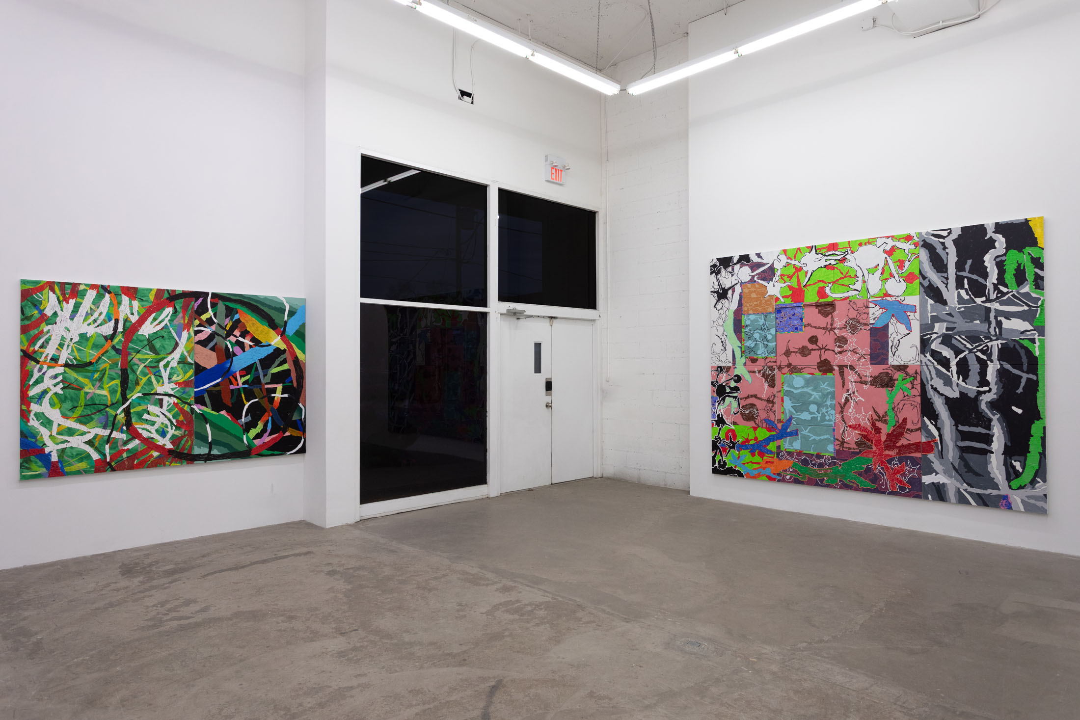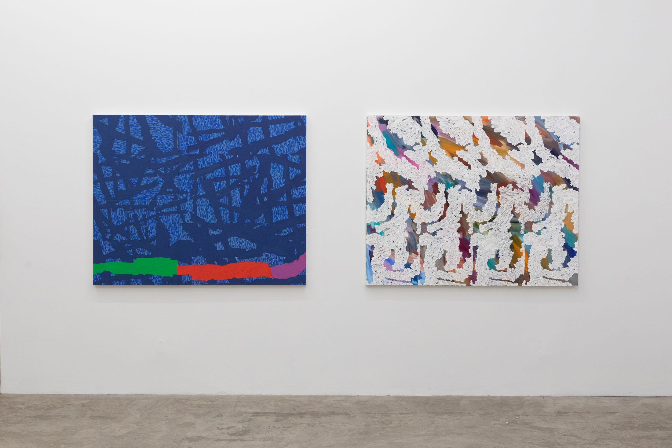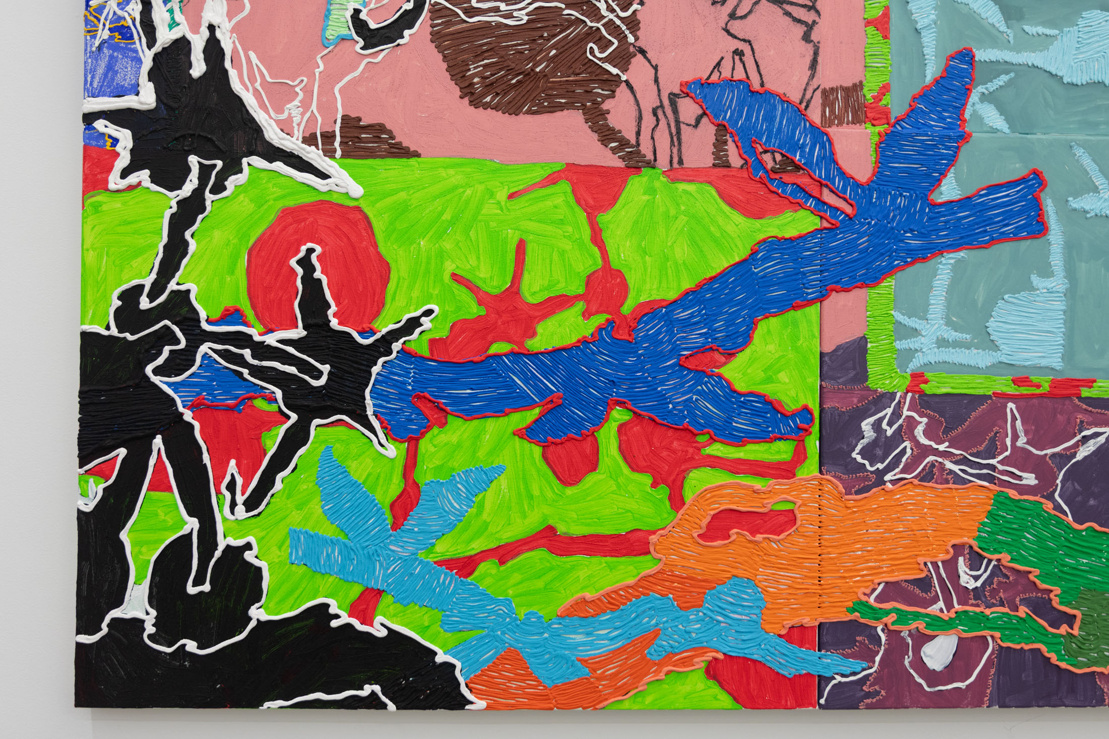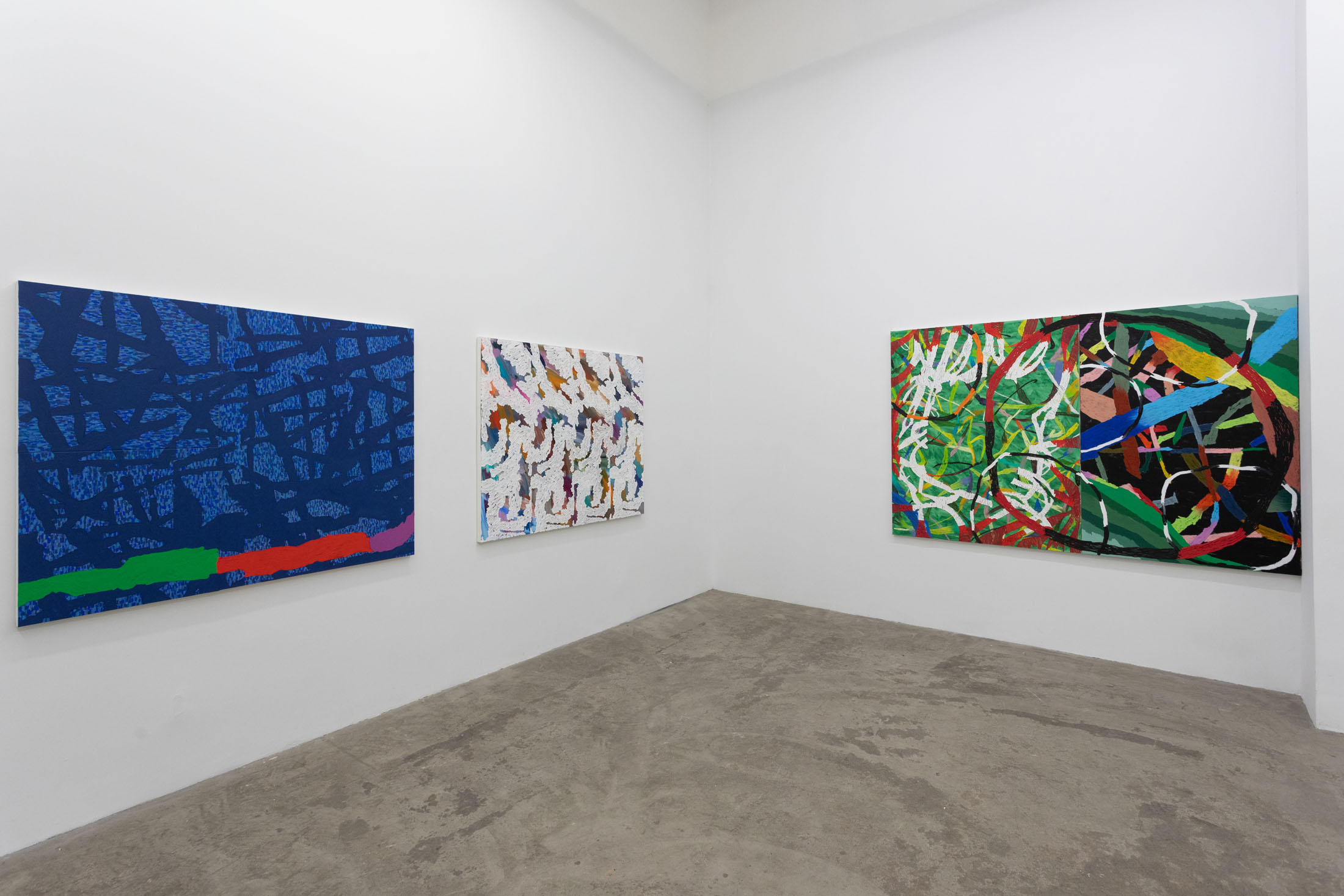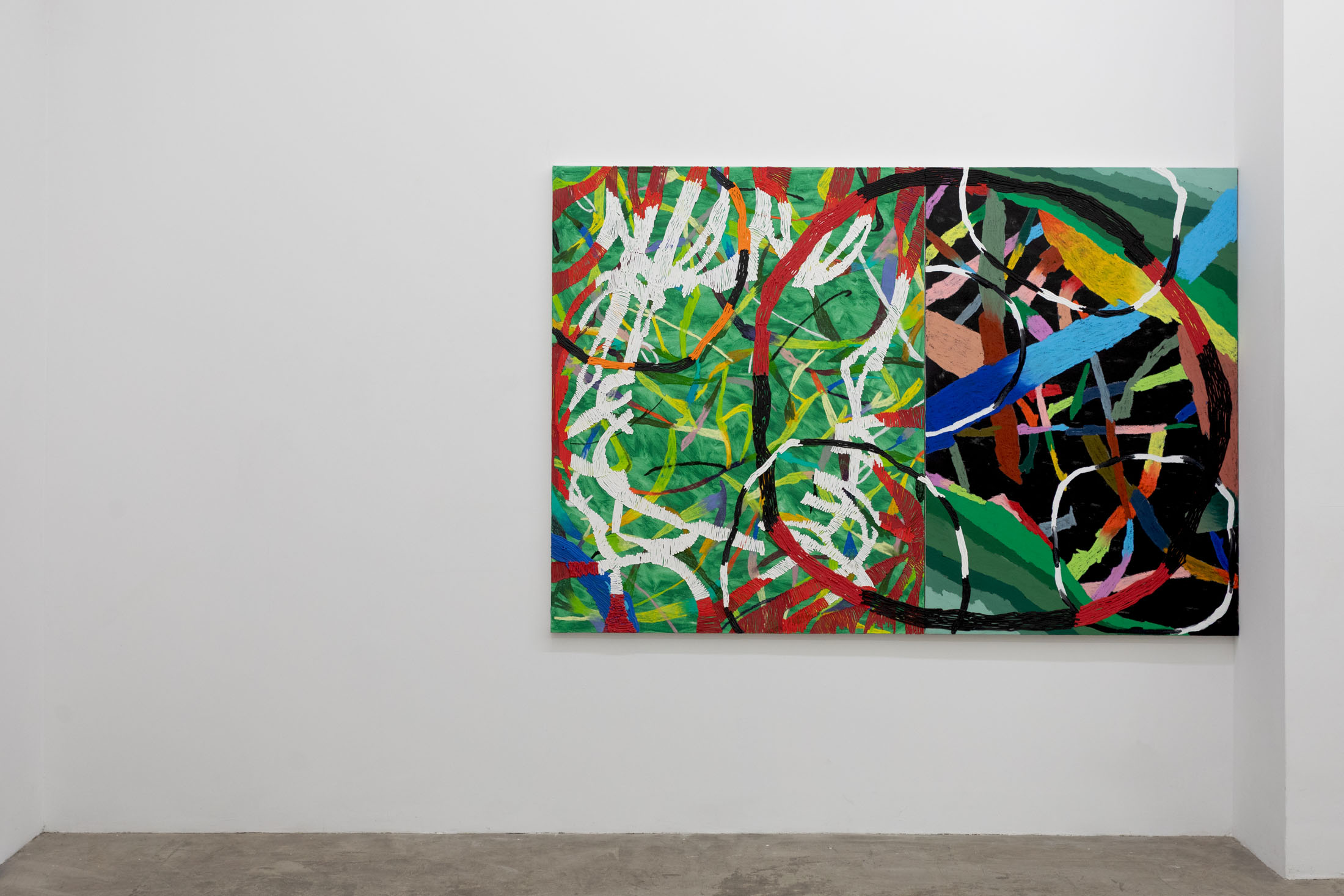 The exhibition brings together a group of large-scale, multi-panel paintings that operate in the space between what is visible and what remains concealed. Resistant to immediate interpretation, the works sustain a sense of ambiguity, allowing forms and meanings to shift over time.