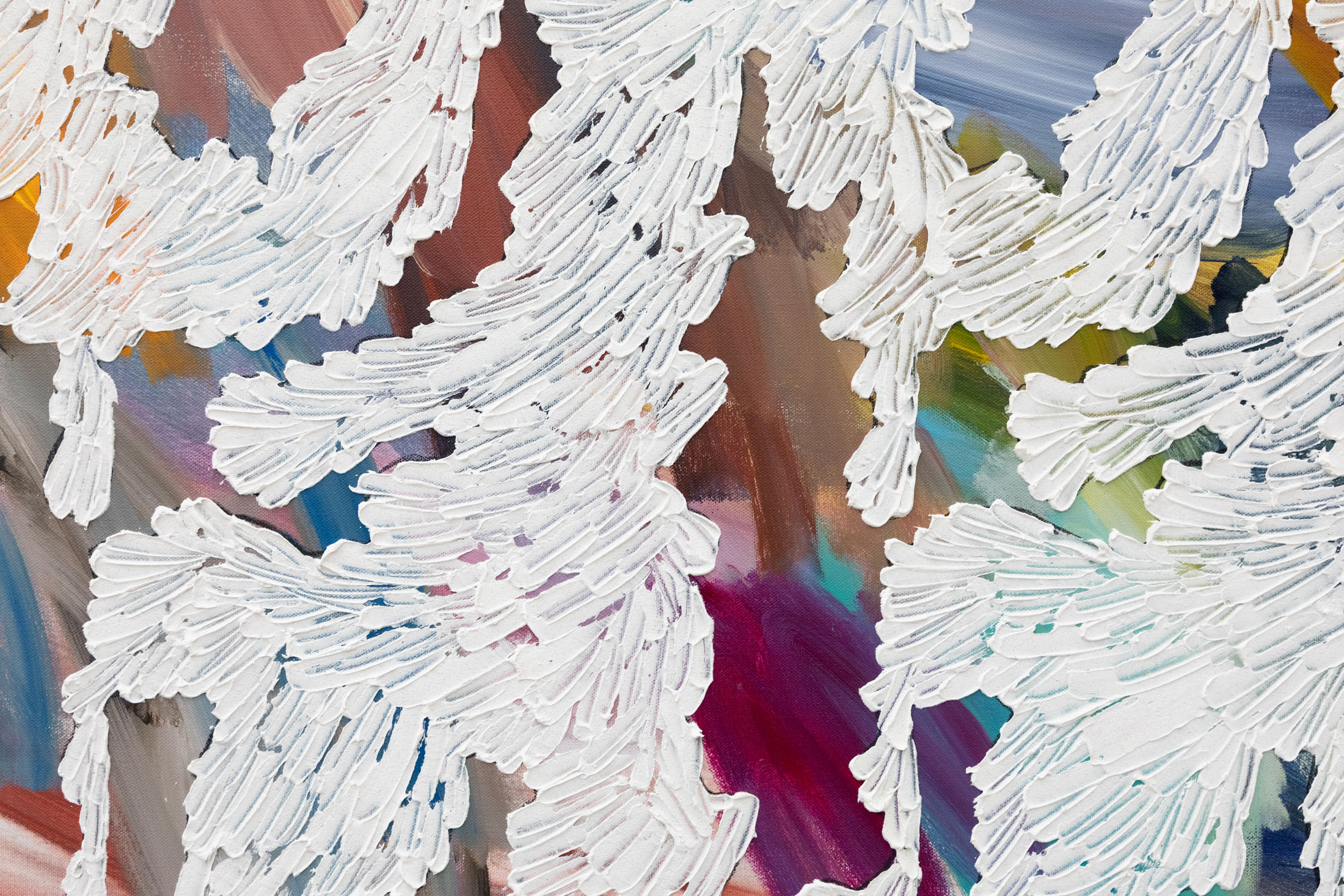 Through mark-making, composition, and scale, the paintings gesture toward memory and identity before dissolving back into abstraction. Bright, vibrant colours initially appear playful but quickly give way to friction and instability. Within this tension, surfaces peel and shift, revealing something unspoken. Kaur’s abstractions carry the weight of personal and cultural histories without fixing meaning, leaving the works open to multiple interpretations, and inviting contemplative engagement.