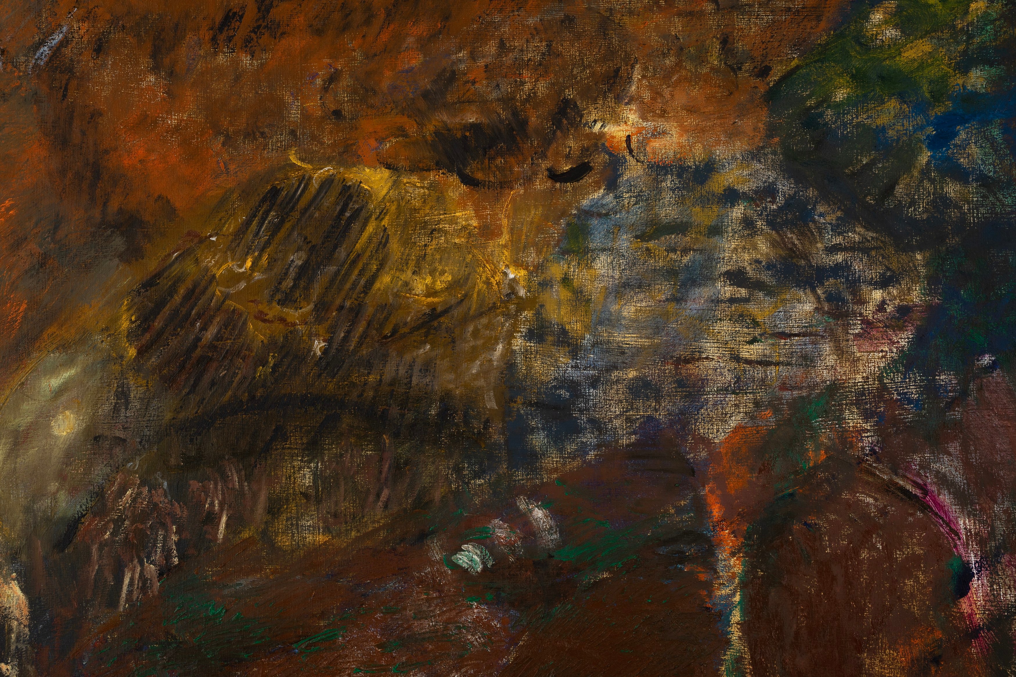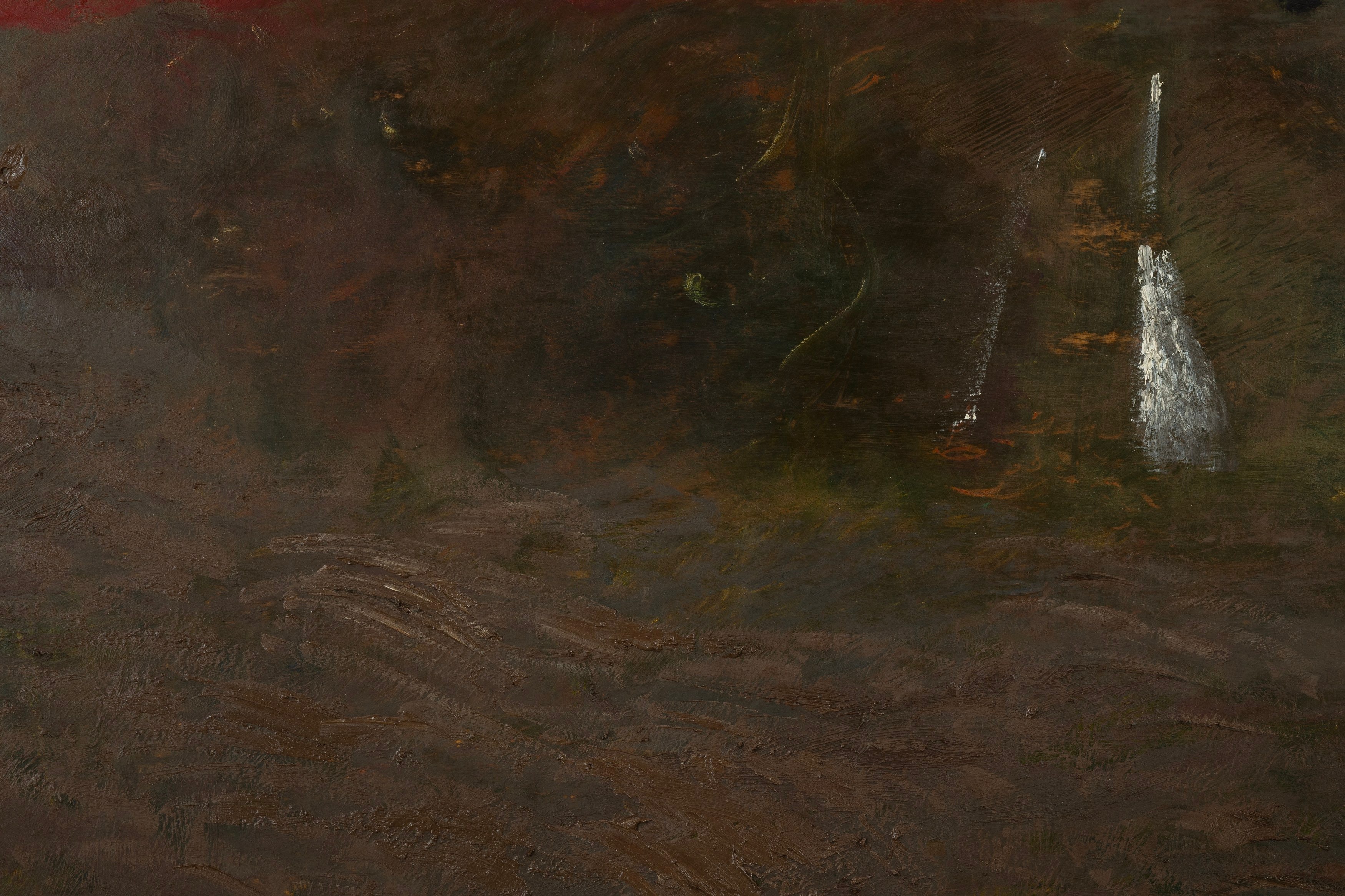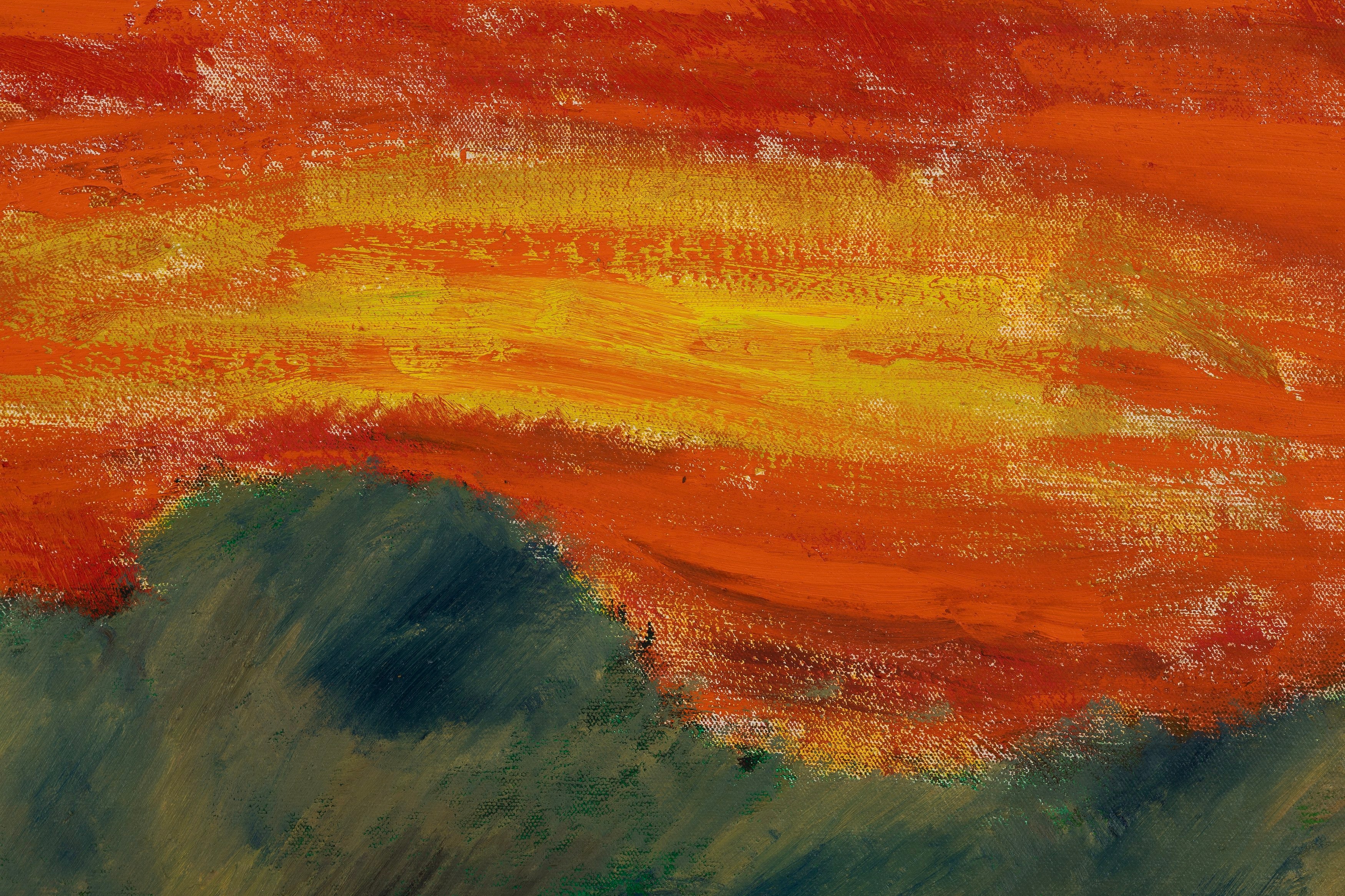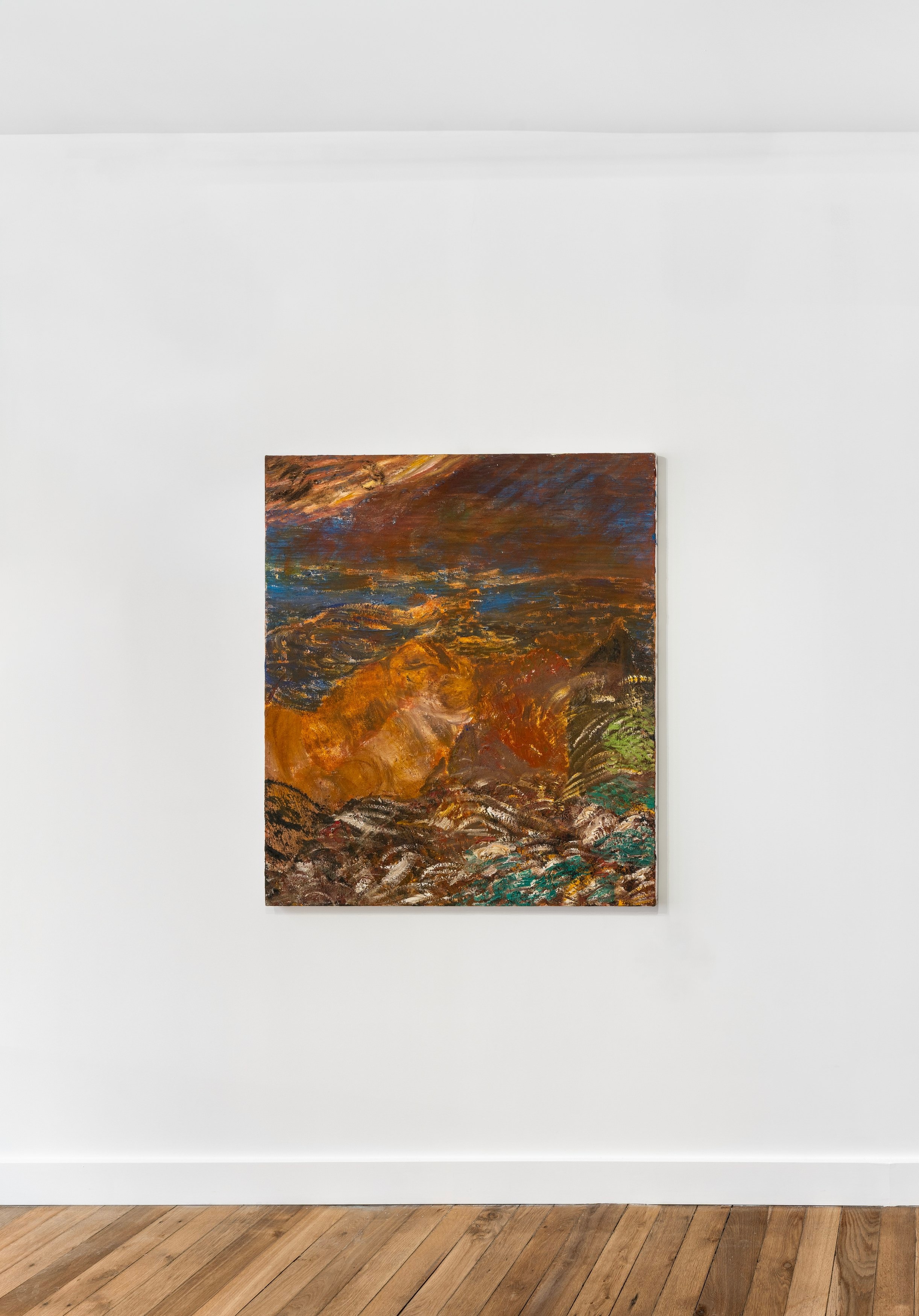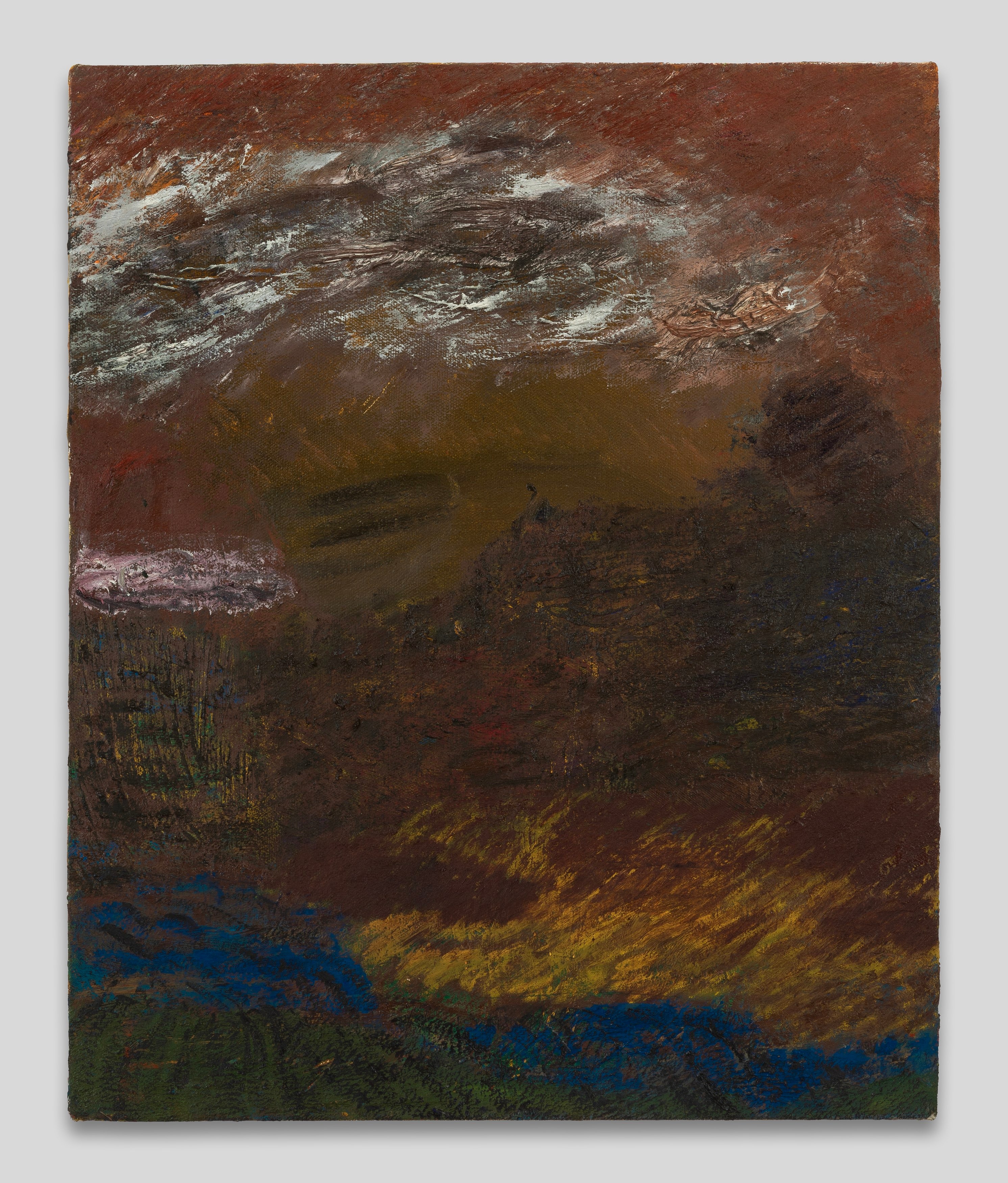 In 2021 he decamped from San Francisco to the high desert of Arizona, where he painted full-time. I visited him there on several occasions, flying into Sky Harbor and climbing more than 5,000 feet through red-brown mountains and saguaro cacti in tinny rental cars. Once I drove through a lightning storm that felt like the first storm ever made.