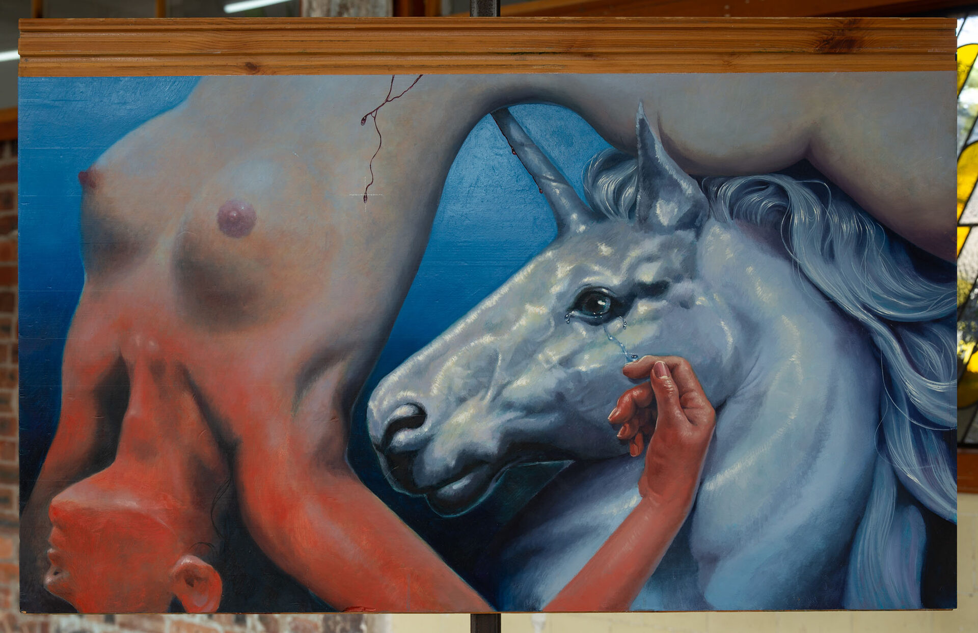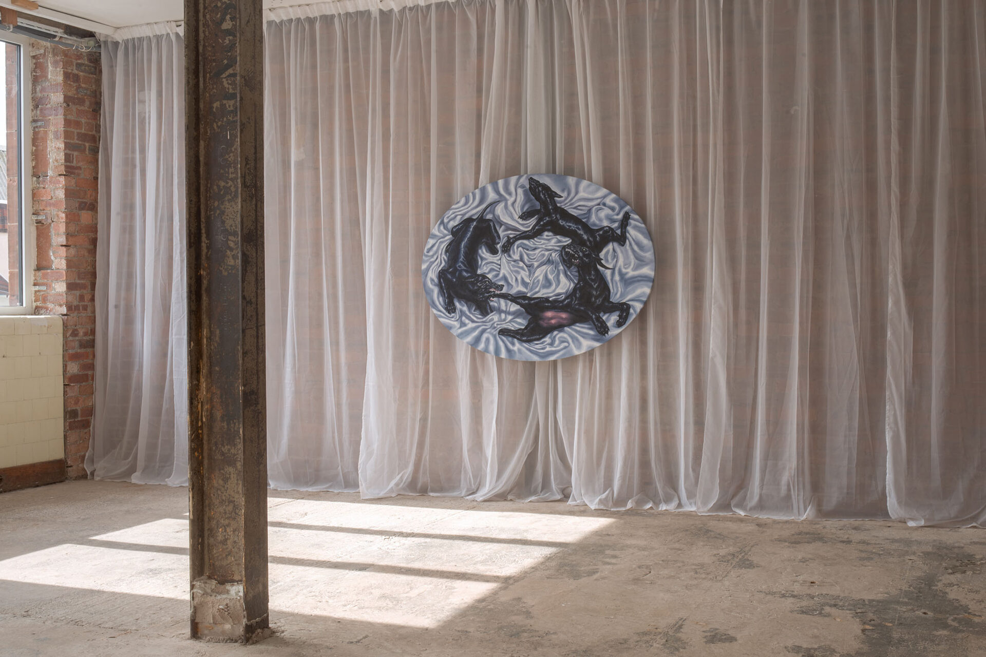 Through painting, Noh explores the complexities and precarity of diasporic identity as an East Asian woman in Scotland, whilst interrogating intergenerational trauma within private and personal spaces. < IN HER BEDROOM > will continue to confront these themes through a series of new paintings, whilst sharing a personal experience of living and finding joy despite the anxieties that underpin it all.