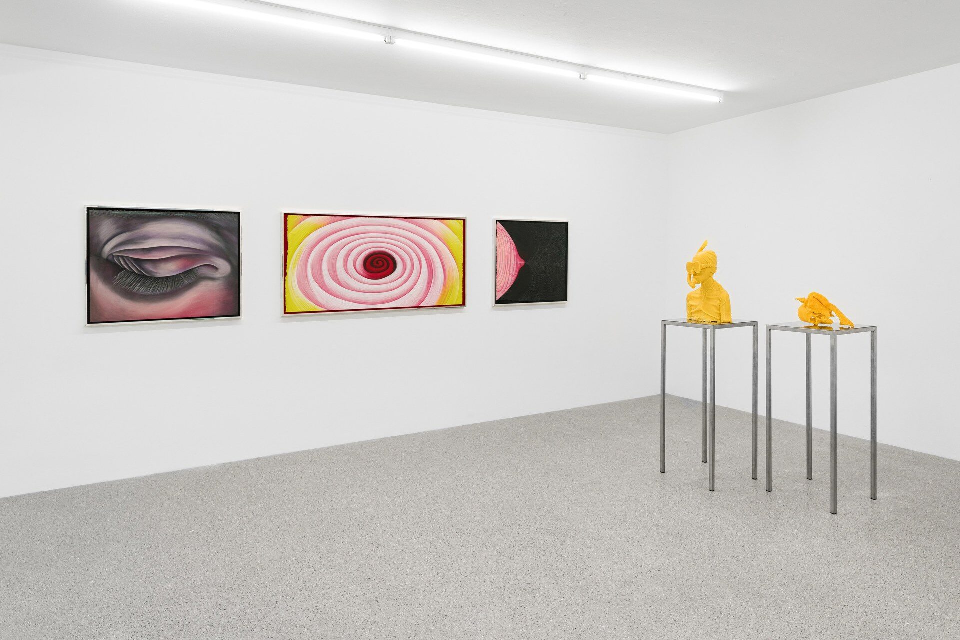 Deborah Schamoni is pleased to present the exhibition INCONTRI – an intergenerational convergence, in which the works of Rebecca Ackroyd, Kerstin Brätsch and Lydia Silvestri engage in an open dialog. The Italian title “Encounters” already points to the searching nature of this constellation: between painting and sculpture, figuration and abstraction, physicality and spirituality, a space of internal processes emerges. The works presented focus on that which is beyond immediate perception: the unconscious and the hidden. The body appears on the one hand as a motif, but on the other as a container, threshold and receptive surface for affective traces. Each position contributes a distinct language, grounded in its own temporal and material context, which weaves into a multivocal narrative within the exhibition.