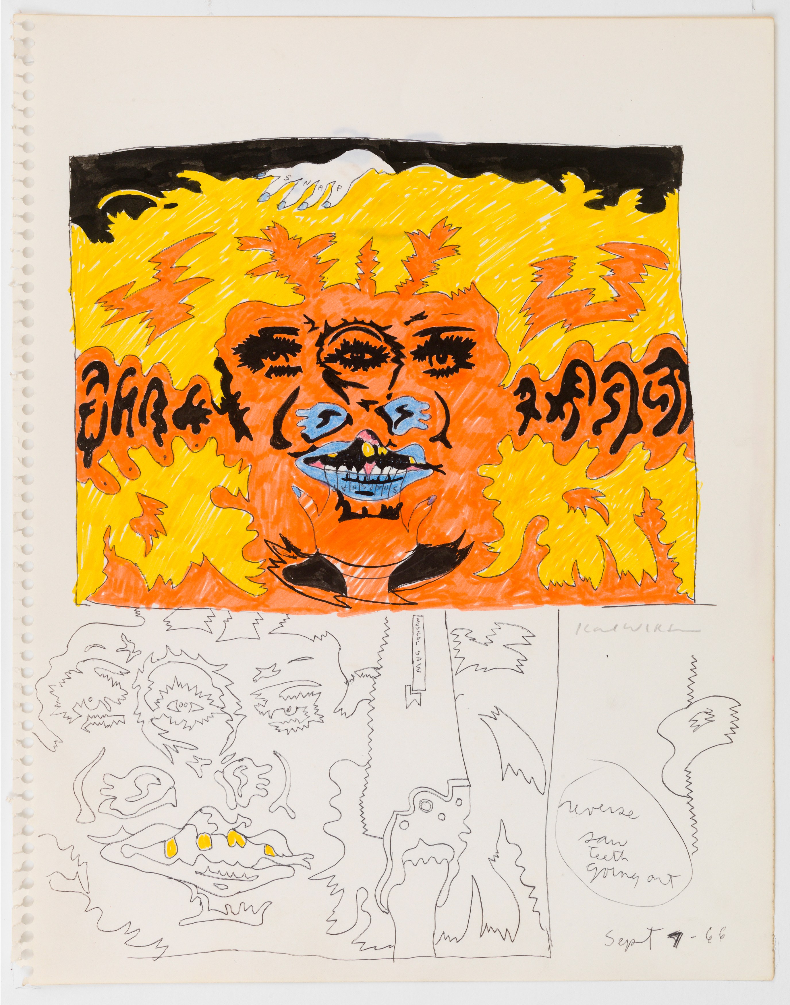 Derek Eller Gallery is pleased to present a selection of works on paper from the 1960s by Chicago artist Karl Wirsum (1939-2021). Wirsum’s sketchbook drawings from this era provide the origins of his visual language and incorporate studies for important Hairy Who? era paintings.