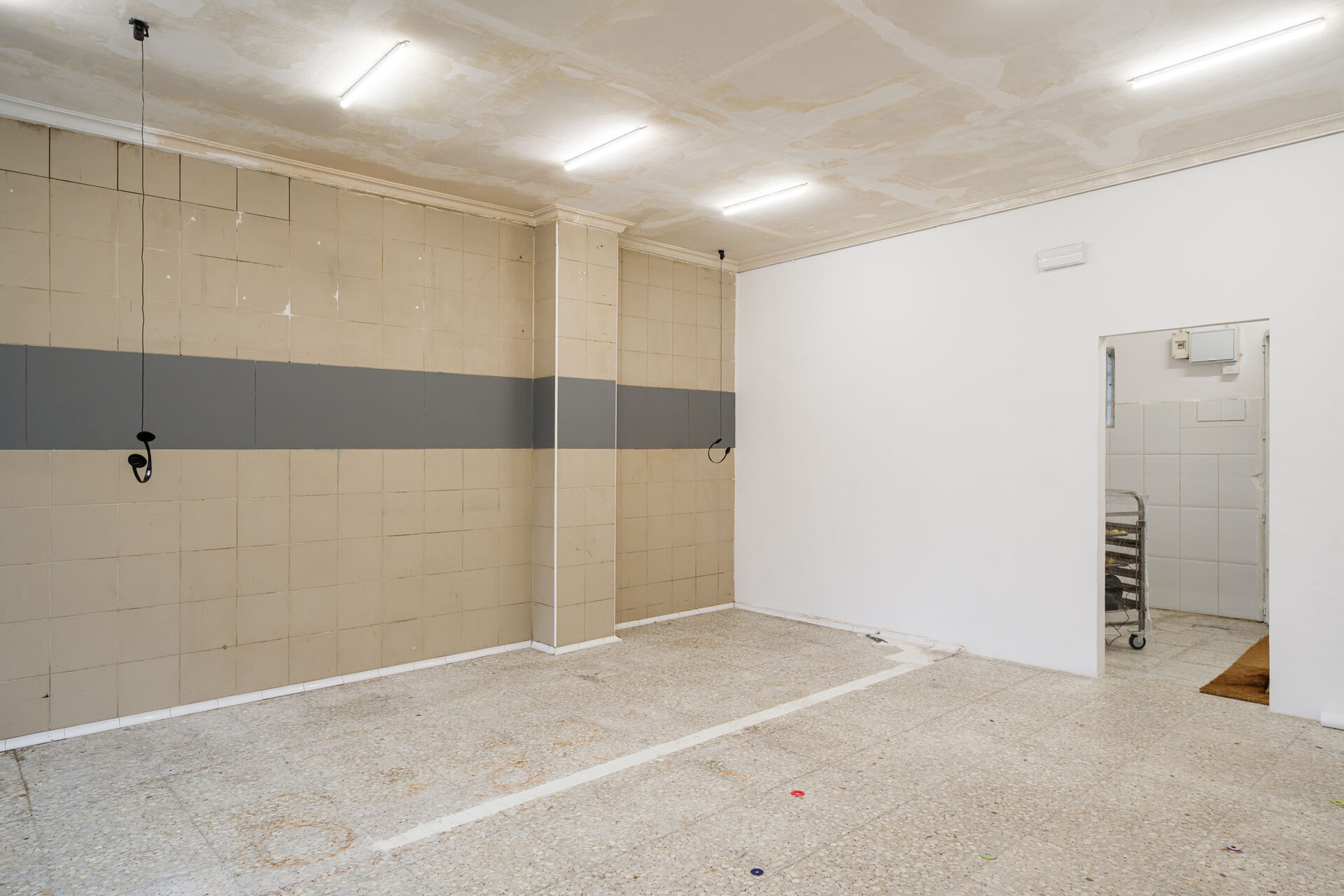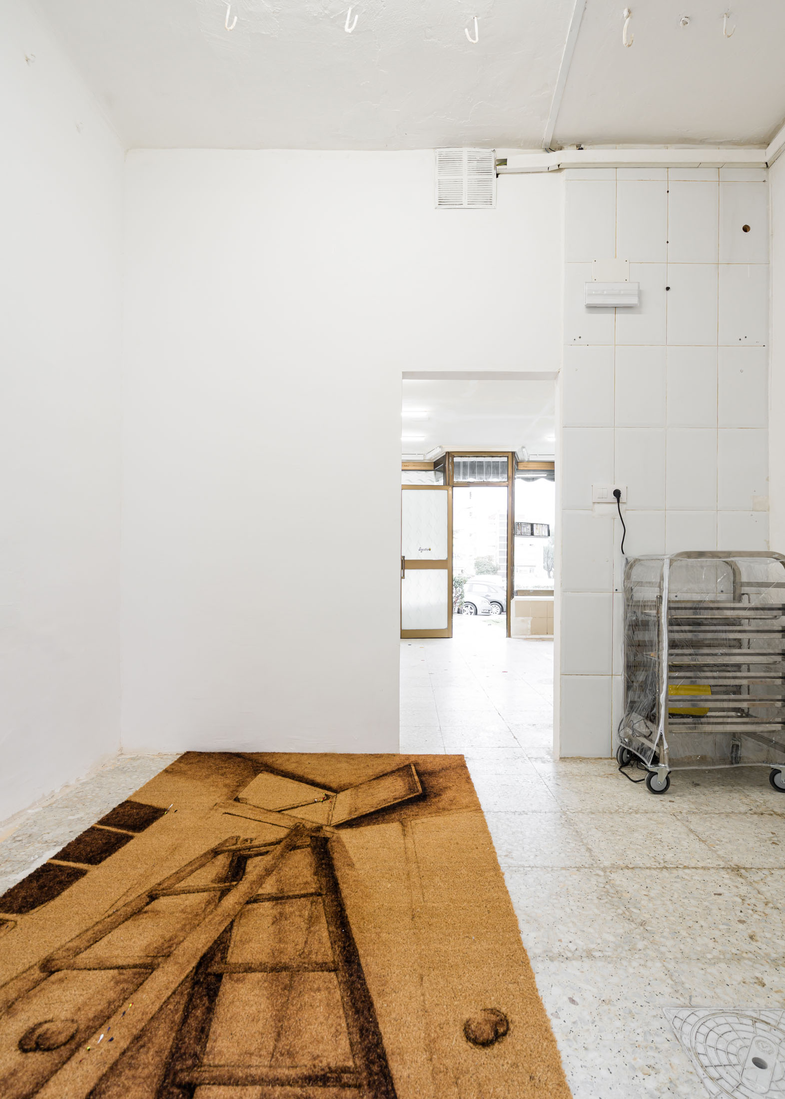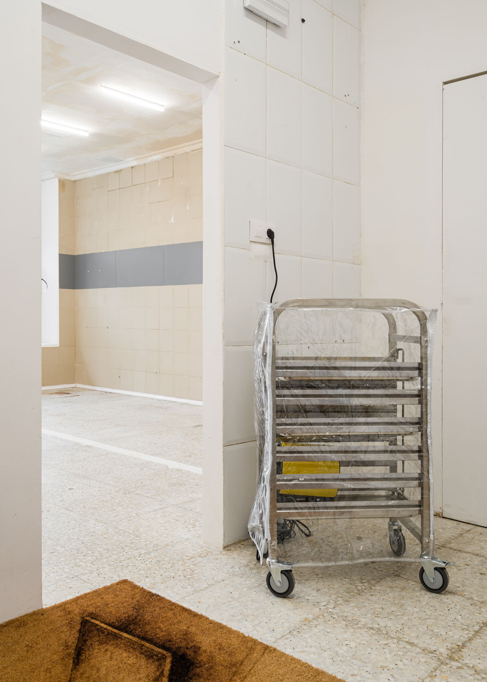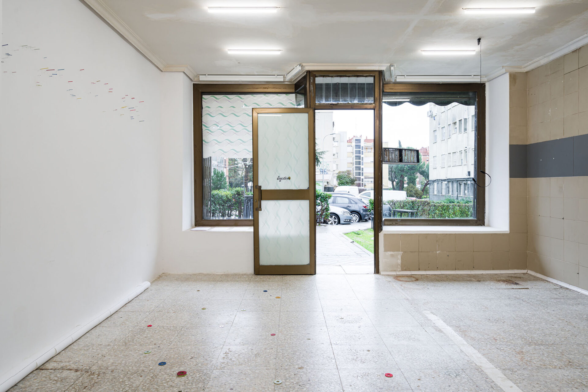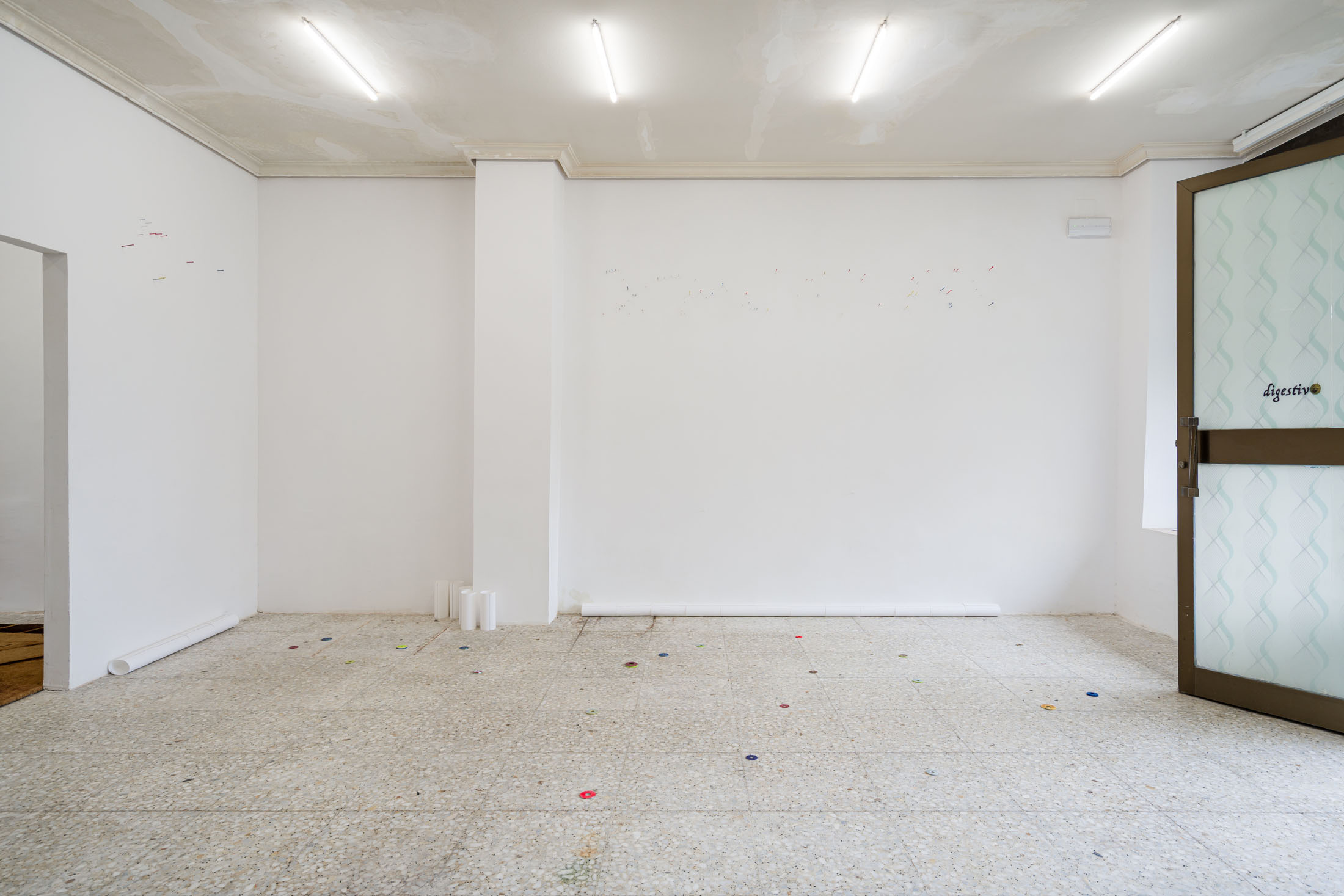digestivo is permeable insofar as it supports shared processes. The conditions of the practice infiltrate the conditions of the space, depending on other structures. The air continues to find its way even with the doors closed: the smoke vent of the old creamery—which later became a rotisserie—was covered up, but the original ventilation system remains, below the molding that embraces the space, at the entrance—an exit. Only the shell was kept. I tore down the partitions of the cold rooms, stripped the walls, and removed the doors.