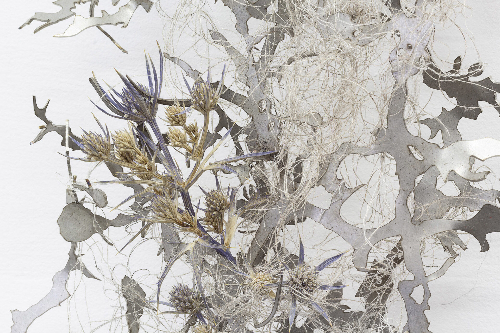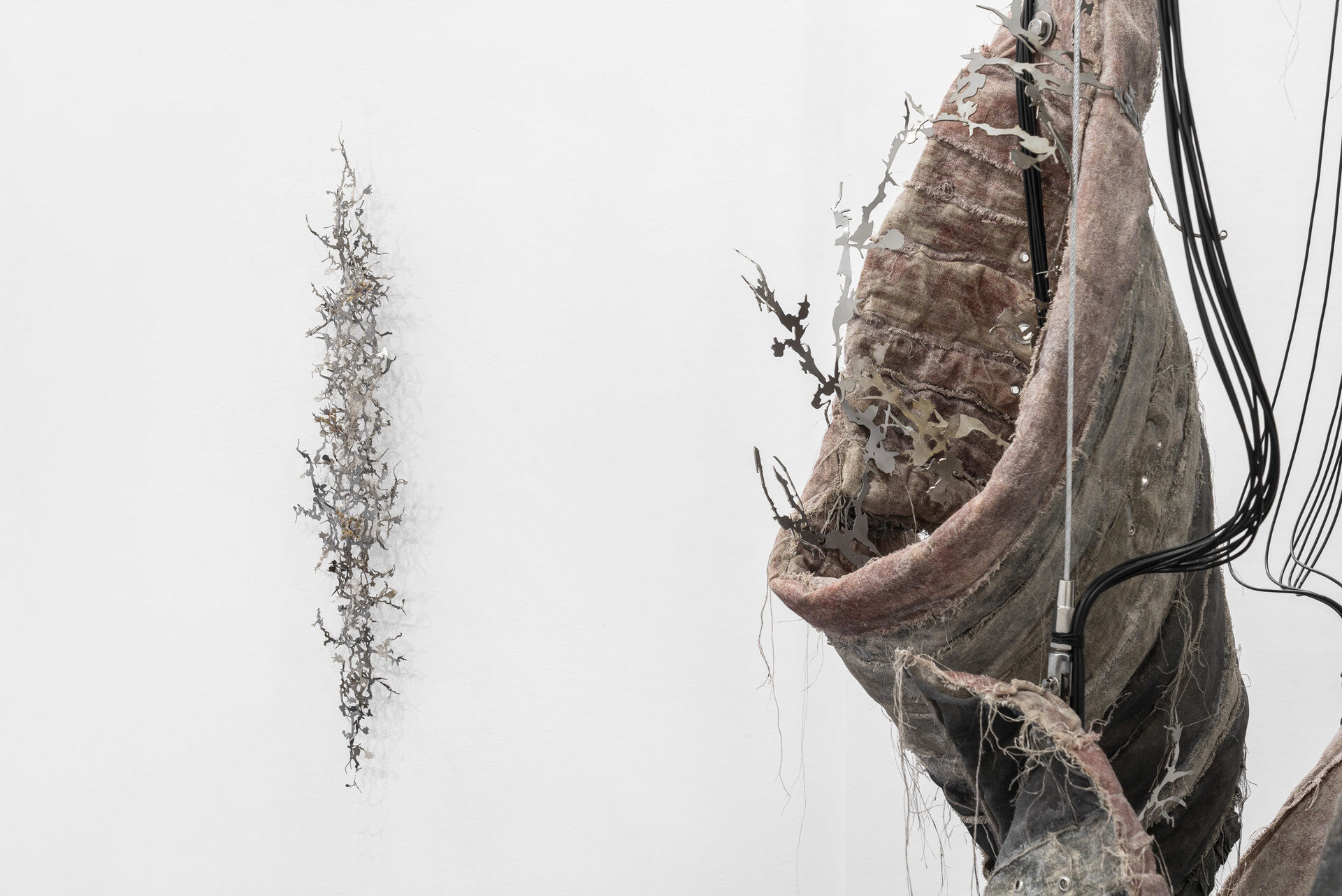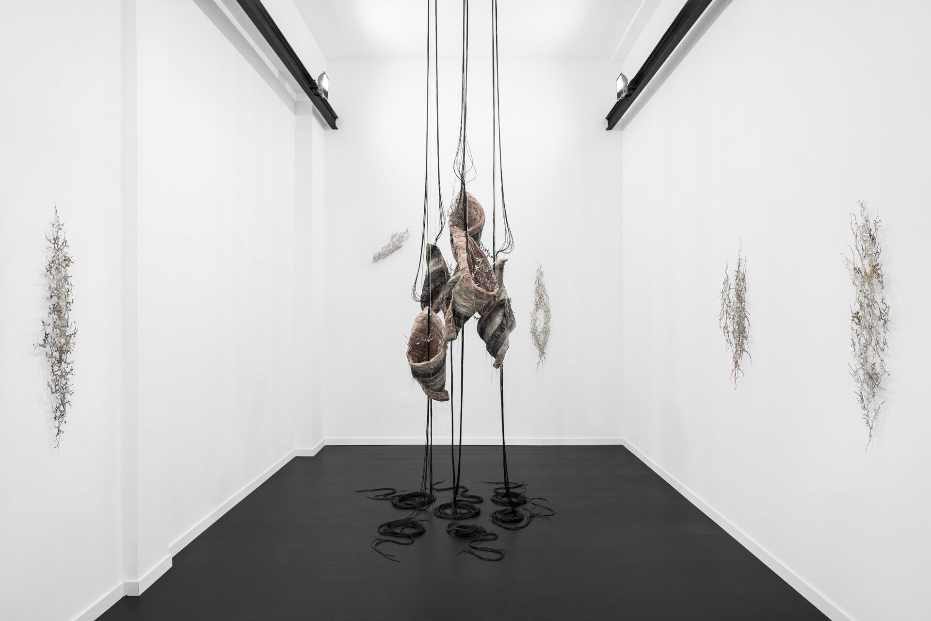 For their second solo exhibition in Milan, the artists present a recent series of sculptures and assemblages. The central work, “Behind the mouths gate something is stirring, is flickering” consists of six objects that hang from the ceiling on a long, rhizomatic structure that also winds across the floor. The…