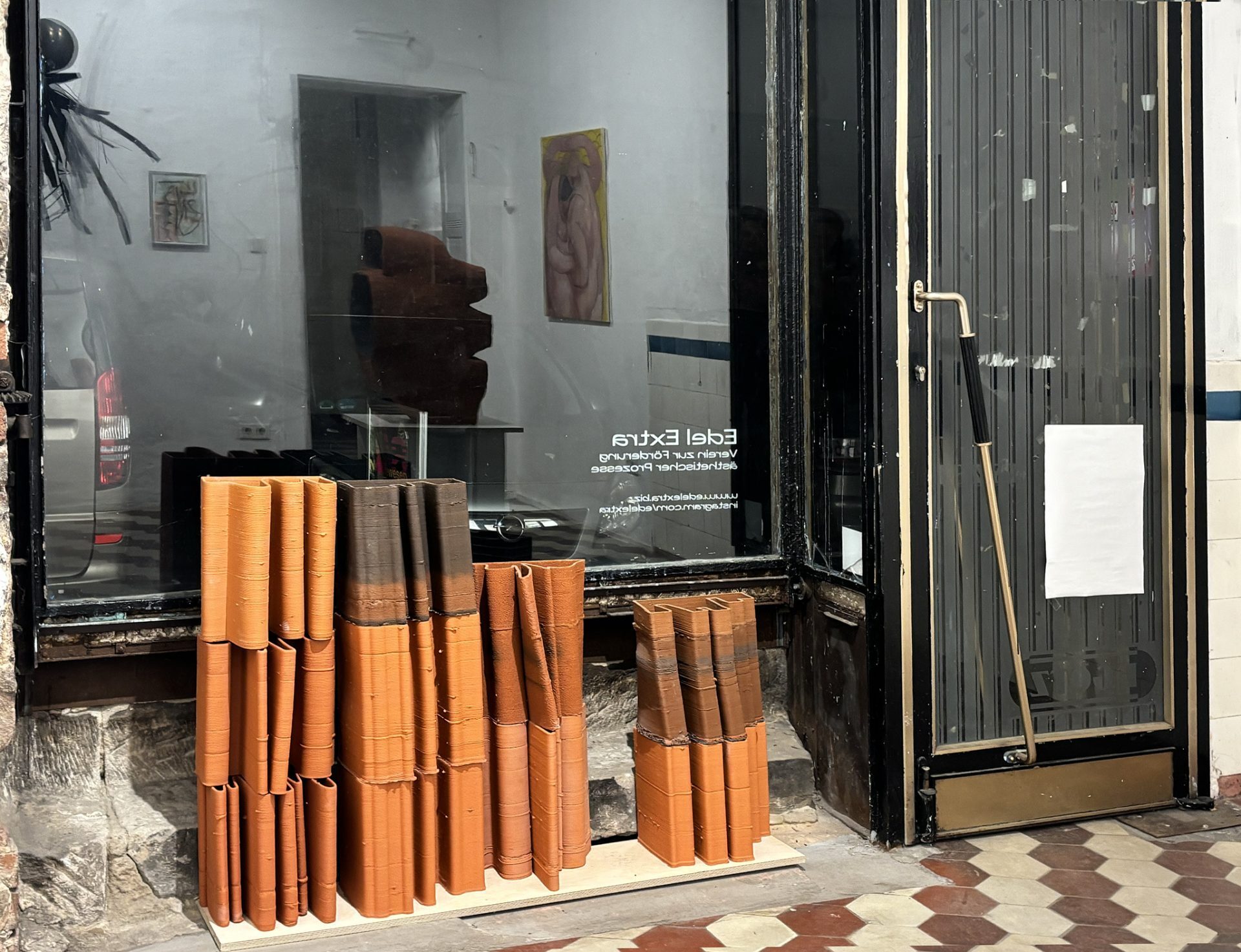 The idea for the exhibition emerged from the constant experience of simultaneous presence and absence, from a confusion of the feeling of “Where am I?”. When one is continually traveling back and forth, the sense of this question can get lost. What does “where” even mean then? Living as commuters between two places, Jennifer Jordan and Jens Nippert experience incongruent senses of place. With this exhibition, they want to build a bridge between Berlin and Nuremberg. For Nie Da Gewesen…