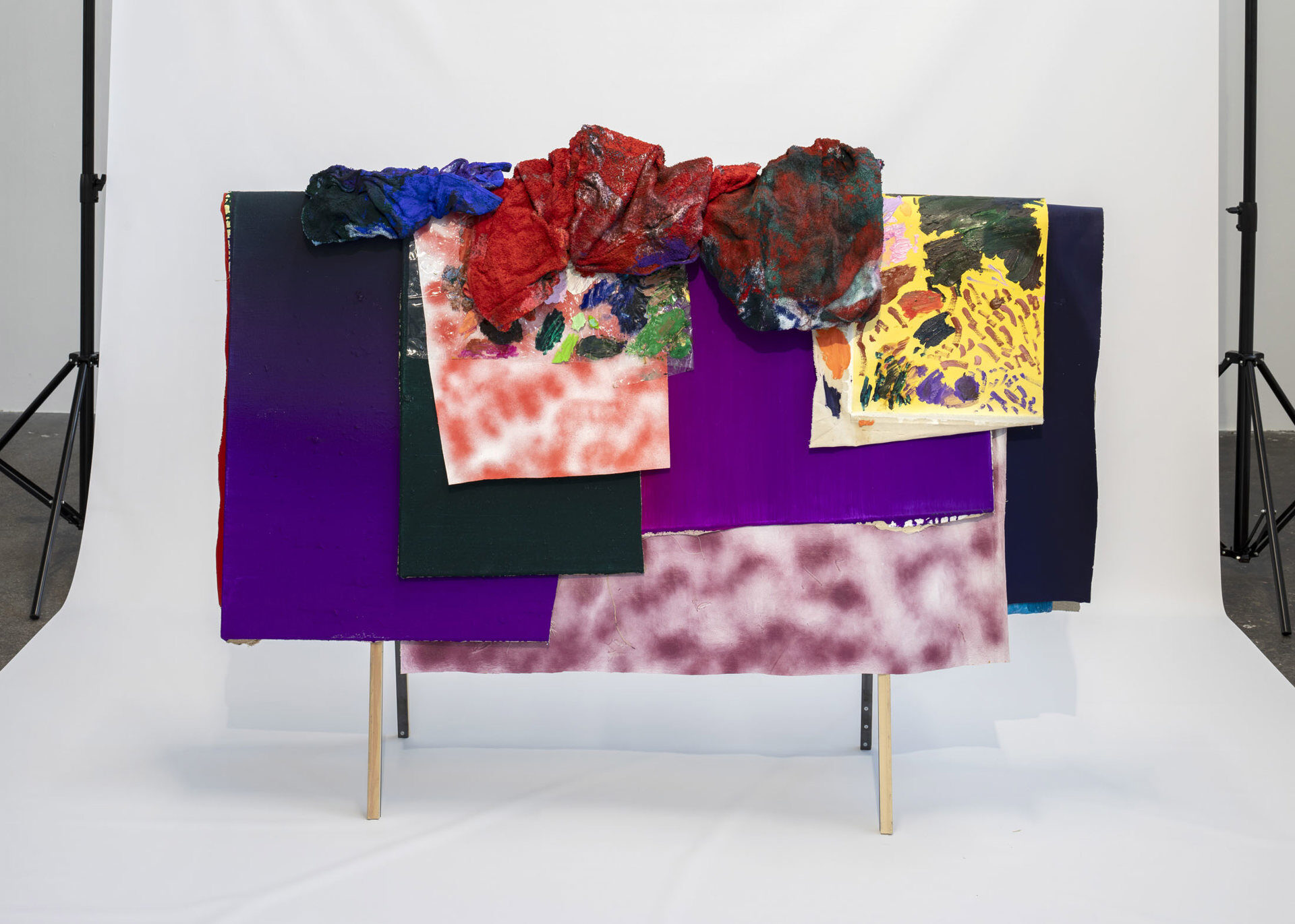 Rot ist eine schnelle Farbe (Red is a fast colour) – this sentence refers to a scene in the Austrian TV series Schlawiner, in which two regulars philosophise about colour perception in the context of motor racing. Years earlier, David Roth (born 1985 in Oberpullendorf, AT) had already read about ‘fast’ and ‘fleeting’ colours while reading Leon Battista Alberti’s Della Pittura – the standard work on the art of painting written in the 15th century, which is regarded as the first modern theory of painting. Roth’s work moves between these two poles – art-theoretical analysis and everyday philosophical humour – as a serious yet playful questioning of what painting is – and can be. David Roth’s artistic work always revolves around a central question: What is painting – and what can it be? Also: What do we expect from it?