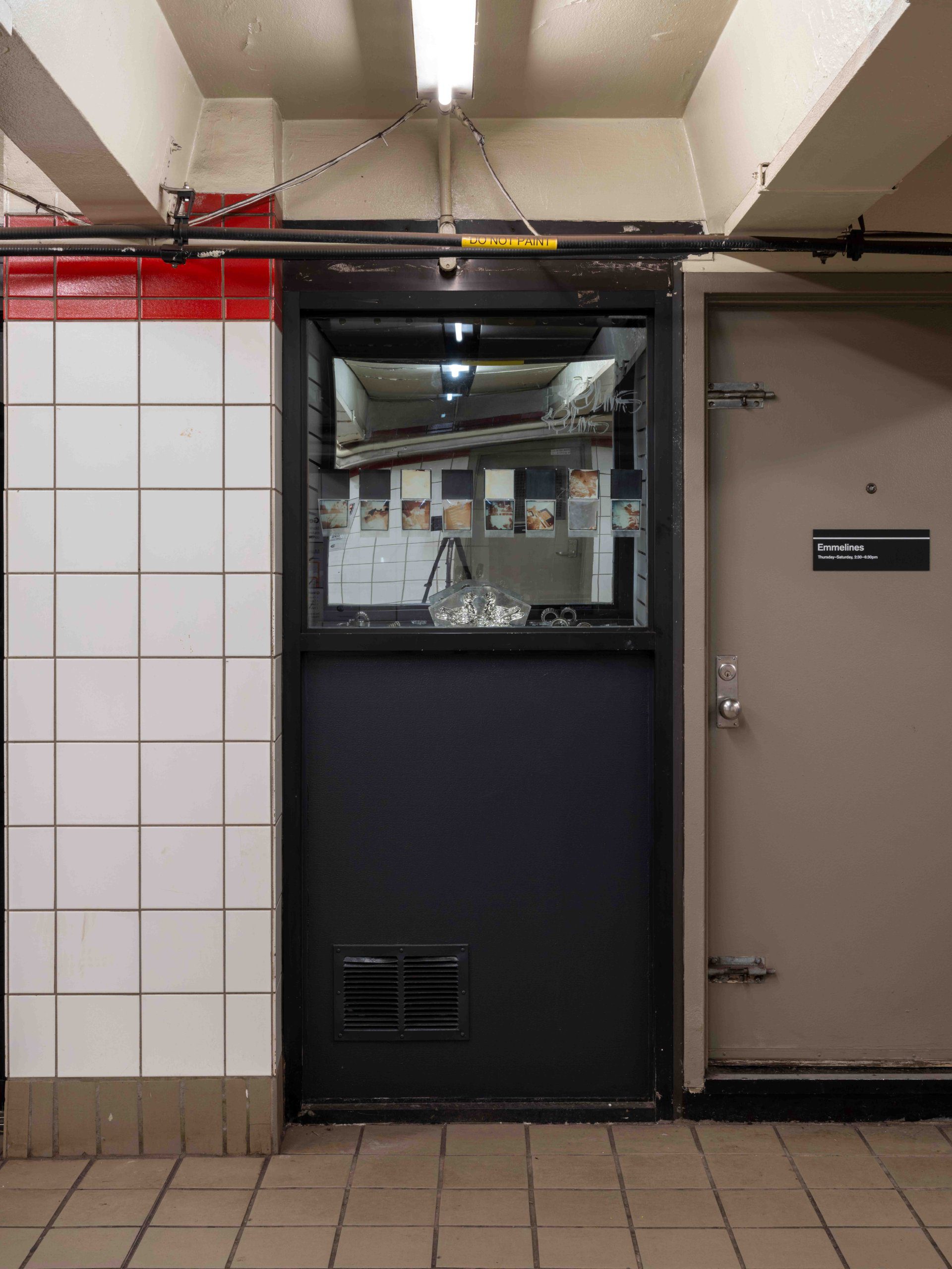The window displays a tableau of rephotographed negatives from Wham! in China: Foreign Skies, the second cut made of the travelogue documenting the musical group’s 1985 tour. Entering, the text of a postcard prop from the film Mysterious Skin is available as a takeaway at the desk. A painting impressed from an old family photo may be visited in the office.