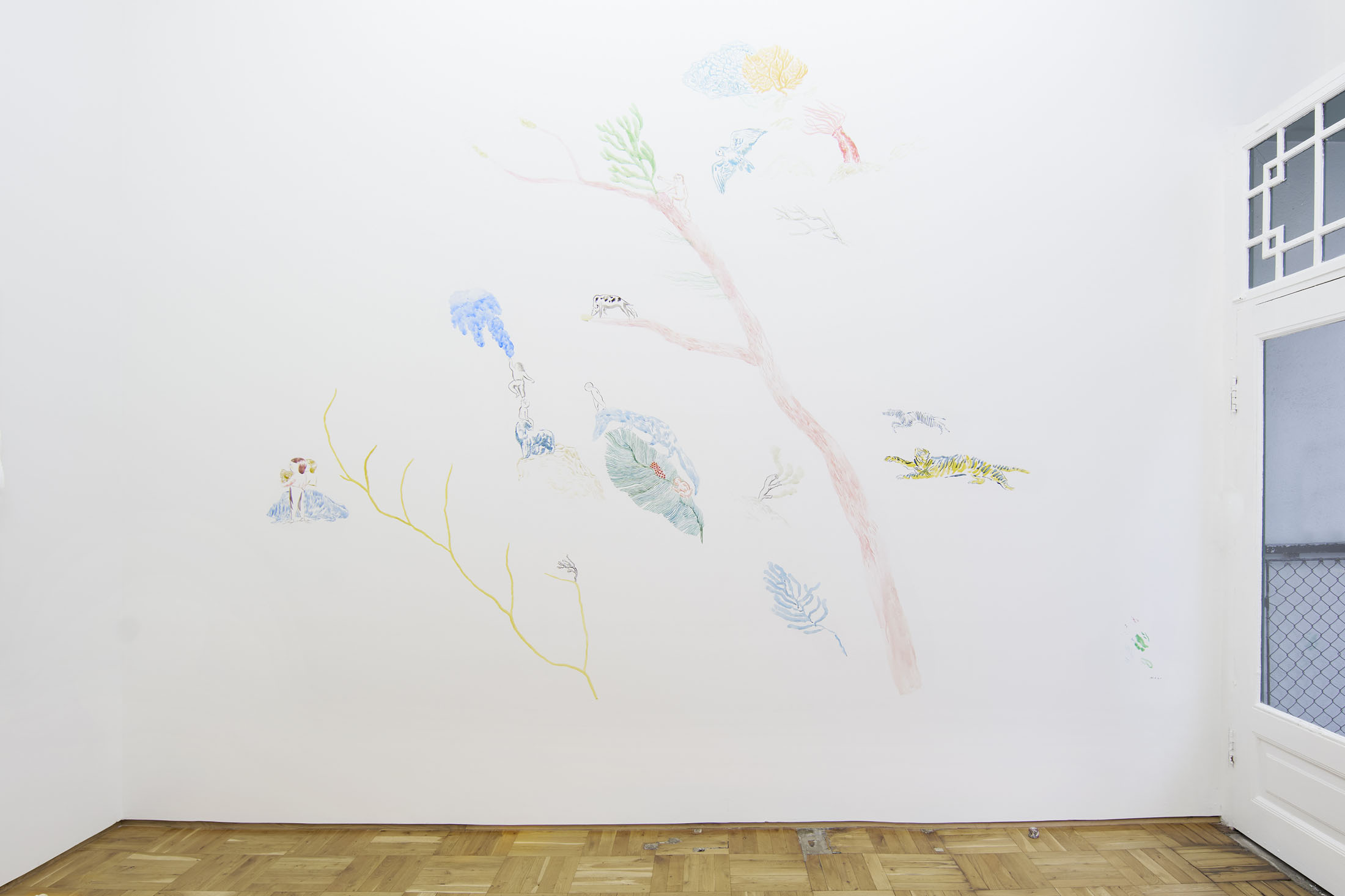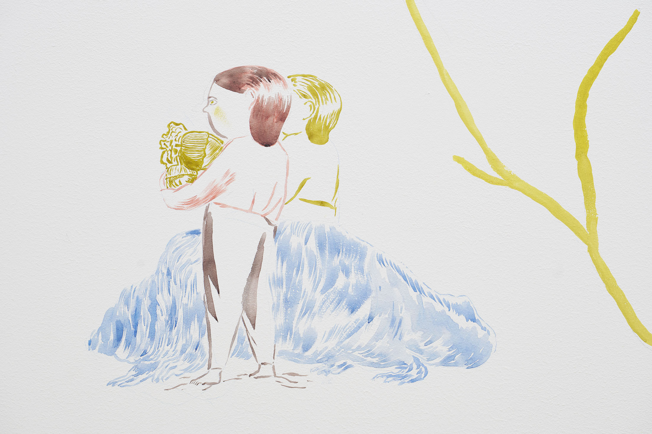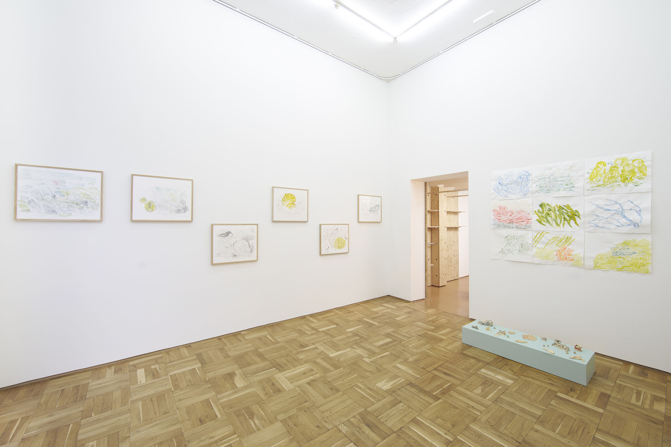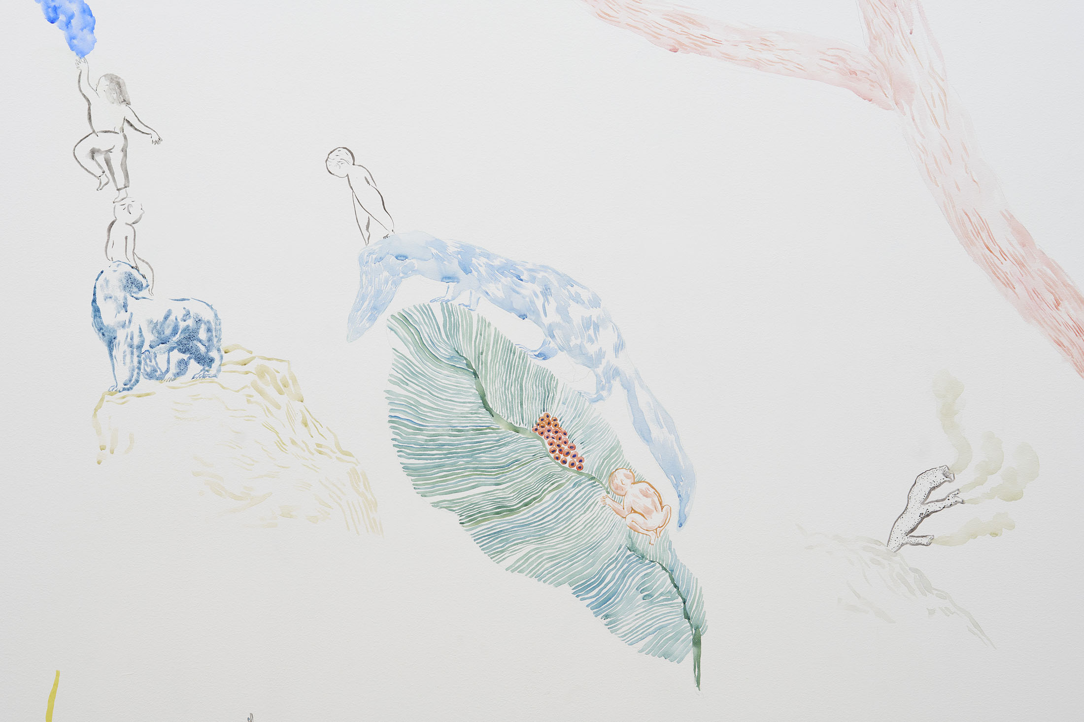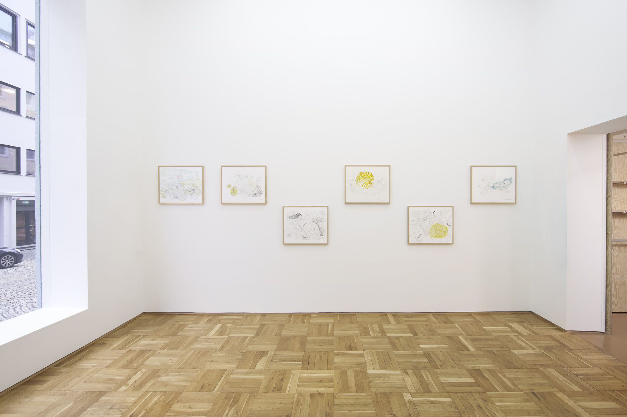 Through pencil drawings and watercolours, wall paintings and ceramic figures, she lets improvisation and the flow of drawing shape intricate universes that one can dive into – and lose oneself within. The works consists of organic compositions that address the loss of…