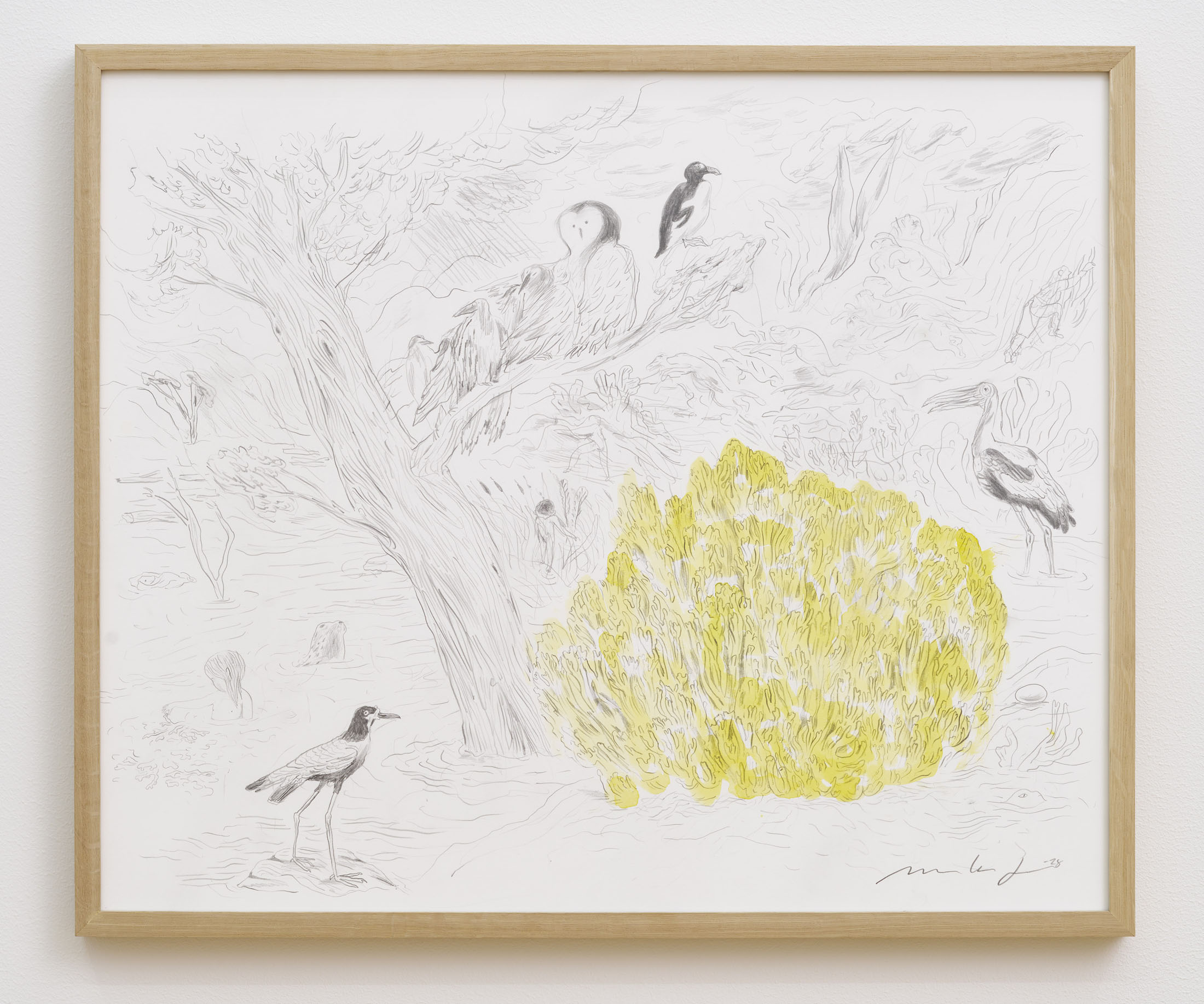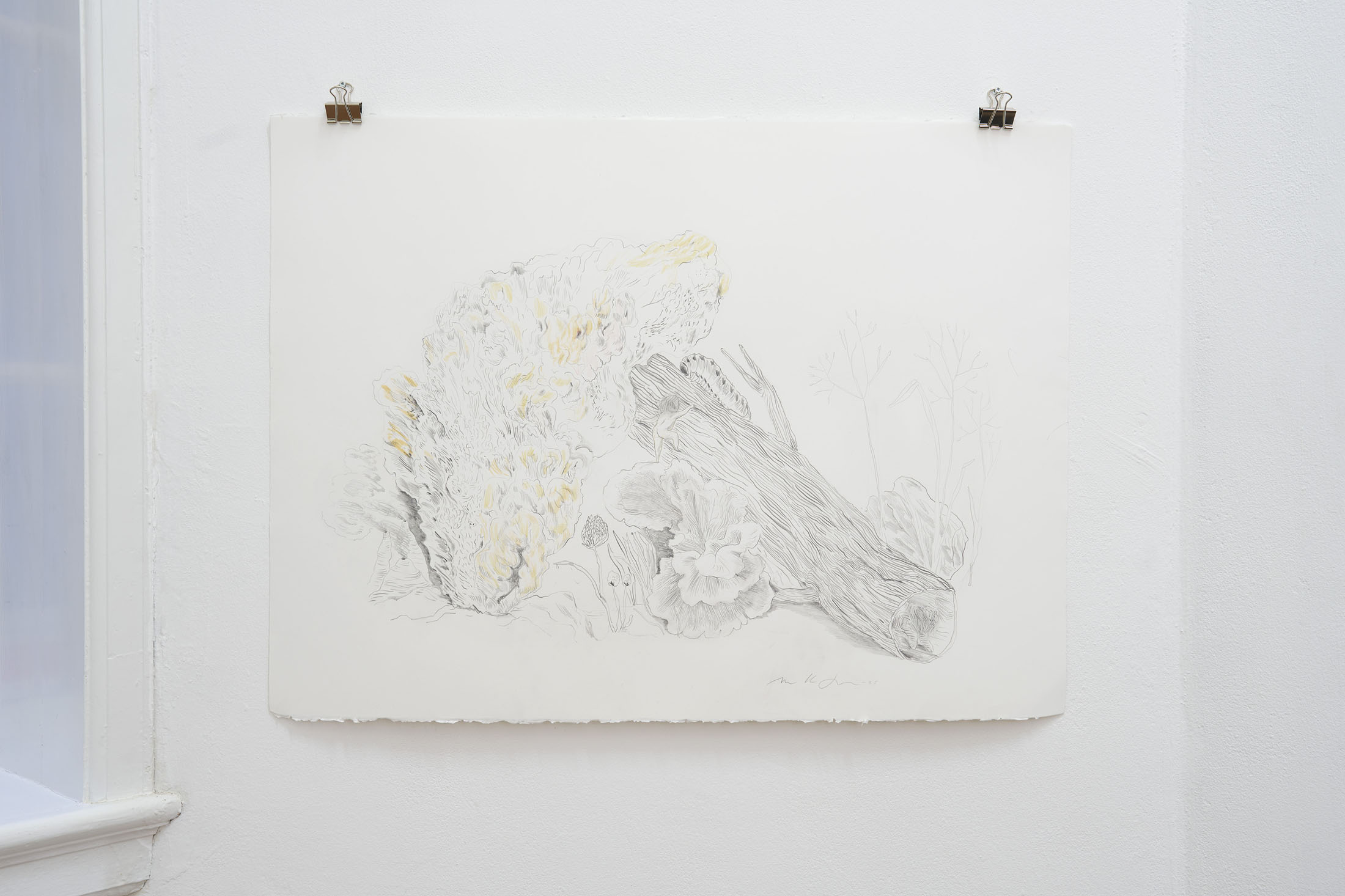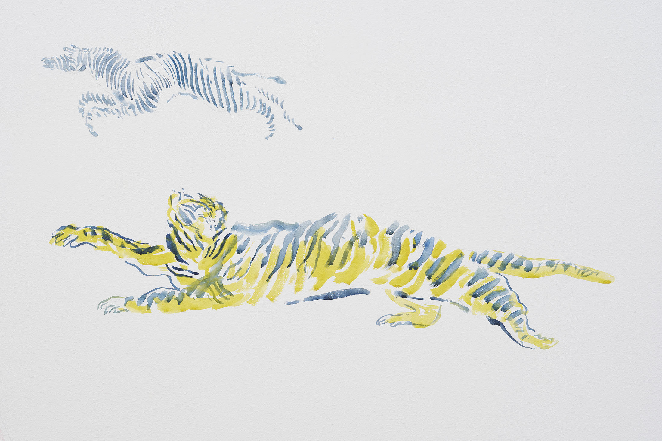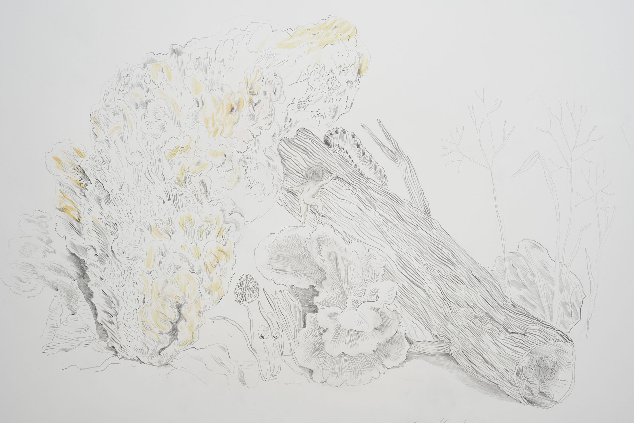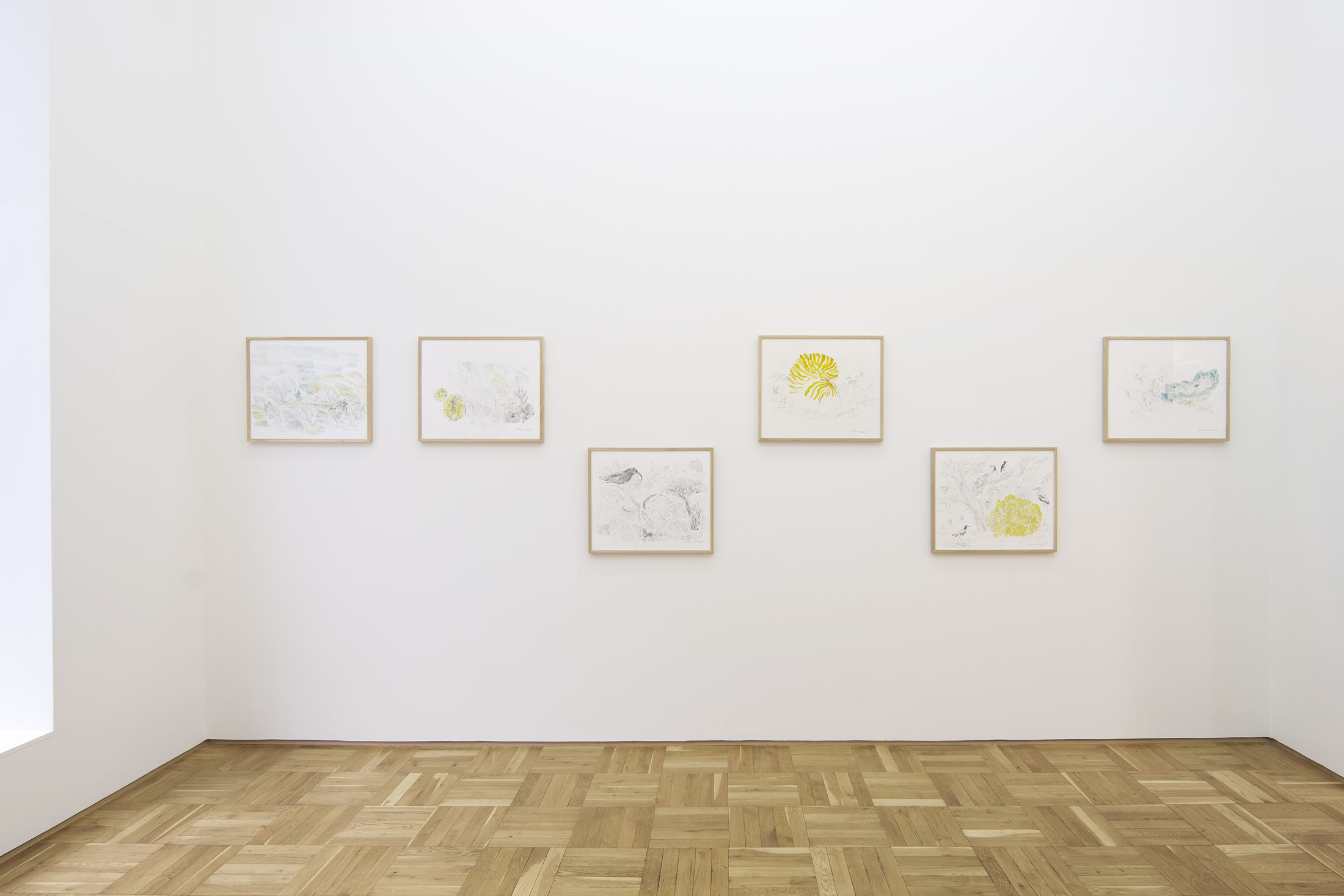 Through pencil drawings and watercolours, wall paintings and ceramic figures, she lets improvisation and the flow of drawing shape intricate universes that one can dive into – and lose oneself within. The works consists of organic compositions that address the loss of…