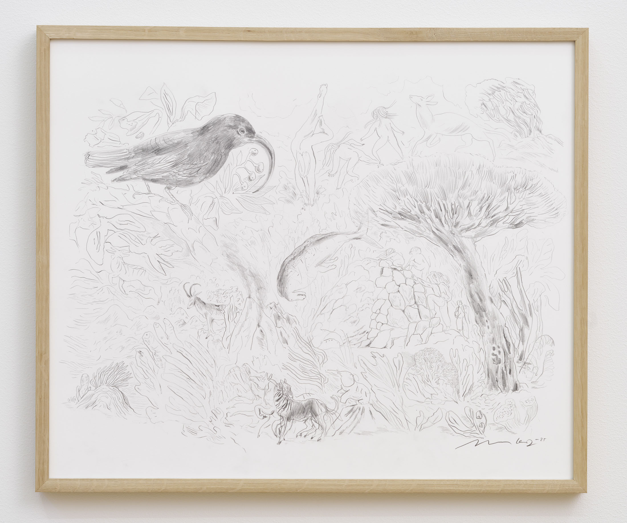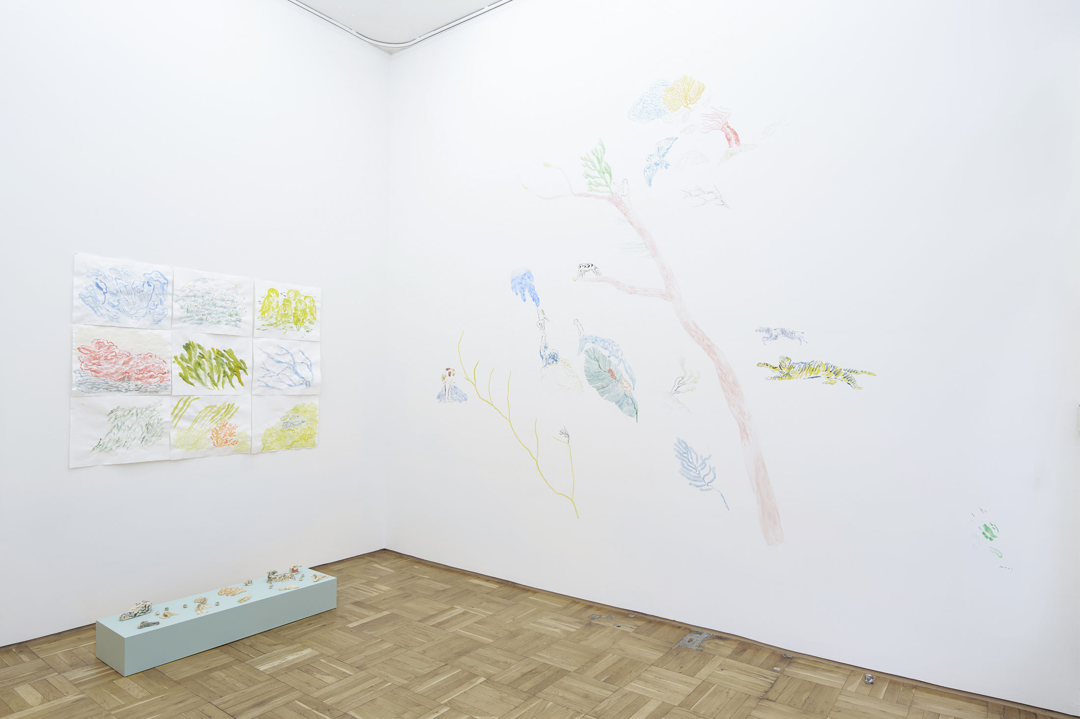 In her works at Entrée, Kanstad Johnsen plays with proportions, magnifying the microscopic and juxtaposing it with familiar creatures. It can be experienced as an underwater landscape where past, present, and future flow together. One of her sources of inspiration is the Chauvet Cave in southern France, home to the oldest known cave paintings.