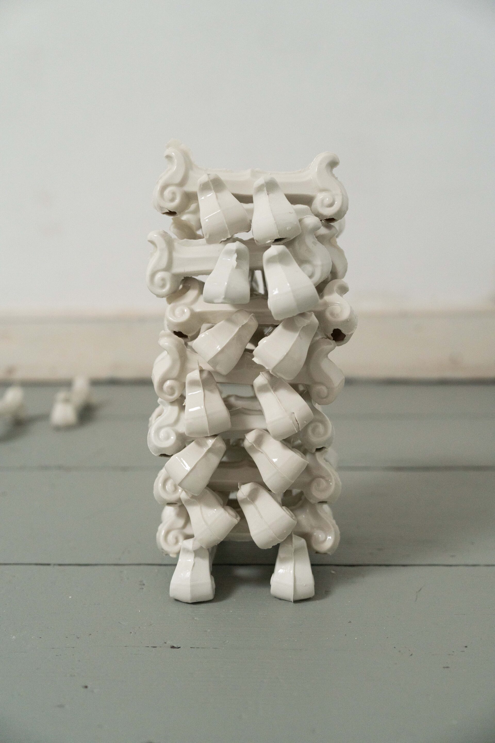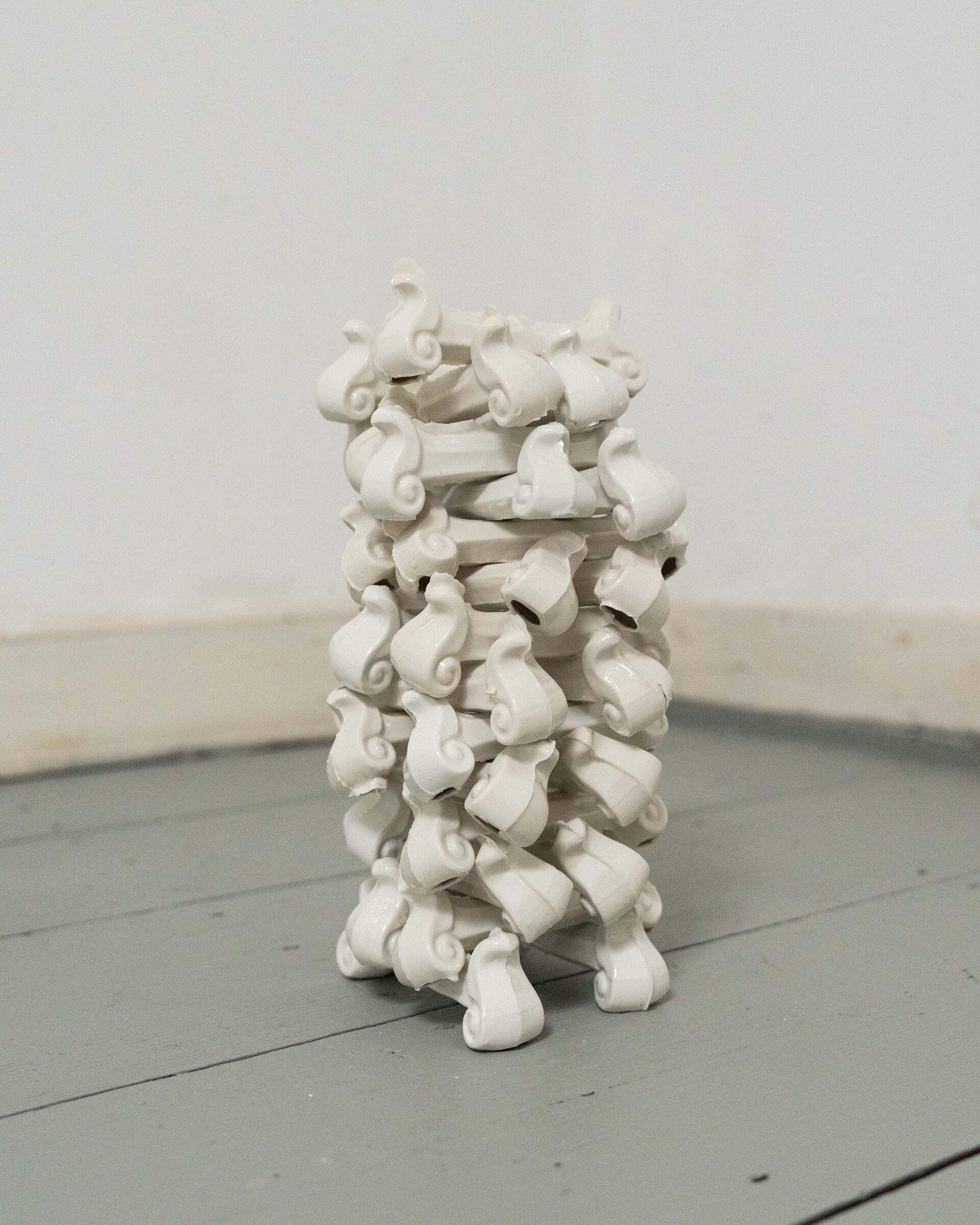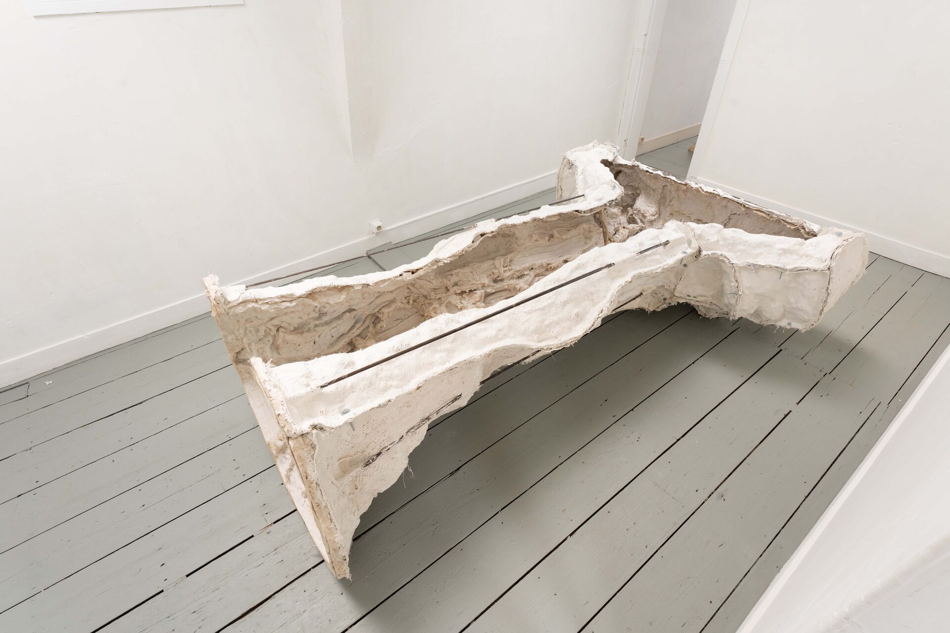 Her sculptural practice investigates how form can function as a carrier. Drawing from the body and architecture, her work evolves through a somatic process in which the body functions simultaneously as measure and limit. She approaches the world as a field of infinite folds, unfolding not only in material form but also through experience.