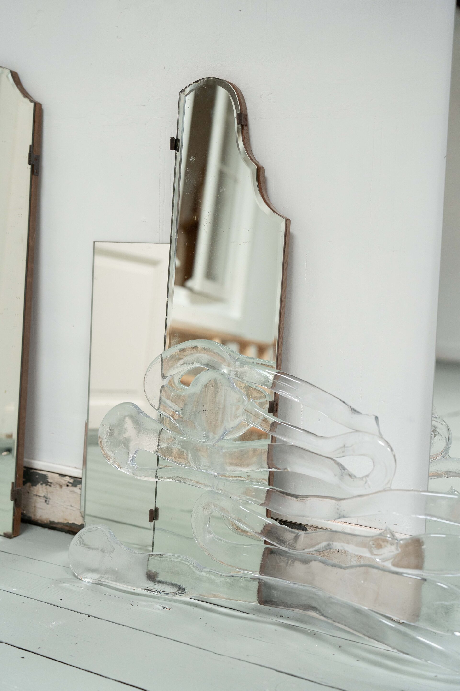 The works of Krystel Geerts are united by the intangible nature of their surfaces and materiality. They appear fragile and open, like blurred memories of Baroque architecture, not least because the process of their creation is inscribed in the works.