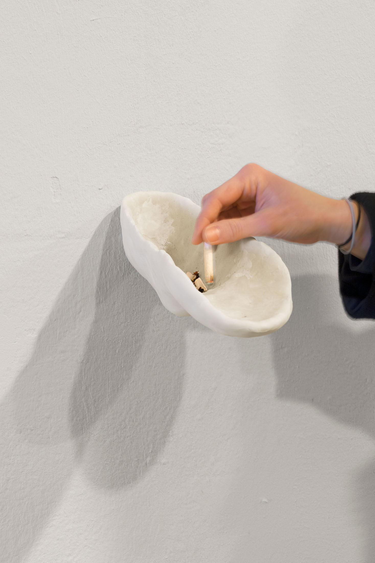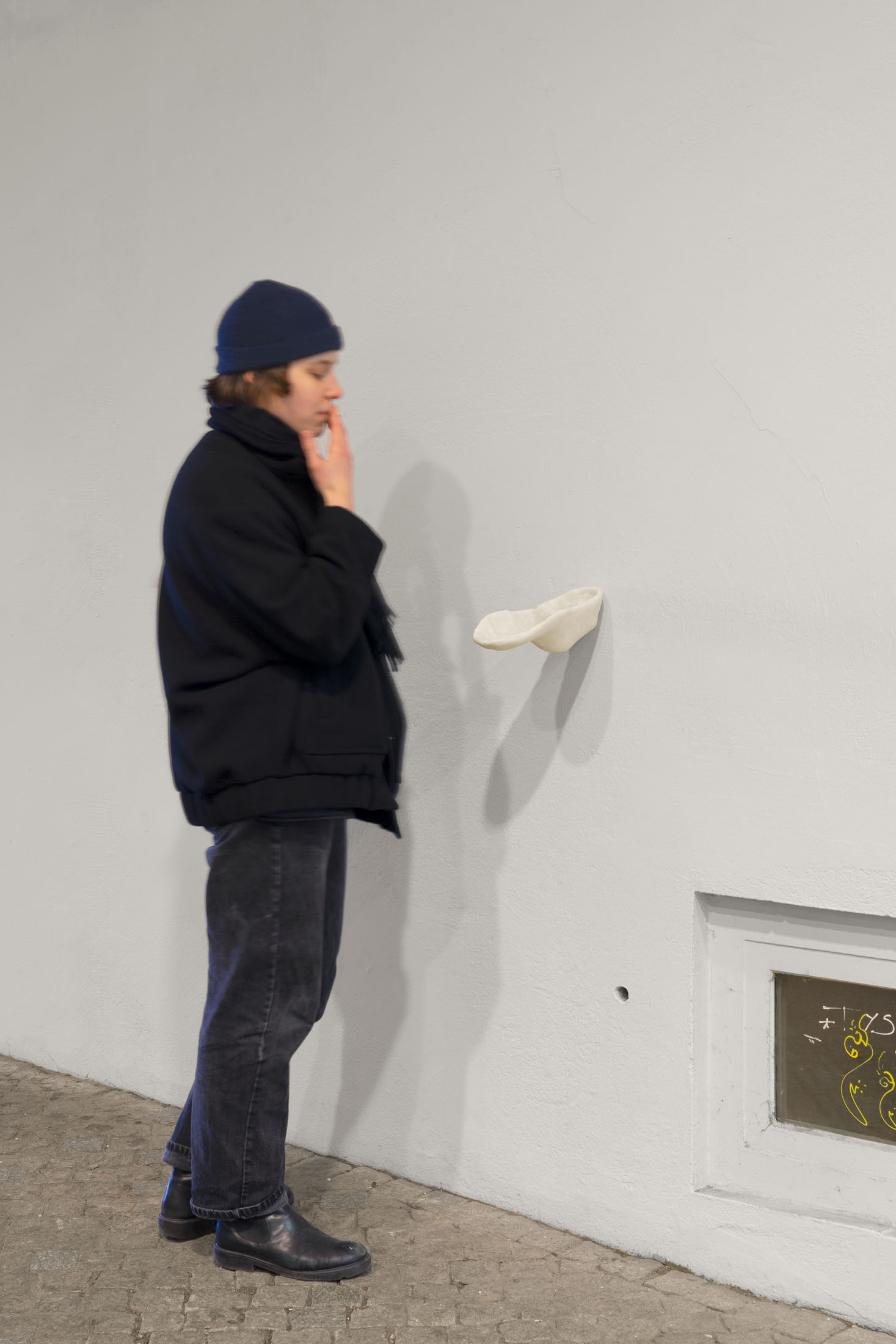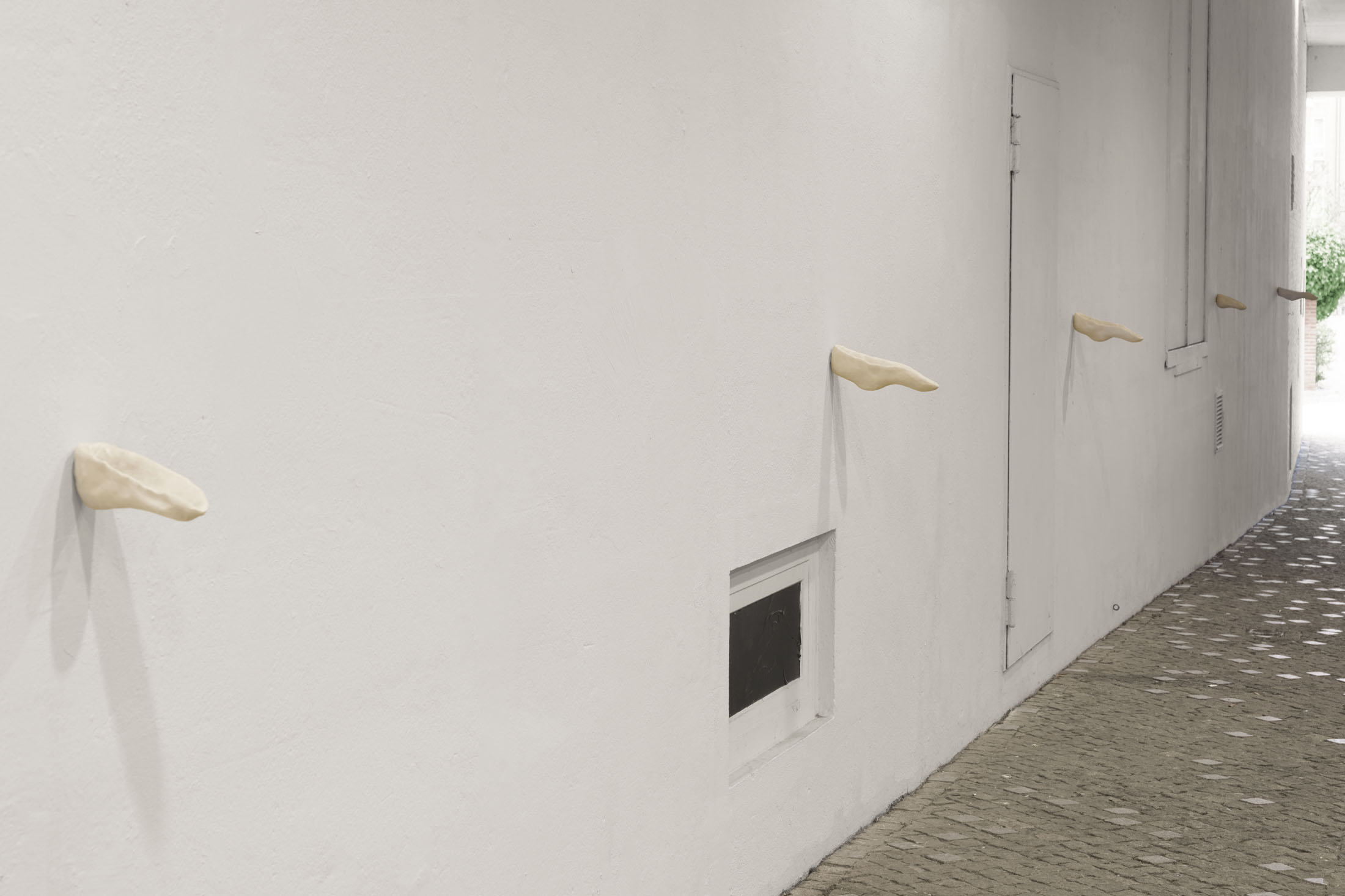 The conversation around Waelder’s exhibition started with the image of a child standing before a family bookshelf. Still very small, the child could only reach the books on the lower shelves, but over the years and as they became taller, more shelves and different books could be accessed. This access, reaching up or bending down is something one regularly performs in front of books. Accordingly, knowledge and memory are also connected to reach. Just as the body and language are intertwined.