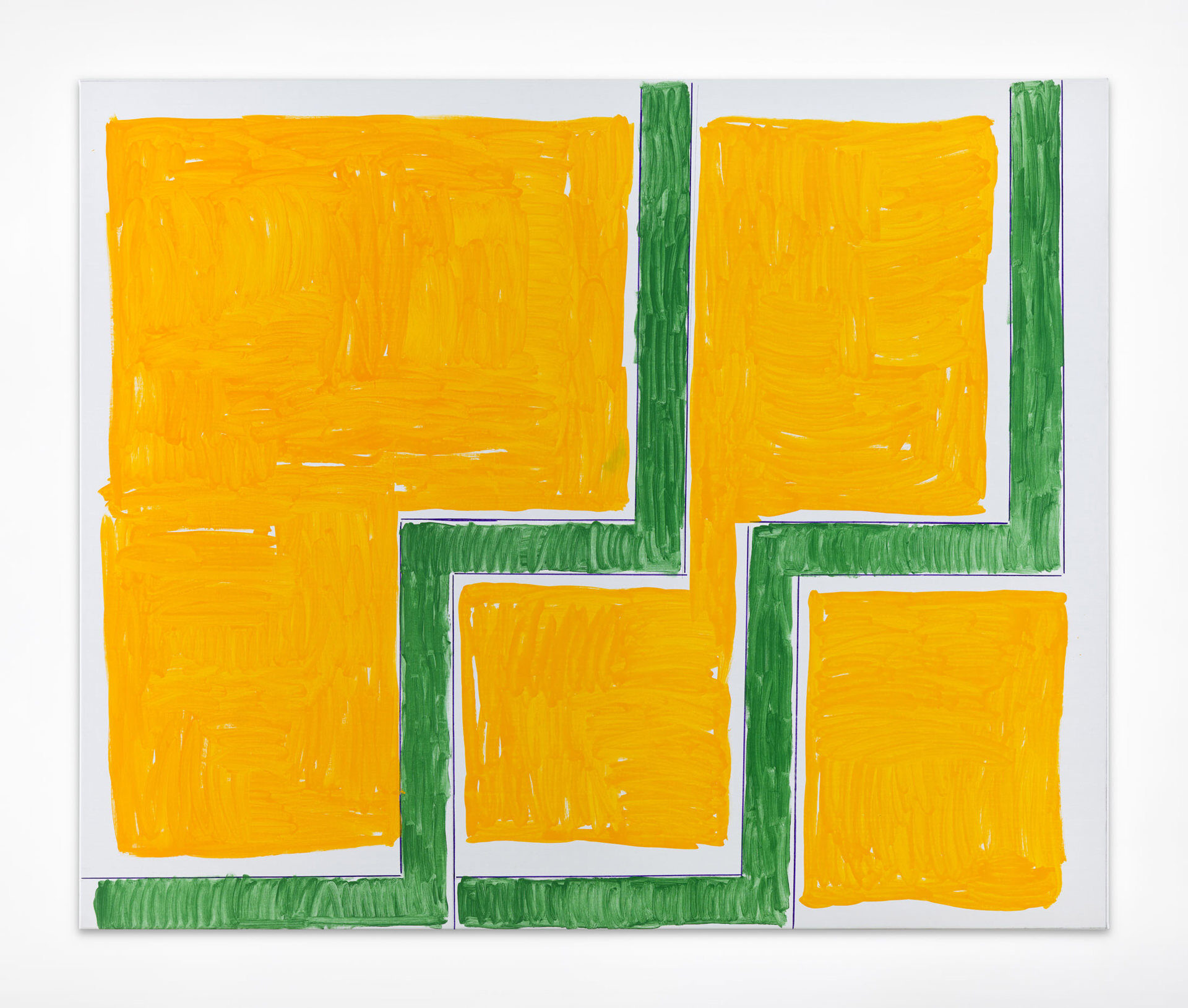 Piet Mondrian’s paintings, especially those painted from 1919 onwards, began to enter what he called ‘a real and completely human harmony.’ In a way, this synthesis can also be seen in the new paintings Ulrich Wulff presents in his first solo exhibition in Spain: his paintings permeate and merge the concrete and self-sufficient world of painting with the lived experiences of the very lives in our everyday world.