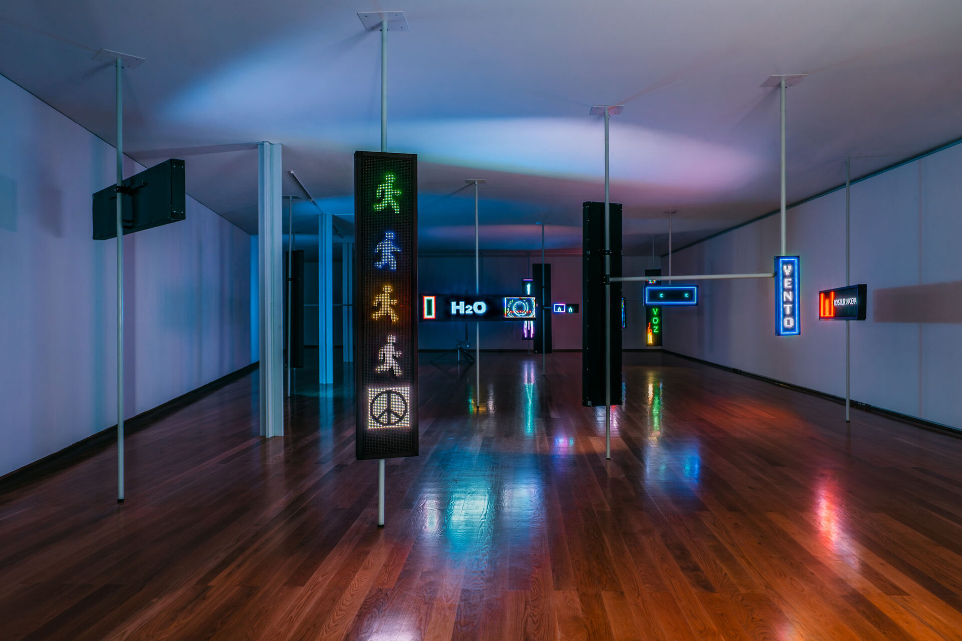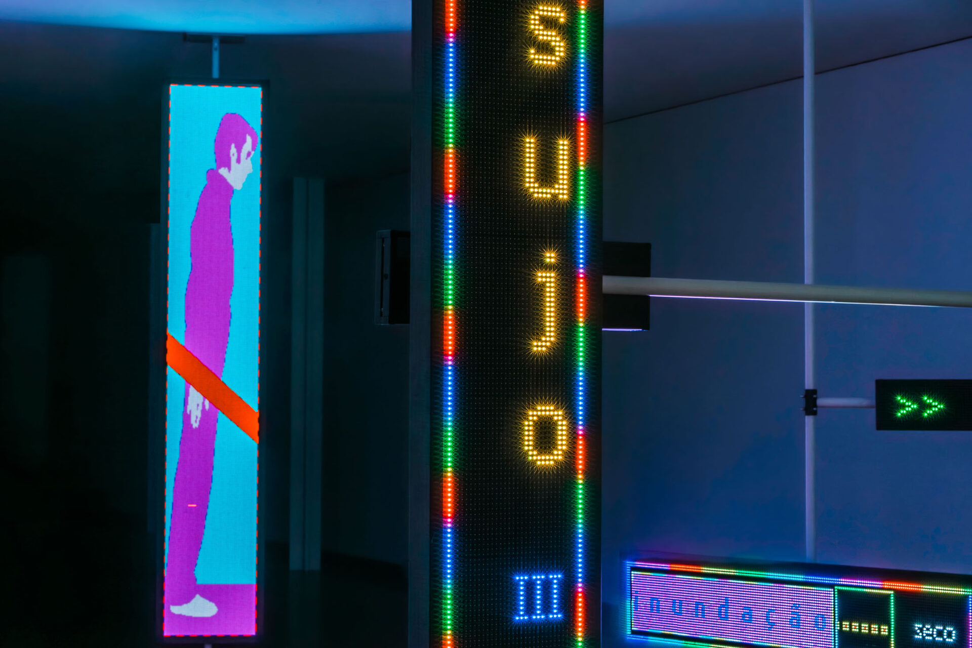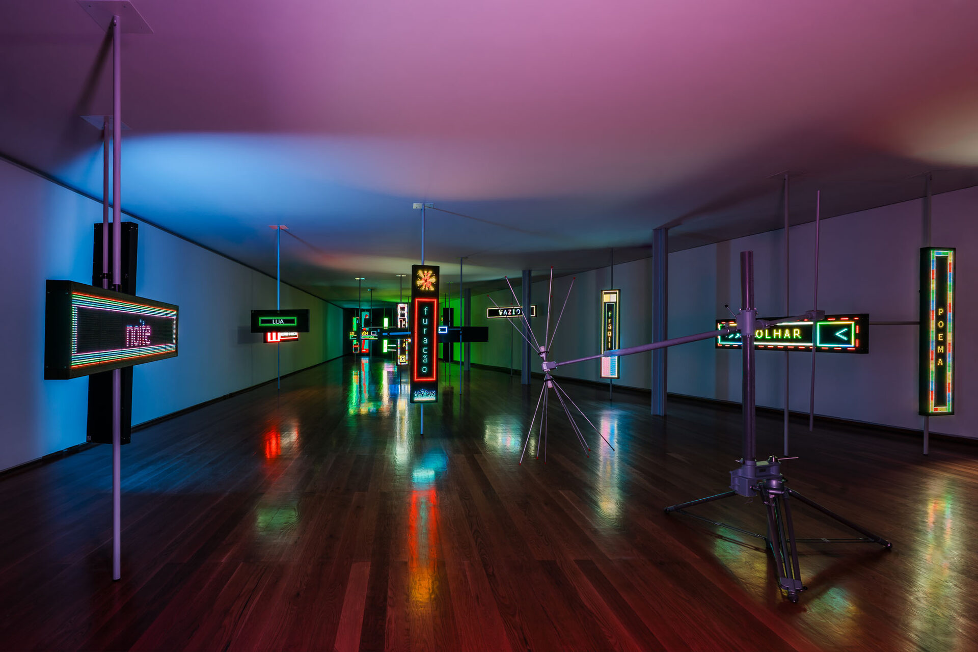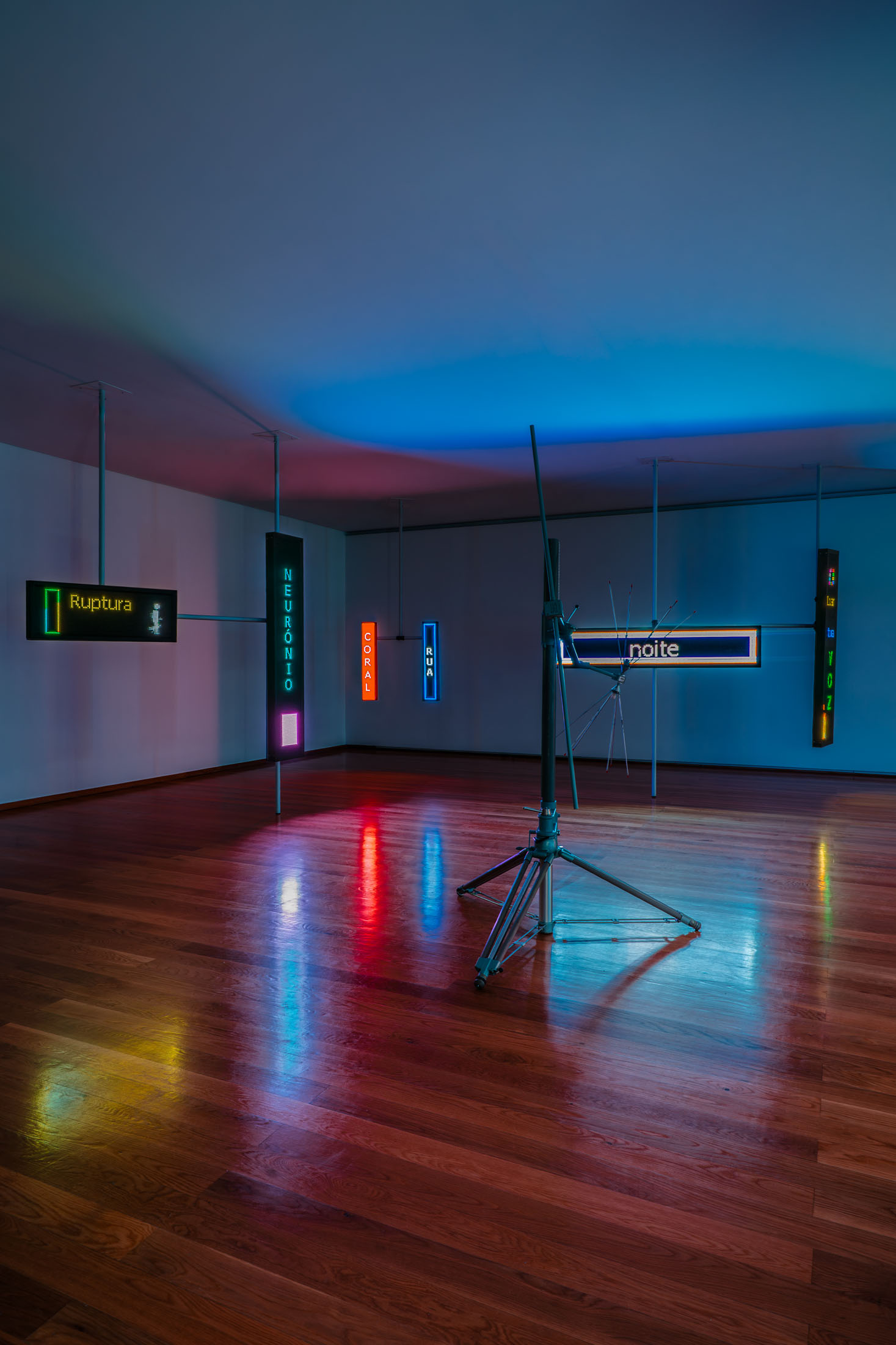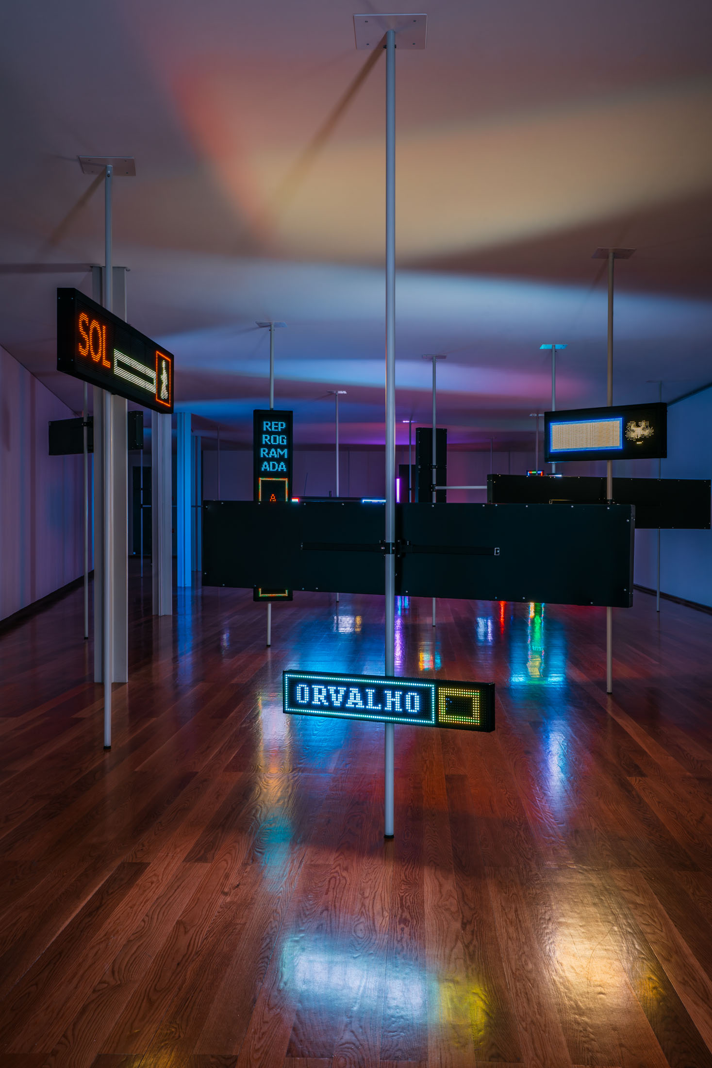 In Collapse, the artist presents an installation conceived for the space of Galeria Municipal do Porto that choreographs light, architecture, and language. Returning to the LED as an emitting device and cultural sign, he explores its apparent obsolescence as a metaphor for ruin and technological excess. The work evokes the urban landscape through visual and textual symbols, gathering echoes of earlier pieces and rehearsing new poetic possibilities. Between invention and critique, Pestana reaffirms experimental poetry as a tool for interrogating the present and our…