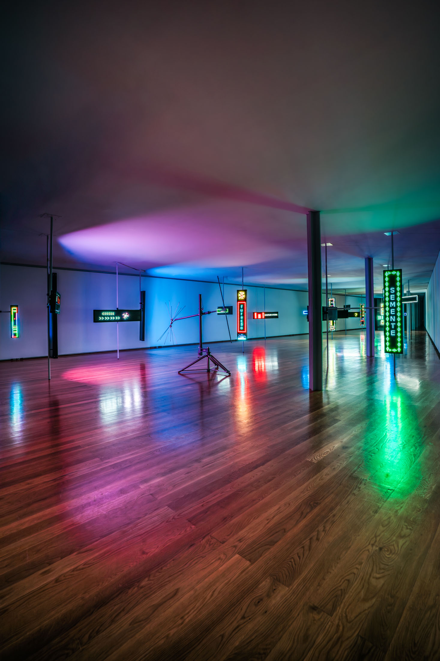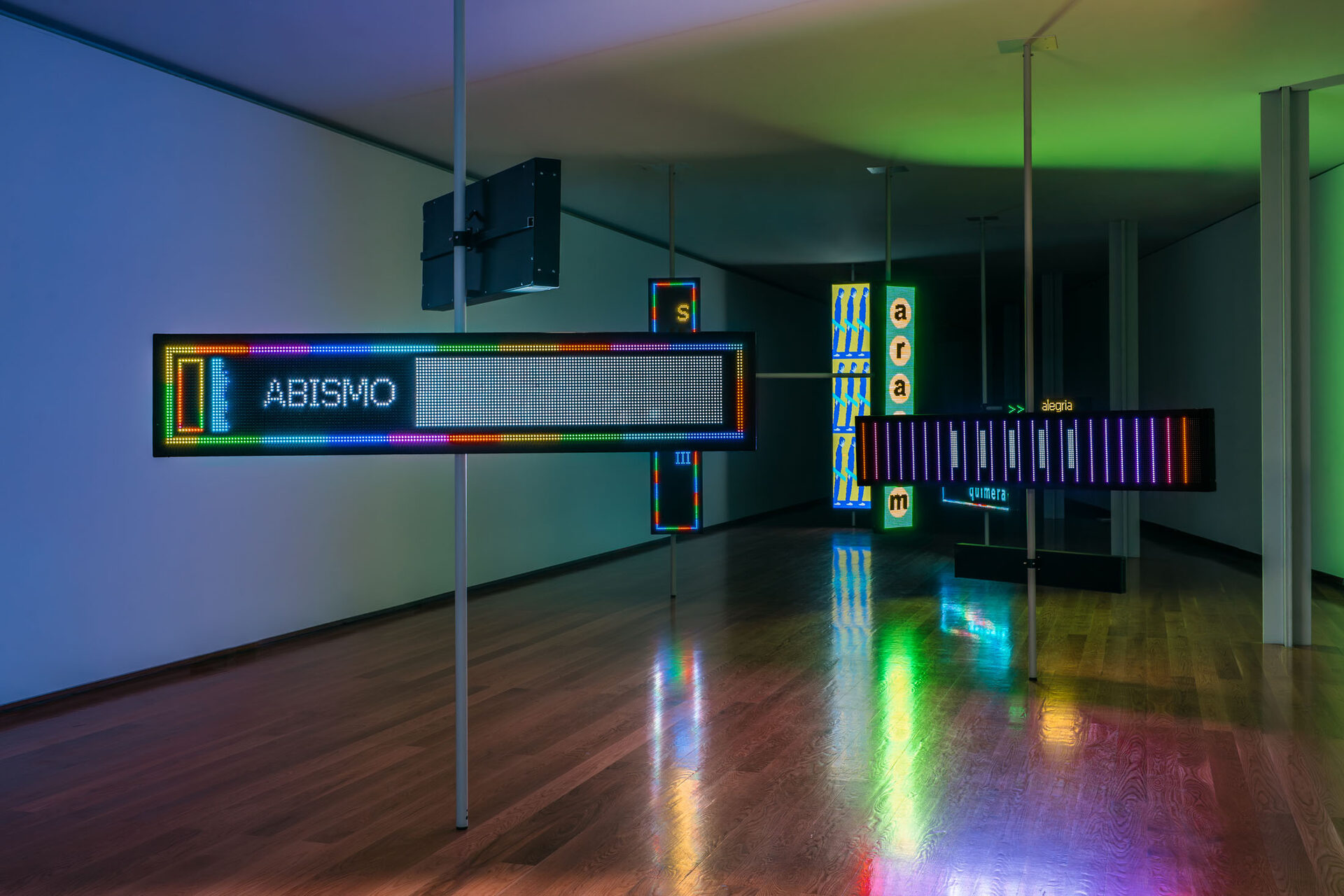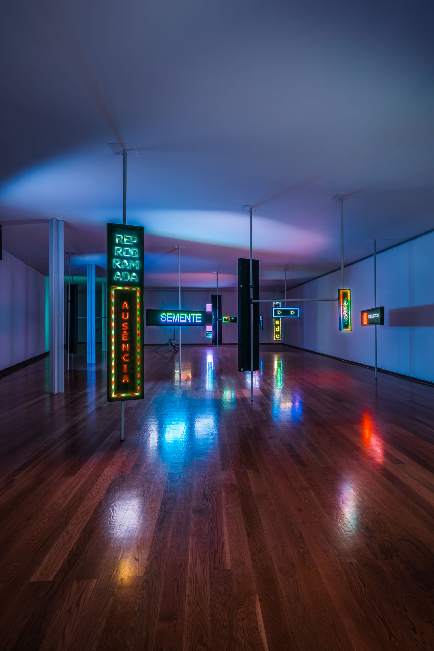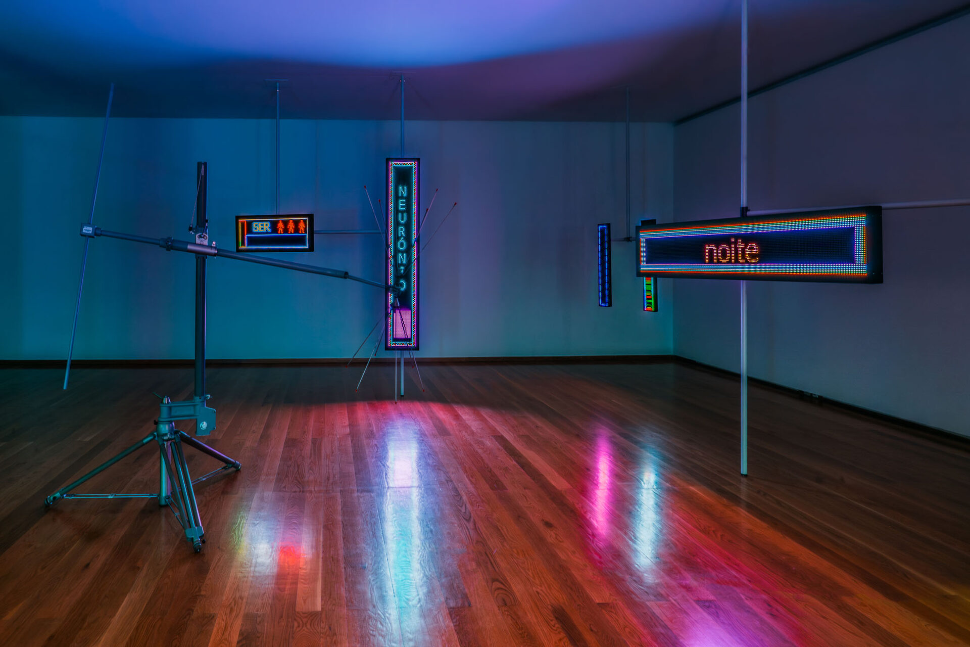 In Collapse, the artist presents an installation conceived for the space of Galeria Municipal do Porto that choreographs light, architecture, and language. Returning to the LED as an emitting device and cultural sign, he explores its apparent obsolescence as a metaphor for ruin and technological excess. The work evokes the urban landscape through visual and textual symbols, gathering echoes of earlier pieces and rehearsing new poetic possibilities. Between invention and critique, Pestana reaffirms experimental poetry as a tool for interrogating the present and our…