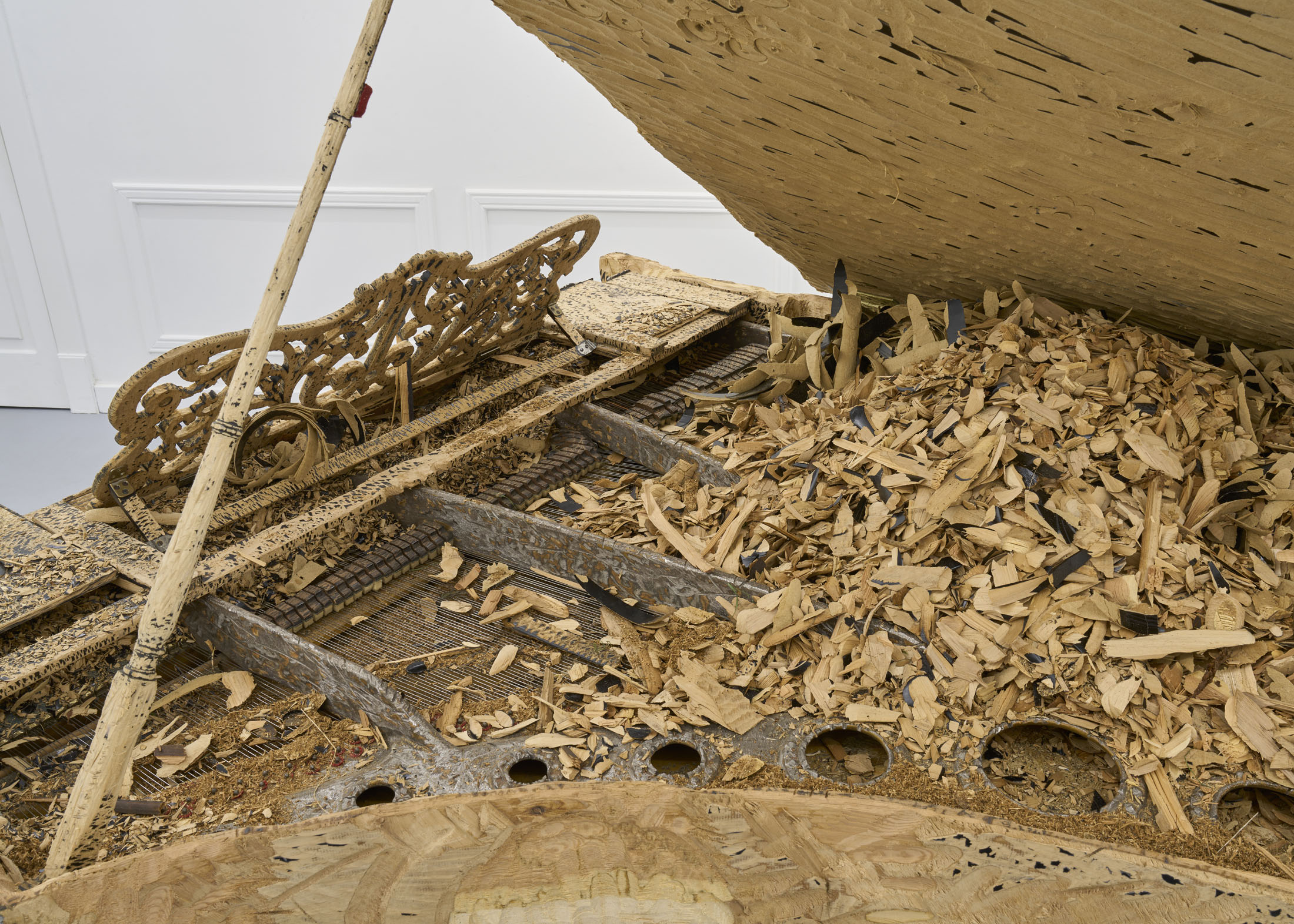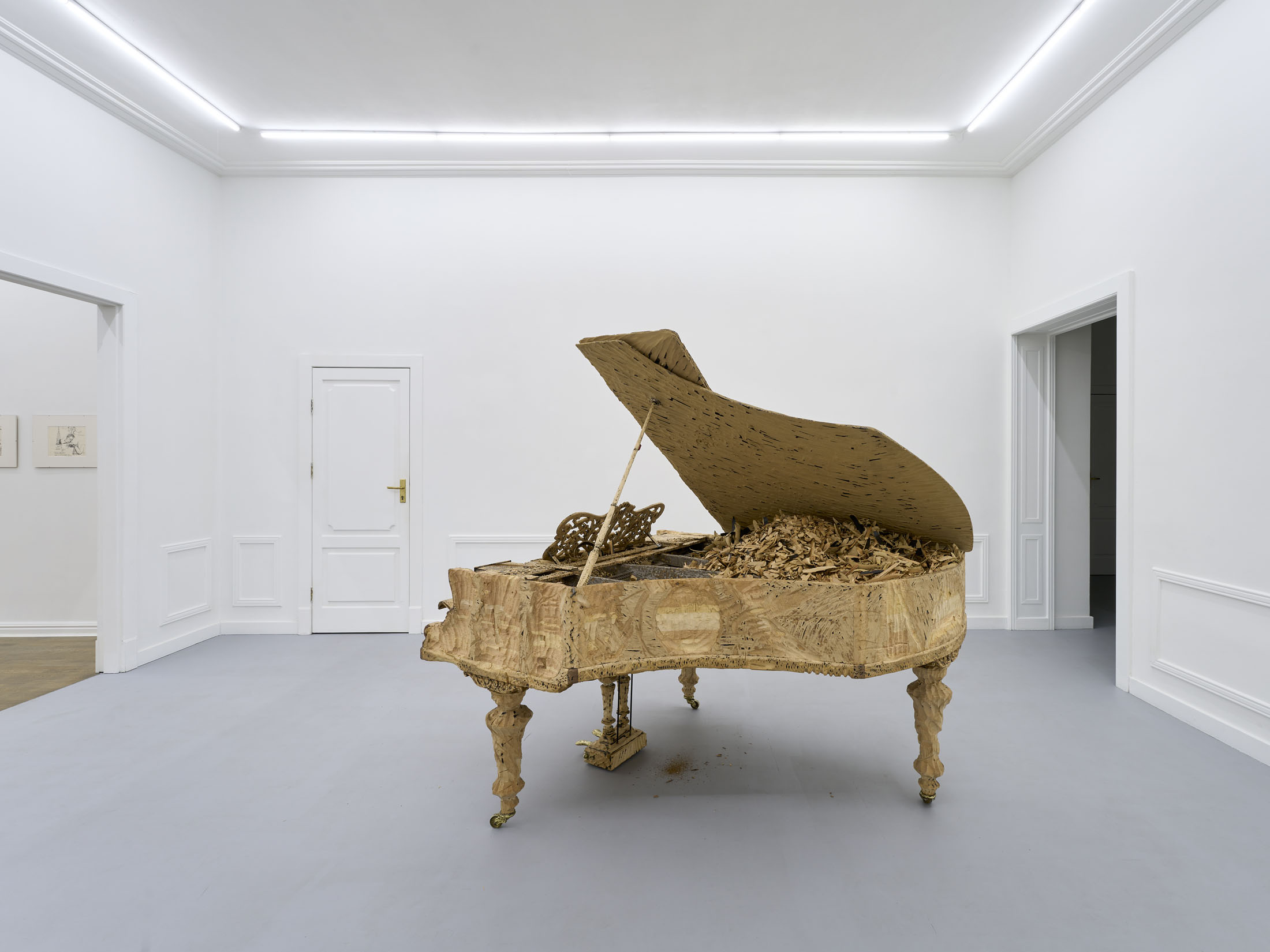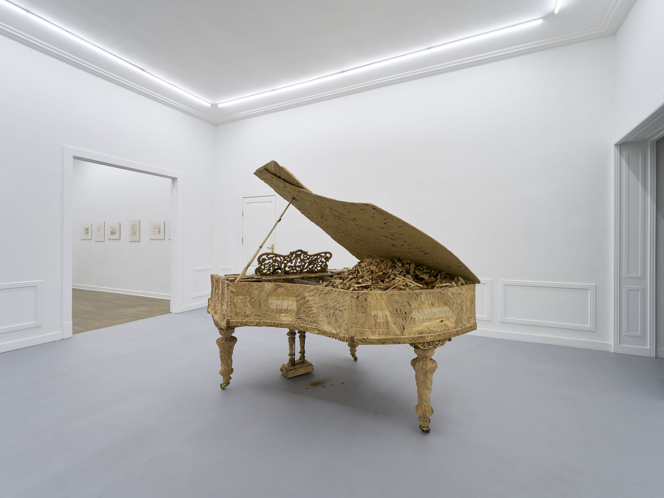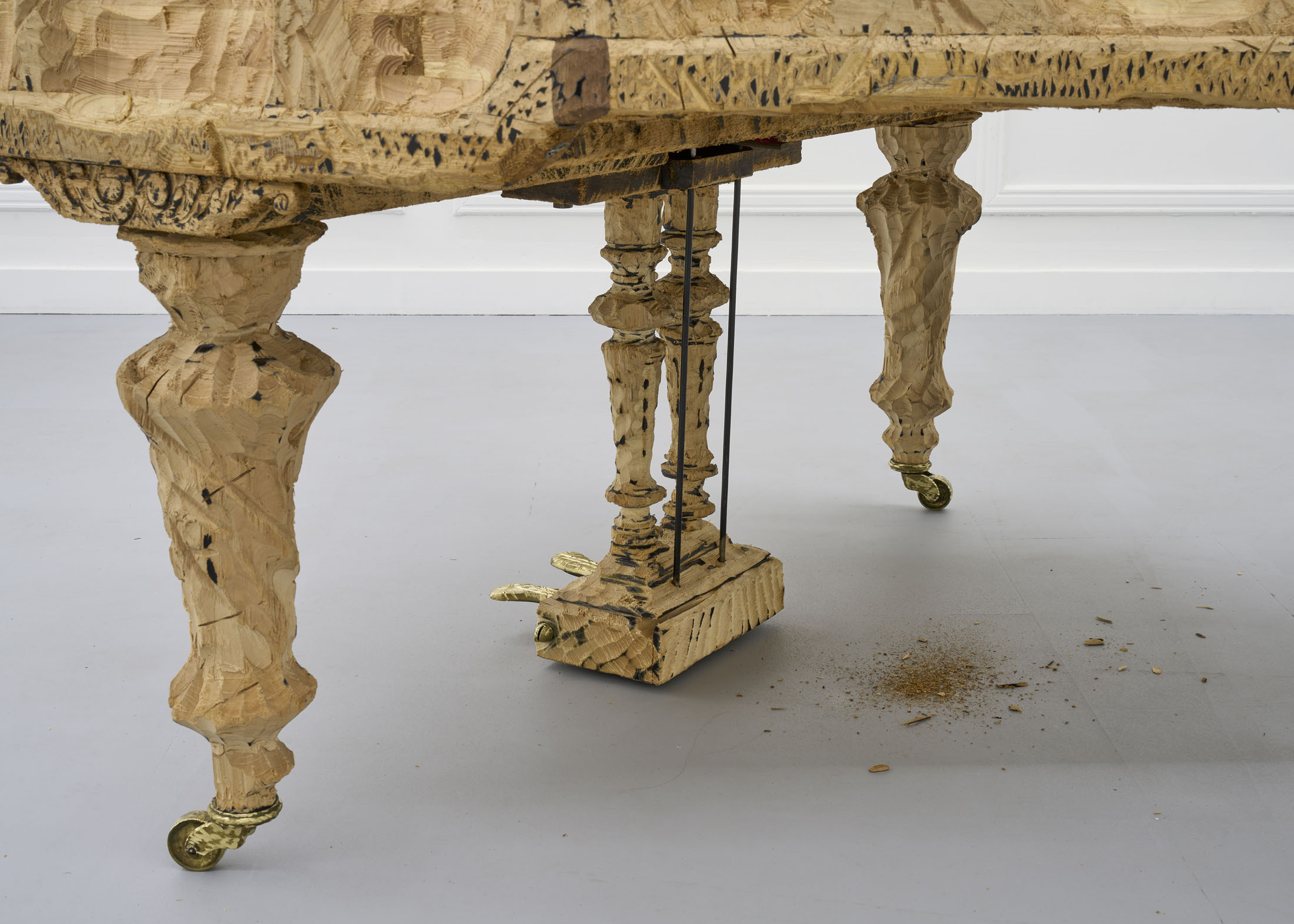 Roman Stańczak’s work is subject to strict internal restrictions and is essentially based on ready-made objects and limited to the idea of inversion. Depending on the form and material, objects are literally turned inside out – like a kettle or a bathtub – or stripped of their outer layer. However, in both cases, the sculptural action is carried out radically, so that the object undergoes an ultimate transformation: a chair becomes a sculpture of a chair, a cupboard becomes a sculpture of a cupboard, and so on. As Jan Verwoert writes in his essay on the artist: “…by virtue of being bare, you would assume, the sculptures [by Stańczak] should have something ‘reductive’ or ‘substractive’ about them. But they don’t. Even if the veneer is gone from the furniture pieces and the coating from the metal, it’s not as though they were missing anything. There is no minus before this equation. Instead, there is a plus. Nothing is taken away. Something is given”.