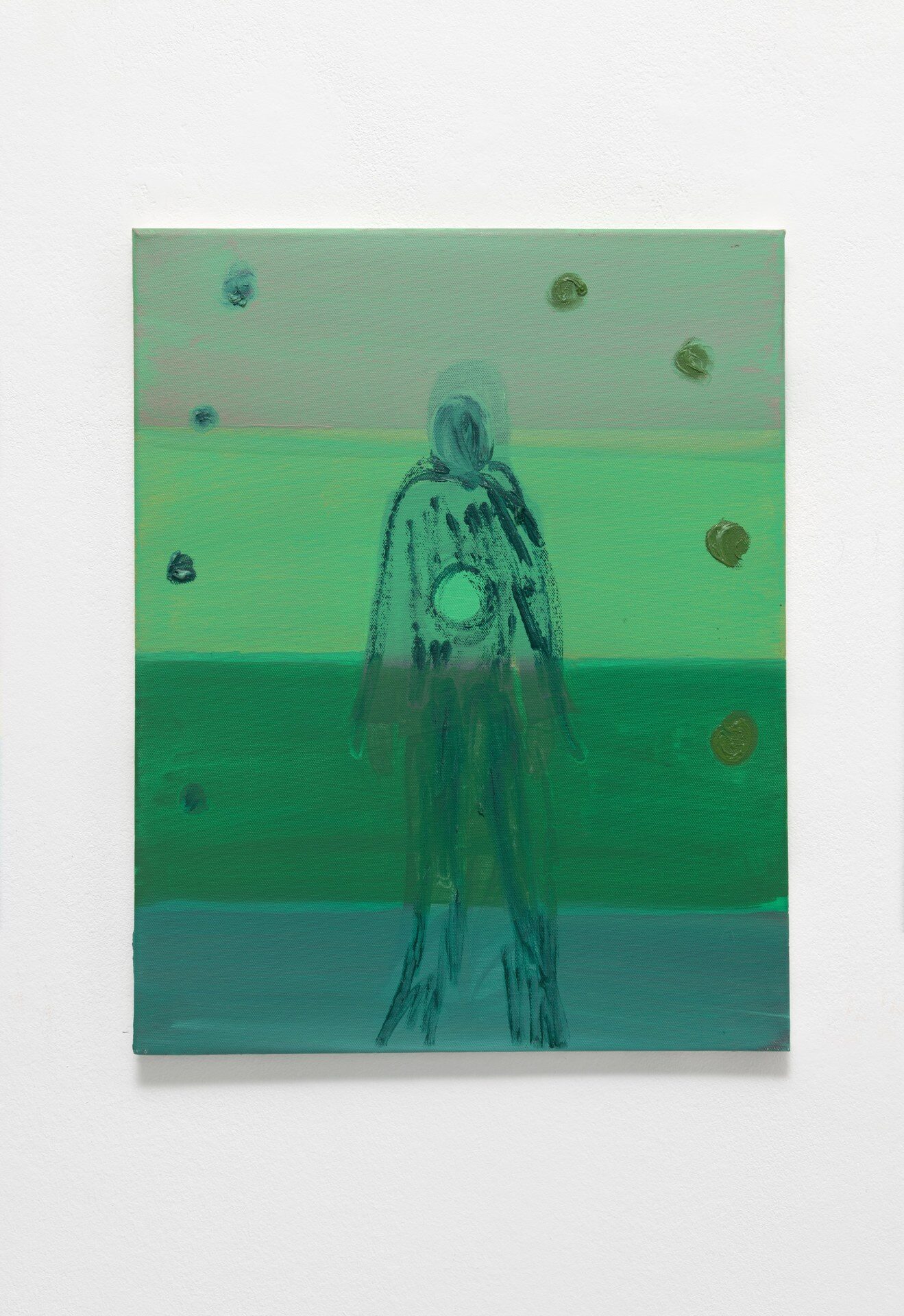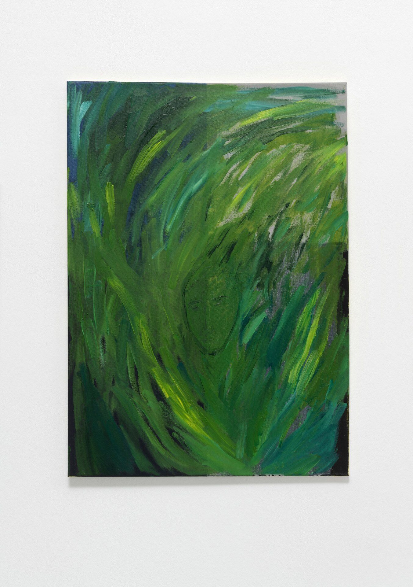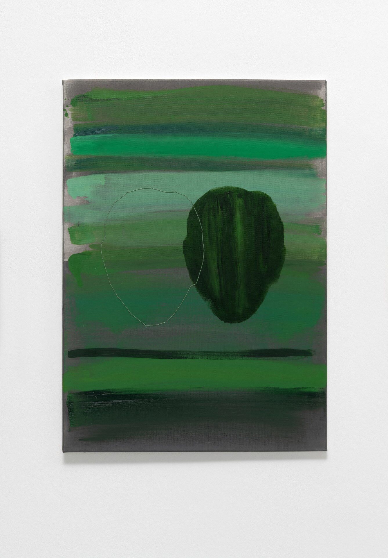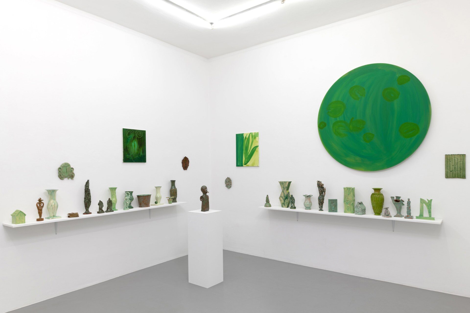 The title of the exhibition, grünende (greening), refers not only to green as a color but also to greening as an activity in nature—and an expression of growth and transformation. Ovid’s Metamorphosis vividly describes Daphne’s transformation into a tree: “…Her hair to leaves, her arms extend to boughs…” Rößner presents paintings and ceramics in shades of green.