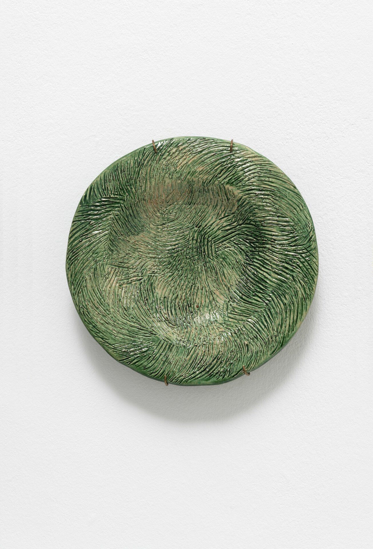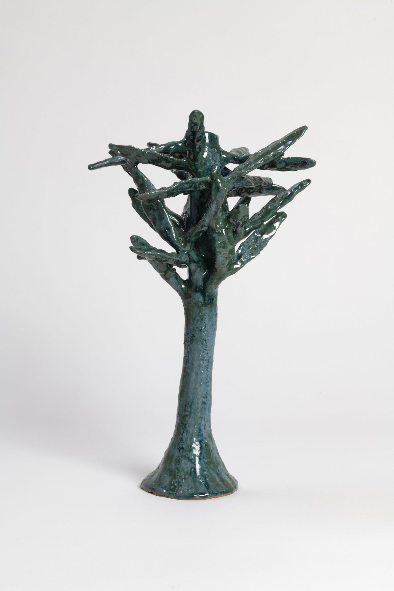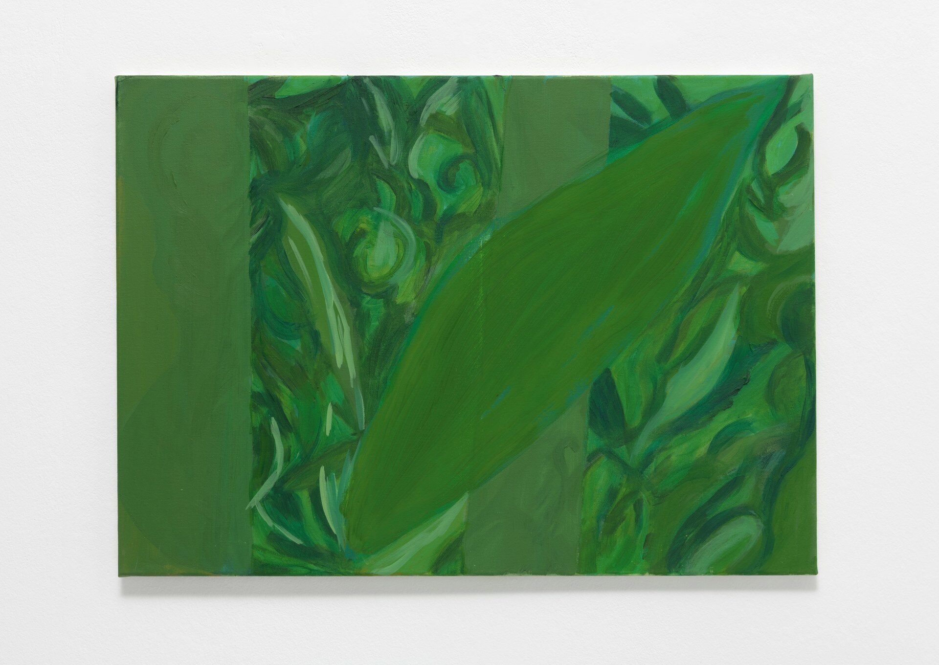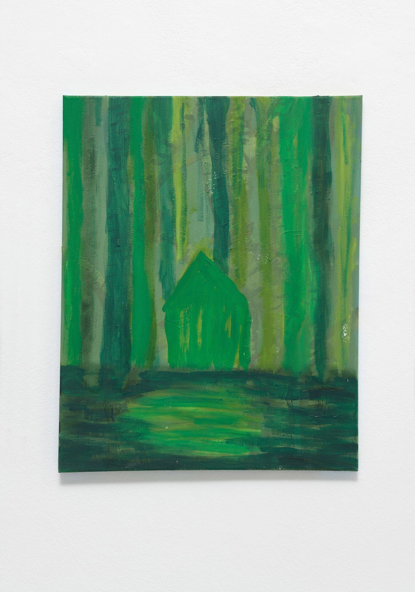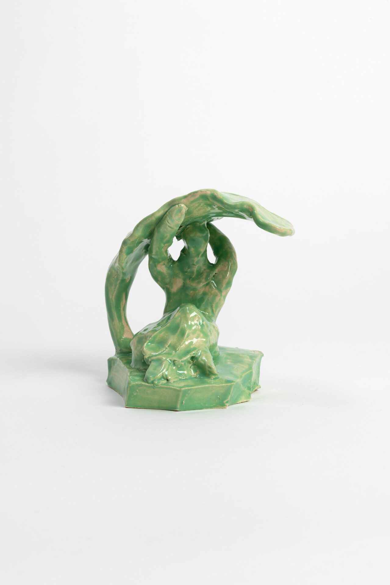 The title of the exhibition, grünende (greening), refers not only to green as a color but also to greening as an activity in nature—and an expression of growth and transformation. Ovid’s Metamorphosis vividly describes Daphne’s transformation into a tree: “…Her hair to leaves, her arms extend to boughs…” Rößner presents paintings and ceramics in shades of green.
